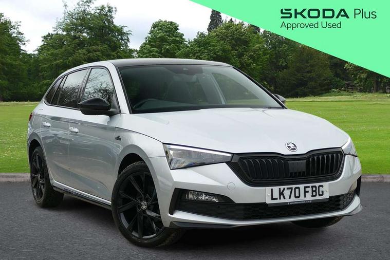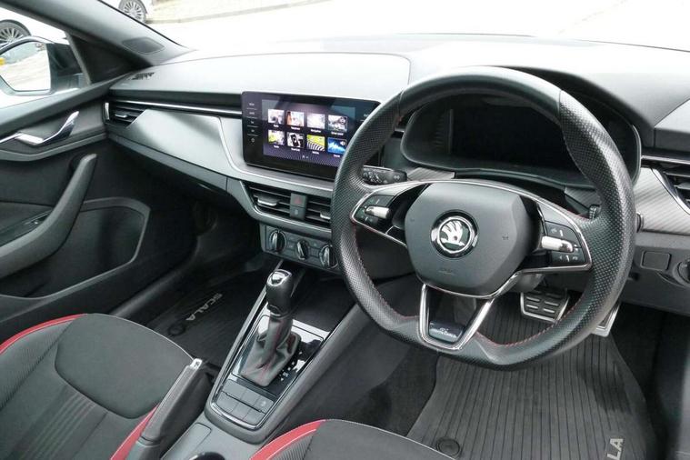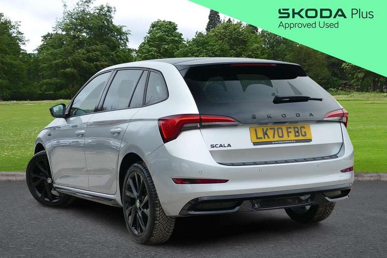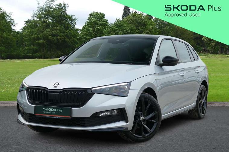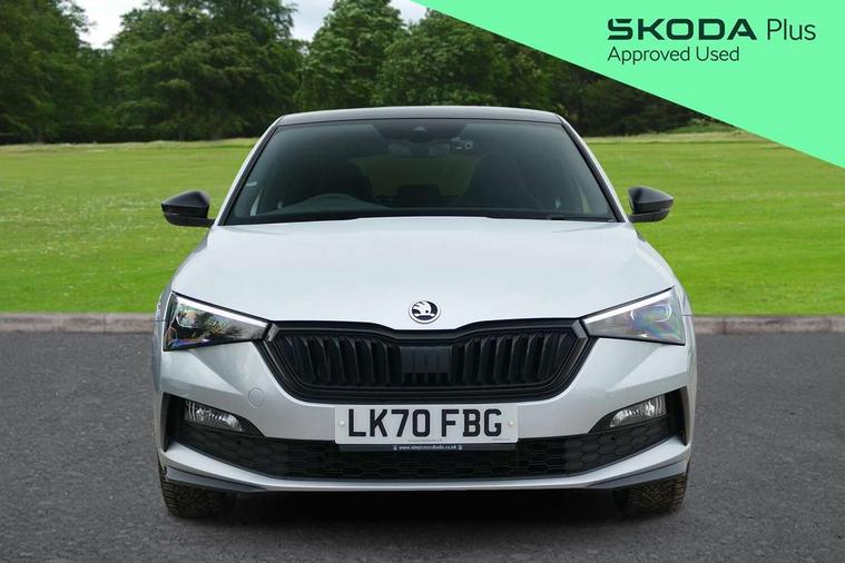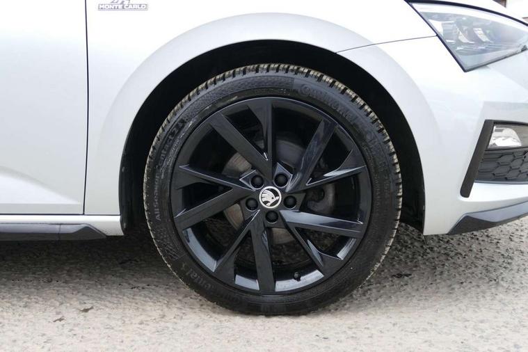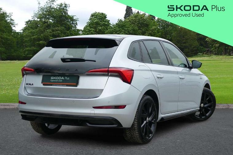 Chrome air vent surrounds, Exterior design pack - Scala, 18" Vega alloy wheels in black, Temporary space saver wheel, Alarm, Anti-theft wheel bolts, Remote central locking with 2 remote folding keys, SAFE function for remote central locking, 2 USB - C ports, 8 loudspeakers, DAB Digital radio, 3x3 point rear seatbelts, Curtain airbags, Emergency call and proactive services, Front head and side airbags, Hill hold control, One tone horn, Passenger airbag switch off function, Seat belt reminder for all seats, Black door mirrors, Black radiator grille, Black rear diffuser, Black roof spoiler, Black sill cover, Body colour door handles, Boot lettering in black, Electric folding door mirrors, Electrically adjustable and heated door mirrors, Front and rear electric windows, Front fog lights, Front sport bumper, LED daytime running lights, Monte carlo plaque, Privacy glass, Skoda across tailgate in black, Tinted windows, 12V Accessory socket in centre console, Aluminium pedals, Black roof lining, Chrome inner door handles, Cloth upholstery, Decor strip on dashboard and door panel, Door sills with lettering, Front centre armrest with stitching, Front gesture control, Front head restraints, Front sport seats, Glasses storage in roof liner, Height adjustable passenger seat, ISOFIX for rear passenger seat, Leather gearknob and handbrake lever, Manual lumbar support for front seats, Reading lights for driver and front passenger, Sun visor with make up mirror for front passenger, Textile floor mats, Third rear headrest, Umbrella, Amundsen satellite navigation with 9.2" glass colour touchscreen with virtual cockpit, web radio and traffic sign recognition, Bluetooth system, Easy light assist, Front assist system, Lane assist, Monte carlo instrument cluster, PAS, Rain and light assist with auto dimming rear view mirror, Speed limiter,