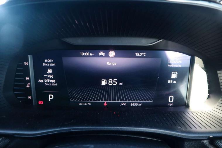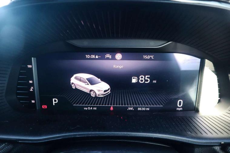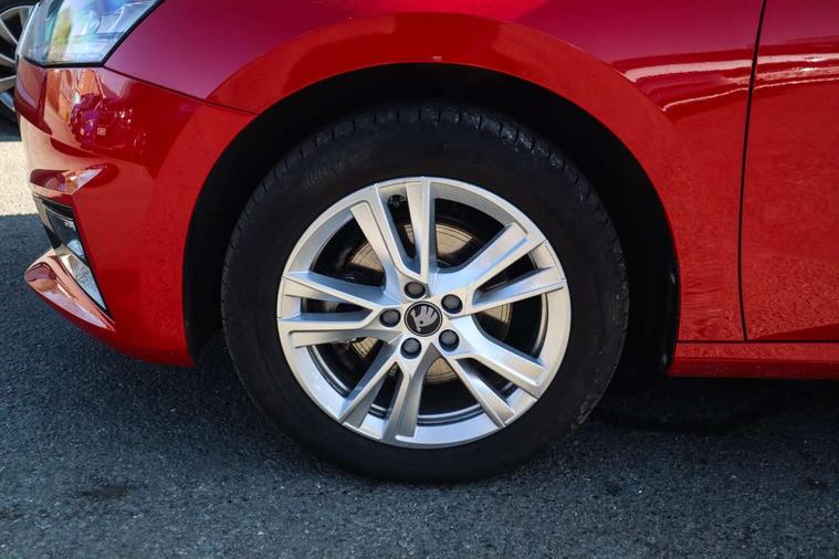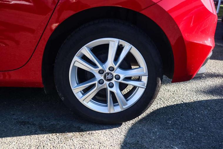 Advanced driver attention and drowsiness monitor, Bluetooth connection, Electromechanical power steering, Exterior temperature gauge, Service interval indicator, Traffic sign recognition, Virtual cockpit with 10.25" colour display, Wireless SmartLink for Apple CarPlay and Android Auto, 6 Speakers (4 in front and 2 in rear), 9.2" colour display skoda navigation system with voice control and web radio, Auxiliary socket for external MP3 player, DAB digital radio reception, Auto dimming rear view mirror, Body colour door mirrors, Body coloured bumpers, Chrome window surround, Door mirror integrated indicators, Front and rear electric windows, Front window wiper intermittent control, Headlight range control - Automatic, Ice scraper in fuel cap, LED 3rd brake light, LED daytime running lights with coming and leaving home feature, LED rear lights, Privacy glass, Rear LED fog light, Rear side wing doors, Rear window wiper with washing nozzles, Roof mounted spoiler, SKODA tailgate lettering in chrome, Unique dark chrome design logo on alloy wheels, 2 LED reading lights in front and rear, 3 rear headrests, Backrest split and folding, Central console with removable cup holder and storage box, Chrome handbrake release button, Comfort seats, Door sills with fabia badging, Dual zone air conditioning with climatronic electronic control, Fabric upholstery, Front centre armrest, Gearshift knob/handle in leather, Hand brake lever handle in leather, Height adjustable front headrests, Height adjustable front seats, Height adjustable steering wheel, ISOFIX and TopTether anchorage points to the outer rear seats, ISOFIX and TopTether on the front passenger seat, Luggage compartment lighting, Manually adjustable lumbar support in front seats, Metallic grey interior door handles, Pollen filter, Rear seat bench unsplit, Single front passenger seat, Skoda lettering on steering wheel, Storm grey headlining, Sun visors with mirror and airbag label on passenger side, Textile floor mats, Ticket holder, Umbrella in drivers door, 3-point height adjustable front seats belts with pretensioner and force limiter, Automatic warning lights in case of crash, Driver and passengers airbag with switch off function, e-Call+, ESC including ABS, MSR, ASR, EDS, HBA and XDS, Front and rear seat belt warning, FRONT ASSIST (AEB City and AEB Inter Urban), Front side airbags, Head airbags, Hill hold control, One tone horn, Pedestrian protection, Three rear 3-points safety seat belts with pretensioner and force limiter including stop function for outer rear seat belts, Tyre pressure monitoring system, Anti-theft alarm system including immobiliser, interior monitoring, backup horn, and towing protection, Central locking with radio remote control, interior controls, SAFE function and 2 foldable keys, Black painted air vents, Metallic grey central console cover, Metallic grey upper decorative trim, Satin black door and side trim panel in front, Textile microsuede grey lower decorative trim with art grey stitching, Anti-theft wheel bolts protection, Super-low rolling resistance tyres,