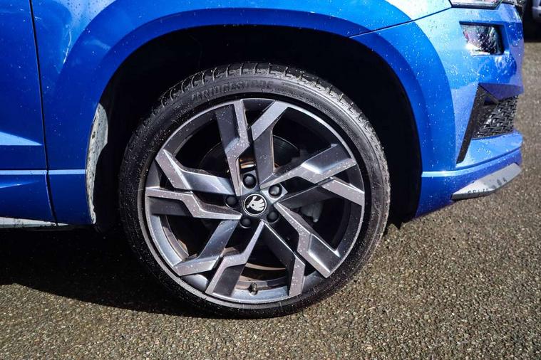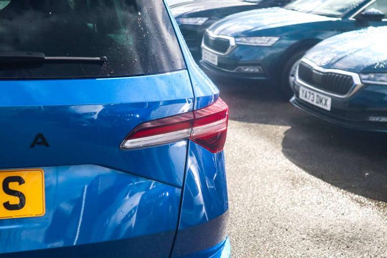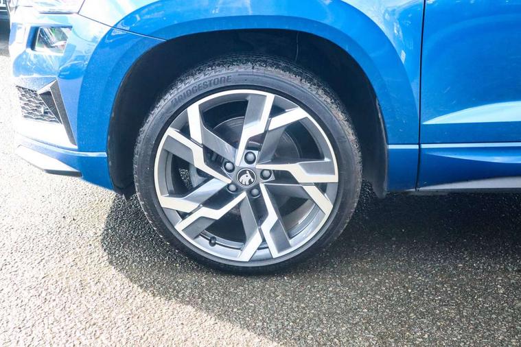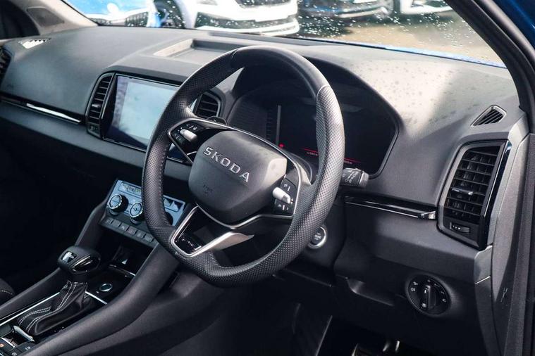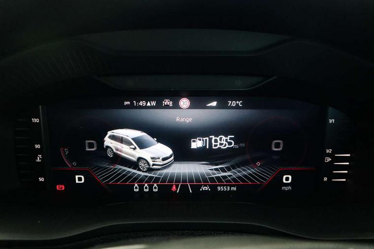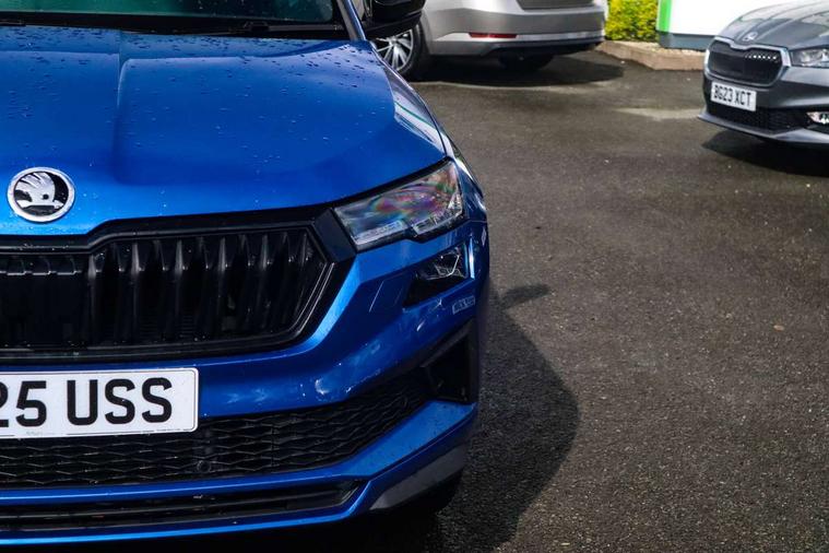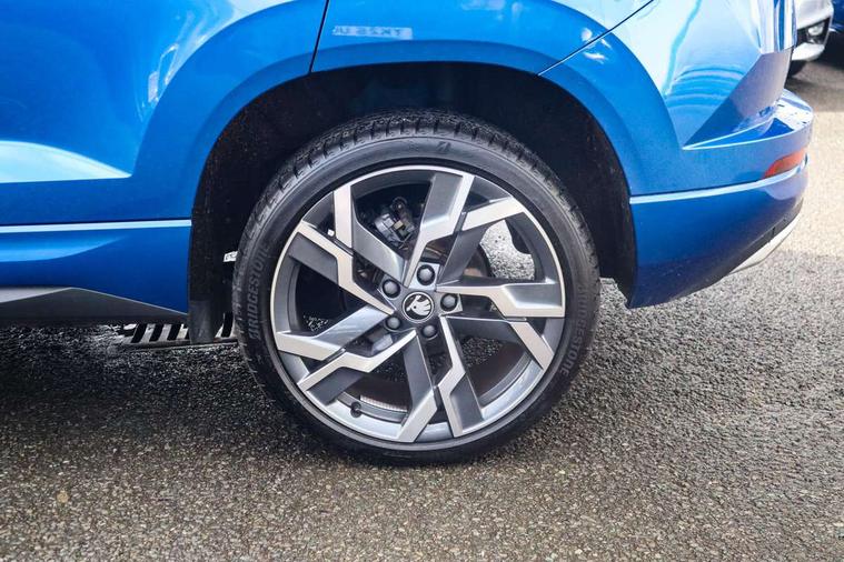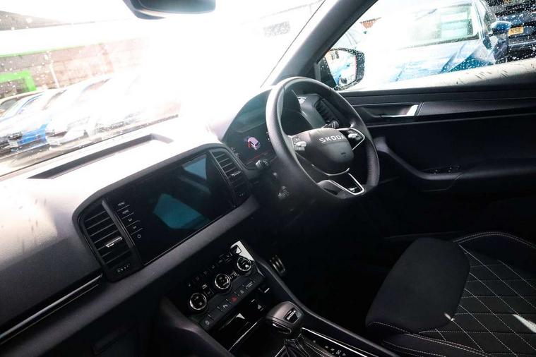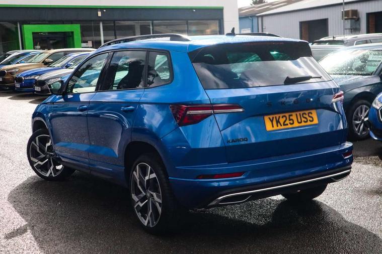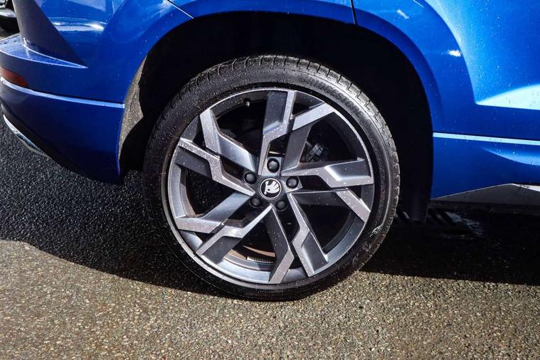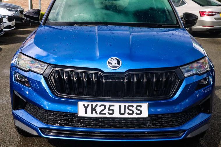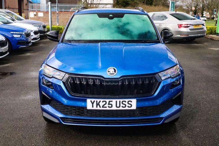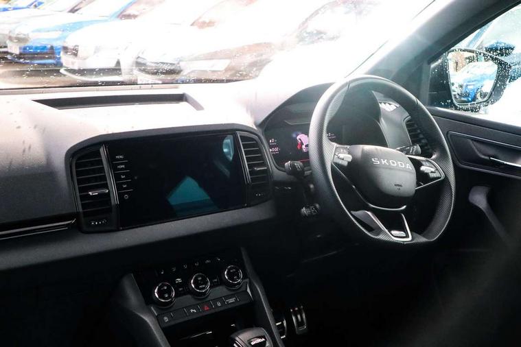 Advanced driver attention and drowsiness monitor, Emergency services call system, Outside temperature gauge, Sensor for driver assistance systems, Service interval indicator, SmartLink wireless for Apple and wired for Android, Start/stop system with regenerative braking, Traffic sign recognition, USB C Port x 2 in front centre console, Virtual Cockpit - 10.25" digital display, Virtual pedal with electrically operated boot door, Wireless smartphone charging, DAB radio with Bluetooth, USB connection, Acoustic glass, Aero front windscreen wipers with intermittent function, Auto dimming rear view mirror with light and rain sensors, Black door mirrors, Black electric window control buttons, Black radiator grille, Black roof rails, Body colour door handles, Electric front and rear windows with child proof lock, Extended rear roof spoiler, Front door steps with SportLine logo, Heated rear windscreen, LED daytime running lights, LED rear lights with high functionality welcome effect and dynamic indicators, Light assistant (coming/leaving home/tunnel light), Panoramic sliding sunroof, Plastic scuff plates in door apertures, Privacy glass, Protective door side sills in body colour, Rear diffuser, Rear side wing doors, Rear window wiper with washer system and intermittent control, Safety reflectors on front doors, Skoda lettering on tailgate in black, Sportline badge on front fender, Sports front and rear bumpers, Third brake light, Unique dark chrome design logo on alloy wheels, 1.5 litre bottle holders in driver and front passenger door panels, 12V socket in boot, 12v socket in front centre armrest with storage compartment and rear air vents, 2 x Tablet holder, 3 rear height adjustable headrests, 3 seat bench in 2nd row, 3 spoke sports leather heated multifunction steering wheel with DSG paddles, 4 foldable roof handles with rear coat hooks, Black floor carpet, Cargo elements in boot, Chrome inner door handles, Foldable hooks in the boot, Front head restraints, Height adjustable front three point seats belts with tensioners, Height/reach adjust steering wheel, Ice scraper, Illuminated glovebox, Illuminated luggage compartment, Isofix child seat preparation for front passenger seat, Isofix child seat preparation outer rear, Manual lumbar support for front seats, Pen holder, Pollen filter, Rear backrest release from boot, Rear boot cover, Rear package tray, Rear reading lights, Rear seats fixed folding and divided 60:40, Rubbish bin door, Safety vest holder, Single front passenger seat, Skoda lettering on steering wheel, Sportline decorative inserts, Storage box in upper central dashboard closed, Sunvisors with illuminated vanity mirrors, Textile floor mats, Ticket holder, Titan black interior ceiling, Umbrella under passenger seat, Under passenger seat storage compartment, Columbus pack - Karoq, LED Interior lighting pack with Skoda welcome logo - Karoq, Light Pack - Karoq, Non Smokers pack, Performance pack - Karoq, Winter plus pack with heated front and rear seats - Karoq, Automatic door unlocking in case of crash, Automatic fuel cut off in case of crash, Driver airbag, Electronic parking brake with auto hold function, Emergency rear braking signal, ESC (incl. ABS+MSR+ASR+EDS+HBA+DSR+RBS+MKB), Front side airbags, Head airbags, Hill hold control, Knee airbags, Passenger airbag with switch-off function, Pedestrian monitor, Seatbelt reminder signalisation and pretensioner for all seats, Three point seatbelts rear, Two tone horn, Tyre pressure monitor, Alarm with interior monitoring, back up horn and tilt sensor with safe function, Electronic engine immobiliser, Keyless entry and start/stop, Remote central locking with 2 remote folding keys, Black air vent surround, Black centre console, carbon door decor, Satin black dashboard, Satin black door trim, 19" Sagittarius anthracite alloy wheels, Anti-theft wheel bolts protection, Breakdown and tool kit,