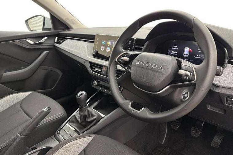 8" Digital display, Advanced driver attention and drowsiness monitor, Bluetooth, e-Call (emergency call), Front assist system, PAS, Rear parking sensors, Speed limiter, Tailgate, Traffic sign recognition, Wireless smartlink, 4 USB C ports, 8 Speakers, 8.25" Skoda infotainment display, DAB radio, Auto dimming rear view mirror, Automatic headlamp activation with Coming home and Leaving home feature, Automatic high/low beam, Body colour bumpers, Body colour door mirrors and handles, Chrome moulding around grille, Front and rear electric windows, Full LED headlights, Heated rear window, LED 3rd brake light, LED brake lights, LED daytime running lights, LED front turning lights, LED high beam, LED low beam, LED taillights, Rear LED fog light, Rear side wing doors, Rear wiper, Tinted windows, 12V socket in luggage compartment, 3 seat bench in 2nd row, Black / Grey armrest stitching, Black hotstamping, Cargo elements, Chrome inner door handles, Door inserts in satin black, Driver and passenger sun visors with vanity mirror, Dual zone climate control, Front and rear roof lights, Front centre armrest, Front head restraints, Glasses storage in roof liner, Height adjustable driver seat, Height adjustable passenger seat, Ice scraper, Illuminated glove compartment, Inner circulation control with pollen filter, ISOFIX for front passenger seat, Isofix preparation for back seats, Leather gearknob and handbrake lever, Loft cloth upholstery, Luggage net under rear parcel shelf, Manual lumbar support for front seats, Net package and top tether hooks in boot space, Pearl grey ceiling, Pocket on the back of both front seats, incl. mobile phone pockets, Single front passenger seat, Textile floor mats, Third rear headrest, Ticket holder, Top tether for front passenger seat, Umbrella in driver's door, 3x3 point rear seatbelts, ABS, Child locks, Curtain airbags and front side airbags, Disc brakes, Driver and front passenger airbags, ESP, Hill hold control, Manual leather parking brake, One tone horn, Passenger airbag switch off function, Seatbelt reminder for driver and front passenger, Tyre pressure monitoring system, Anti theft alarm system with interior monitoring, backup horn and towing protection, Anti-theft wheel bolts, Remote central locking with 2 remote folding keys, SAFE function for remote central locking, Decord pad, door inserts Kota uni,