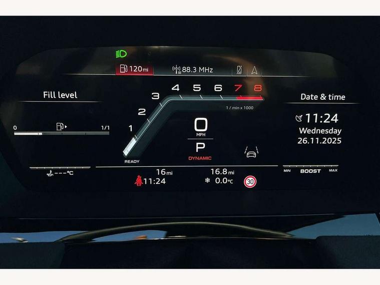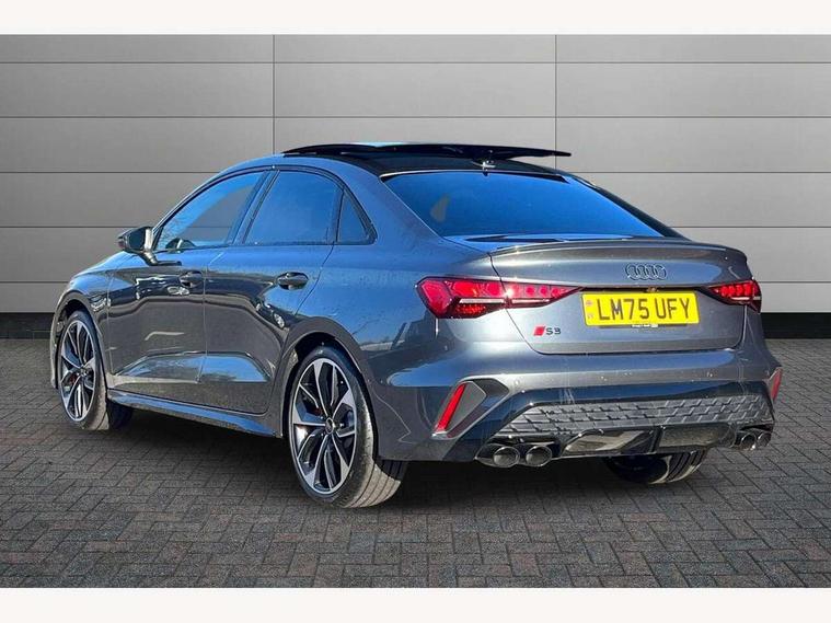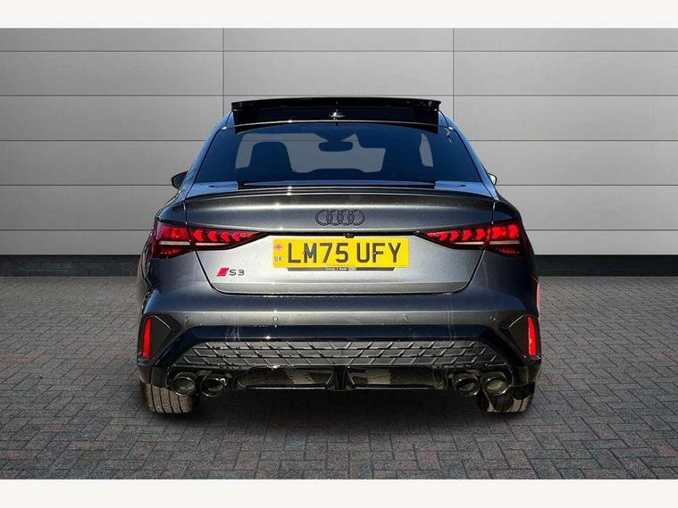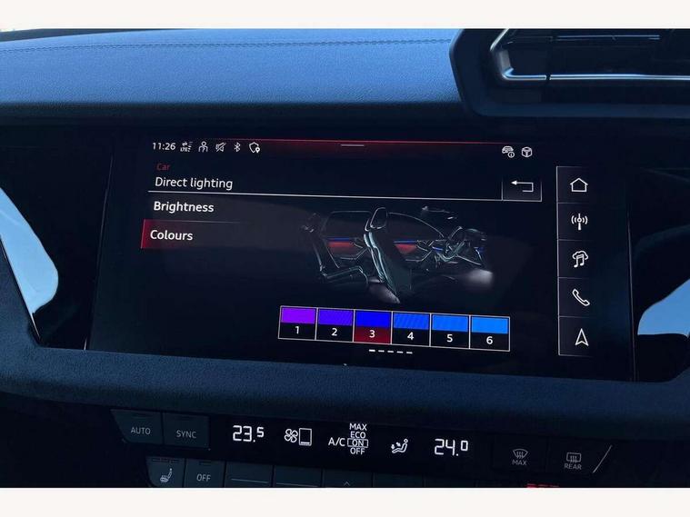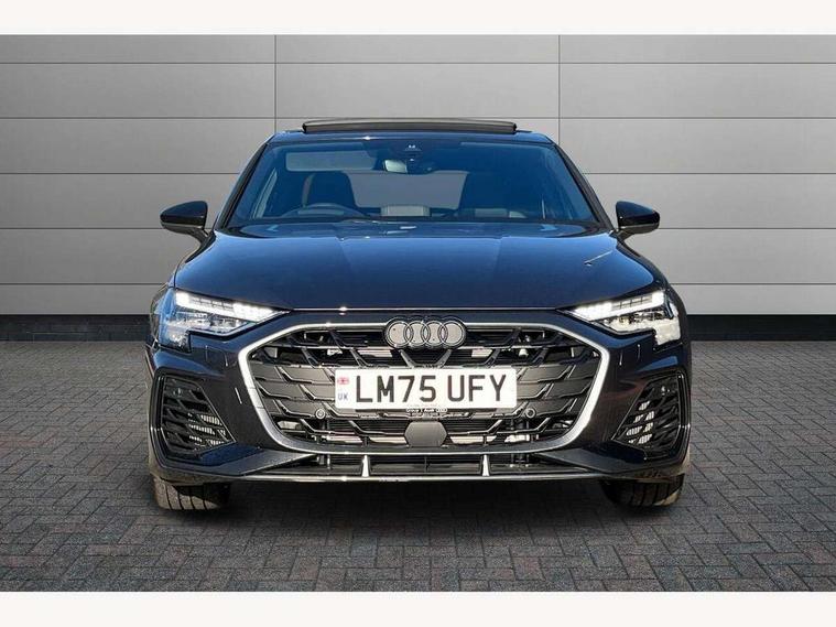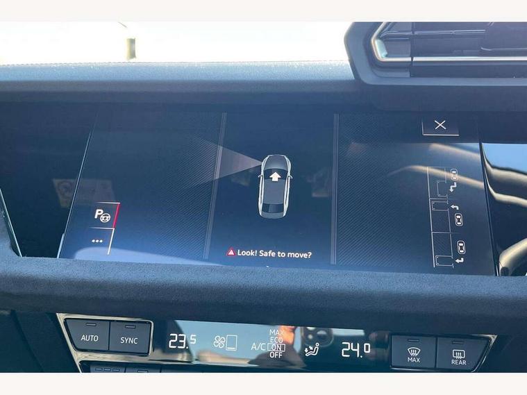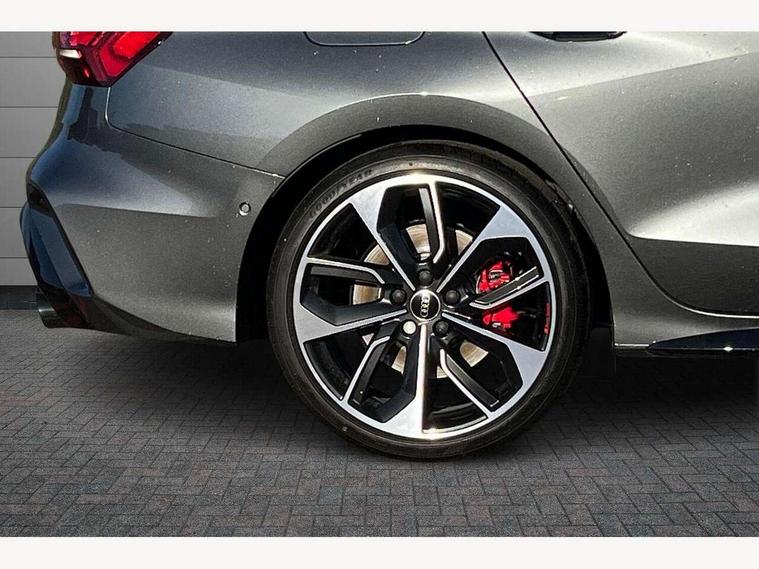 Adjustable speed limiter, Audi drive select, Audi smartphone interface with app store includes wireless Apple carplay, Android auto and Amazon alexa integration, Audi virtual cockpit plus - 12.3" full HD resolution dynamic digital instrument cluster, Automatic start/stop system with recuperation, Bluetooth interface, Camera based traffic sign recognition, Collision avoidance assistant, Distraction and Fatigue warning, e-Call (emergency call), Emergency assist, Lane departure warning system, MMI Navigation Plus with high resolution 10.1" colour touch screen display, Park Assist with parking system Plus, Progressive steering, Service indicator, Trip computer, Voice control system with natural language interaction, quattro permanent all-wheel drive with torque splitter, S sport suspension with spring damper adjustment and lowering by 15mm, Audi Phonebox light with wireless charging, DAB Digital radio, USB ports with charging function in the rear, All weather light, Anthracite grey Audi rings (front and rear), Audi Beam uses LEDs to project the rhombus S logo onto the ground as you exit your S3, Auto dimming frameless rear view mirror, Automatic dynamic range control, Black accents front and rear bumpers including air inlets, Black accents in front grille and frame, Black accents in window trims, Dipped beam, main beam, position light and turning light, Electrically adjustable/heated/folding/auto dimming door mirrors with integrated LED indications + kerb view function for passenger side, Exterior model badging, Front electric windows, Headlight washers, Heat insulating glass windscreen, Illuminated door sills with aluminium inserts at the front with S logo, Intersection light, LED 3rd brake light, LED brake lights, LED daytime running x3, LED headlights with LED rear lights and dynamic rear indicators, LED rear number plate lights, LED reverse light, LED tail lights, Light and rain sensors, Manoeuvring light, Motorway light, Privacy glass - dark tinted rear window, rear door and side windows, Rear boot, Rear diffuser and grill in grained matt black with inlay in dark liquid chrome, Rear electric windows, Rear side wing doors, S grille, S3 front bumper with S specific air intake grilles, Static cornering light, 12V socket and storage compartment in front centre console, 3 seat bench in 2nd row, 3 spoke flat bottomed leather multifunction sport steering wheel with gear shift paddles, 3-zone deluxe automatic air conditioning, 4 way electrically adjustable lumbar support for driver and front passenger, 40/20/40 split folding rear seat bench, Black cloth headlining, Black front and rear floor mats, Fine Nappa leather upholstery with front sports seats S embossed logo, Front and rear centre armrest in artificial leather with contrasting stitching on armrests and instrument panel, Front and rear headrests, Heated front seats, Height and reach adjustable steering wheel, Manual boot compartment lid, Manually adjustable front seats, Rear centre armrest with cupholder, S badging on the steering wheel, Seat side bolsters, Single front passenger seat, Stainless steel pedals and front footrest in black, Aluminium interior elements pack - A3, Storage package - A3 Saloon, Technology package - A3, 3x3 point rear seat belts, Driver and front passenger airbag with passenger airbag deactivation, Electronic Stabilisation Control (ESC) including ABS, ASR and EDL, First aid kit with warning triangle and 2 safety vests, Front side airbags with head airbags and interaction airbag, Hill hold assist, Pre-sense front with pedestrian and cyclist detection, Seatbelt monitoring, Tyre pressure loss indicator, Anti theft alarm, Anti-theft wheel bolts, Electronically operated child locks, Immobiliser, Remote central locking with safelock, Black dashboard, Tyre repair kit,