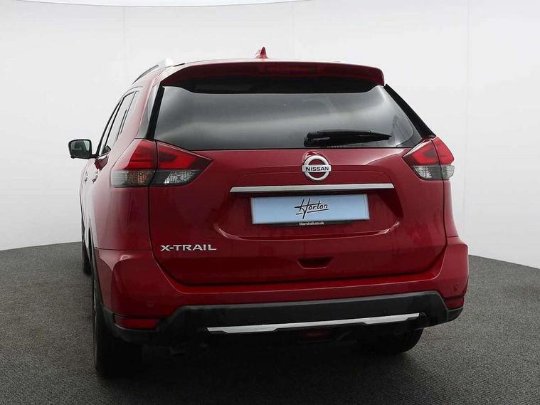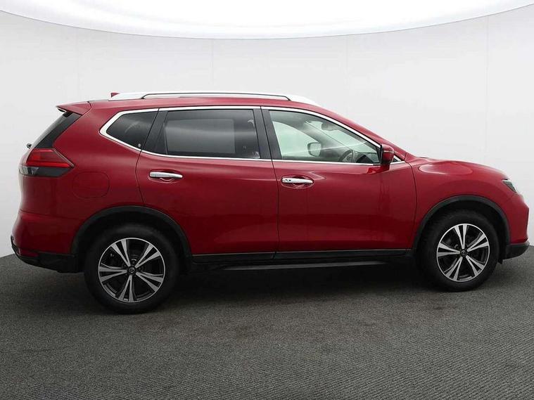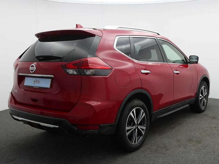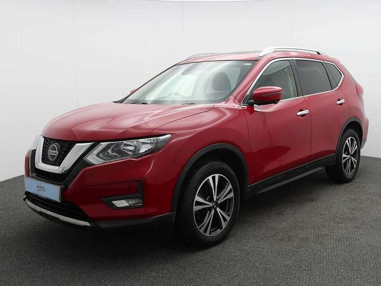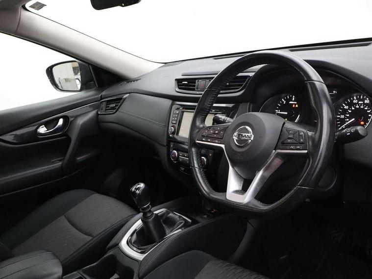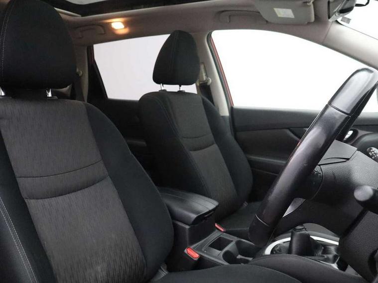 5" TFT driver information centre, Automatic tailgate opening, Bluetooth phone integration system, Cruise control + speed limiter, Front and rear parking sensors, Intelligent around view monitor, Lane departure warning system, Nissan connect evo 7" touchscreen navigation and entertainment system with Android auto, Apple car play, Tomtom maps and Live traffic, PAS, Push button start, Stand still assist auto hold function, Traffic sign recognition, Trip computer, Nissan chassis control (intelligent ride control, intelligent trace control, intelligent engine brake), 6 speakers, DAB Digital radio, Radio/CD, Rear USB port, Smartphone apps, Steering wheel mounted audio controls, USB/aux input socket, Anti dazzle rear view mirror, Automatic headlights, Automatic rain sensing wipers, Black honeycomb front grille, Body colour door mirrors, Chrome door handles, Chrome window surround, Electric folding door mirrors, Electric heated door mirrors, Front and rear electric windows, Front fog lights, Halogen headlights, LED daytime running lights, Panoramic sunroof with one touch shade, Rear privacy glass, Satin silver roof rails, Shark fin roof aerial, 3 rear headrests, 60/40 split rear bench seat, Centre console storage box/armrest, Cloth upholstery, Configurable luggage board system, Driver's manual adjustable lumbar support, Dual zone climate control, Front and rear door pockets with bottle holders, Front cupholders, Front/rear armrests, Height adjustable front headrests, Individual rear reading lights, Isofix child seat attachment, Leather D shaped steering wheel, Leather steering wheel and gear knob, Pollen filter, Tilt/telescopic adjustable steering wheel, 3 point seatbelts on all seats, 6 airbags - Driver, front passenger, curtain and side airbags, ABS, Child locks on rear doors, EBD + Brake Assist, Electric parking brake, ESP + traction control, Intelligent emergency braking with pedestrian recognition, Seatbelt warning, Tyre pressure monitoring system, Immobiliser, Intelligent Key, Remote central locking, Thatcham Cat.1 alarm, Full size spare wheel,
