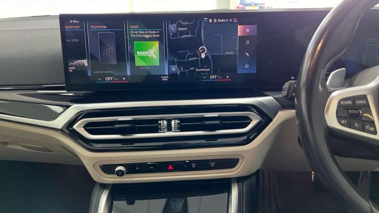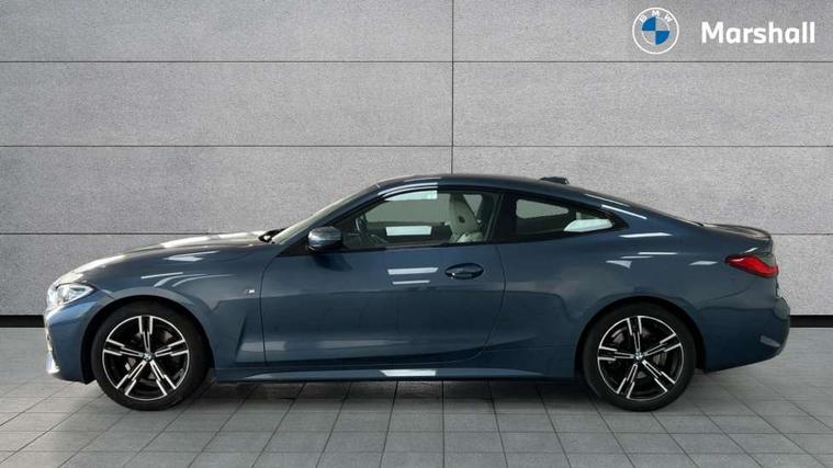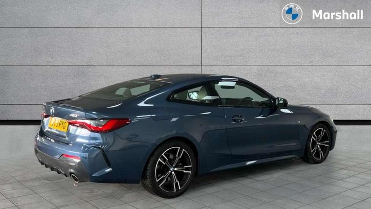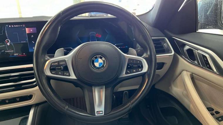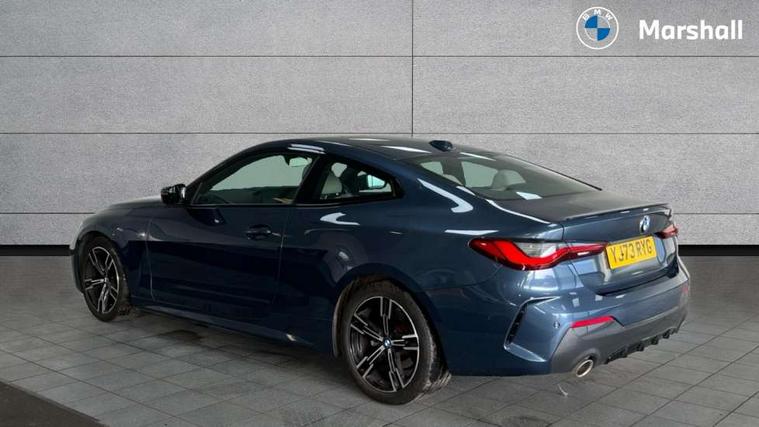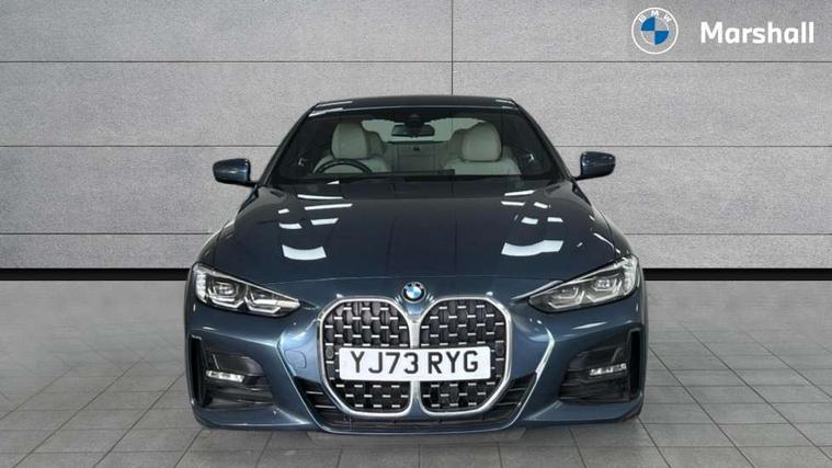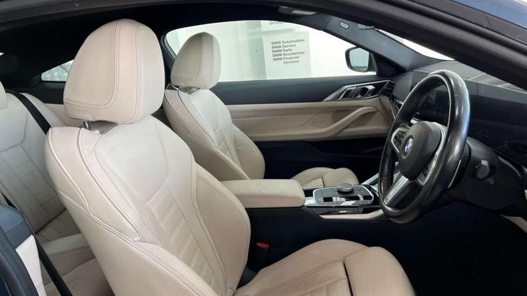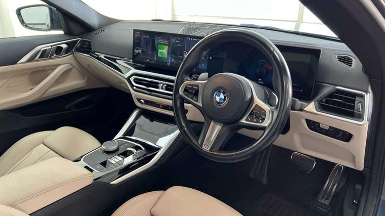 Active guard plus, Attentiveness assist, Auto start-stop, Bluetooth hands free facility with USB audio interface with audio streaming, BMW ConnectedDrive online services, BMW iDrive controller on centre console, BMW Live Cockpit Plus Nav-12.3" instrument&14.9" control Widescreen curved display/Intelligent Voice Assist/iDrive touch/Access 3rd party app/4G LTE, BMW service history, BMW Teleservices, Brake pad wear indicator in front and rear, Check Control warning system for monitoring of lights and door/luggage compartment open warning, Condition based service, Cruise control with speed limit function, Electric power steering with Servotronic steering optimised at all speed ranges, Gearshift time display in manual mode, Instrument cluster with speedometer with mph readout, tachometer, fuel gauge and oil temperature gauge, Integrated owners handbook, Oil sensor for level and grade, warning by check control system, On board computer - average speed, fuel consumption, outside temp display with acoustic warning, clock/date, service interval, odometer/trip meter, Optimum shift indicator, Run flat indicator, Shifting point display, Variable sport steering, 8 speed automatic steptronic transmission with gearshift paddles, Balanced 50/50 weight distribution, Double joint spring strut front axle, Double VANOS, Drive performance control - ECO PRO, comfort and sport modes, Electronic differential lock control (EDLC), High precision injection, Low centre of gravity, M sport suspension, Petrol Particulate Filter, Stroke dependent dampers, VALVETRONIC engine management, 2x USB Type C ports in front centre console for charging and data transfer, 2x USB Type C ports in rear centre console for charging, DAB tuner, Electronic service booklet, Acoustic glazing, Automatic headlight beam throw control with load dependent regulating reaction, dynamic compensation of braking dive and acceleration squat, Automatic windscreen wipers and automatic headlight, Automatically dimming electrochromatic rear view mirror, BMW emblem on engine compartment lid and tailgate, BMW kidney grille with mesh grille front side of the nuggets in matt aluminium and frame in chrome high gloss, Body colour fuel filler flap, Body colour roof fin, Brushed aluminium inserts in the front door sill finishers with BMW designation, Door sill strips, Dynamic brake lights, Electric windows - front and rear, with open/close fingertip control, anti trap facility and comfort closing function all round, Exterior mirrors - electrically folding with anti-dazzle, Fading support, Follow me home headlights, Front and rear bumper system, Front apron plastic in body colour, Green tinted heat protection glazing, High gloss shadow line exterior trim, Illuminated bow type door handles in body colour drivers side with door lock, Interior rear view electrochromatic mirror with automatic anti dazzle function, LED daytime running lights, LED front fog lights, LED front indicators, Licence plate panel integrated into front bumper and tailgate, Lightweight engineering, M designation on front side panels, left and right, M rear boot spoiler, Model designation on right side of tailgate, One piece front bumper cover including towing eye cover in body colour, Preparation for high beam assistant, Rear boot, Reversing light, Side frame decorative moulding black matt, Two part LED tailights in L-shape with components in smoked glass, brake light, LED turn indicator and rear fog light, Visible exhaust tailpipe finisher, Visible VIN plate, Welcome lights in interior and door handle area, Widened track and increased camber values for max transverse dynamics, agility and steering precision, Window recess cover black high gloss, Windscreen wipers with integrated heated washing jets, 12V power socket in front centre console, 2 front cupholder in centre console with clamping elements and matt black inlay, 2 Rear seat headrests, 2 seat bench in second row, 3 spoke M sport leather multifunction steering wheel, 3 zone automatic air conditioning, 4 pieces lashing eyelets in luggage compartment, 40:20:40 split folding rear seat and rear centre armrest with two cupholders, Anthracite headlining, Armrest integrated in front and rear door trim + front centre console armrest, BMW ID, Driver seat backrest width adjustment, Extended storage - Luggage compartment partition net on left side trim panel, Bag hook on both sides of the luggage compartment, Four grab handles integrated in roof lining, Front and rear door pockets, Front and rear reading lights, Front sport seats, Heated driver and front passenger seats, Height adjustable front headrests, Height adjustable mechanically and infinitely variable steering column, Illuminated armrest storage compartment, Illuminated glove compartment with separate small compartment, Make-up mirror lights, Single front passenger seat, Storage compartment in rear centre console, Sunvisors with illuminated vanity mirrors and ticket pocket, Toolkit located in luggage compartment, Velour front floor mats, Vernasca leather upholstery, Ambient lighting pack - 4 Series, Connected professional package - 4 Series, M sport exterior styling pack - 4 Series, 2 x 3-point rear seatbelts, Battery safety cut-off, BMW emergency call, Brake energy regeneration, Braking pre-tensioning, Child seat ISOFIX attachment for the two outer rear seats, Coasting in idle in ECO PRO mode, Cornering brake control (CBC), Crash sensor activating of airbags, Unlocking doors, hazard warning lights, interior light, safety battery terminal, Driver and front passenger side airbags, integrated in the door side seat backrest bolsters for all seat variants, Driver/Front Passenger airbags, Dry braking, Dynamic brake control, Dynamic stability control + (DSC+) - Anti-lock Braking System (ABS) with brake assist and cornering brake control + Automatic Stability Control (ASC), Dynamic Traction Control - DTC, Electric parking brake including automatic hold function and automatic release of the parkin