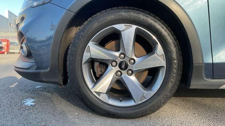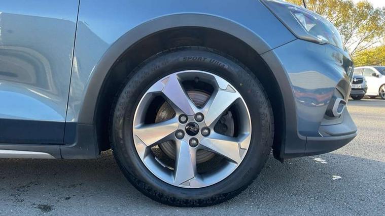 Bluetooth system, Digital clock, Easy fuel capless refuelling system, Eco mode, Ford pass connect, Ford SYNC 3 nav system with DAB radio, 8" colour touch screen, voice control, app link, Apple car play/Android auto and 4.2" TFT coloured cluster, Intelligent speed assist, Lane keeping aid with lane departure warning, PAS, Selectable drive modes with slippery and trail mode, Trip computer, Raised ride height (30mm higher than standard), Aux input, 'Quickclear' heated windscreen/heated washer jets, Active branded scuff plates, Active front and rear bumper with unique upper and lower grille, Auto headlamps (on/off), Black painted roof and mirror caps, Black roof rails, Body coloured bumpers, Body coloured door handles, Electrically operated and heated door mirrors with side indicators, Electrically operated front and rear windows with one touch opening and closing, Front variable intermittent wipers with electric wash, Halogen reflector headlamps, Heated rear window, LED daytime running lamp, LED front fog lamps with cornering function, Rear privacy glass, Tailgate wash/wipe, Twin exhaust tailpipes, Unique skid plates and side rocker mouldings, 3 spoke leather trimmed steering wheel with integrated audio controls, 60/40 split back and cushion rear seats with 2 height adjustable headrests, Centre console with armrest, Cloth upholstery with blue stitching, Driver's lumbar support, Front floor mats, Gear lever gaiter ring with blue stitching, Height adjustable front headrests, Isofix child seat preparation, Leather gear knob, Manual air conditioning, Reach + rake adjustable steering column, Rear centre headrest, ABS+Electronic Brake force Distribution, Auto hold function, Driver airbag, Electronic parking brake, Electronic stability control, Front and rear seatbelt reminder, Front inertia reel height adjustable seatbelts with pre-tensioners, Front passenger airbag, Front side airbags, Hill start assist, Passenger airbag deactivate switch, Post collision braking, Pre collision assist with autonomous emergency braking and pedestrian/cyclist detection, Side curtain airbags, Three rear inertia reel lap/diagonal seatbelts, Tyre pressure monitoring system, Keyless start with 'Ford Power' starter button, MyKey system, Remote central locking & engine immobiliser, Thatcham category 1 alarm, 17" 5 spoke foundry black machined painted finish alloy wheels, Mini steel spare wheel,
