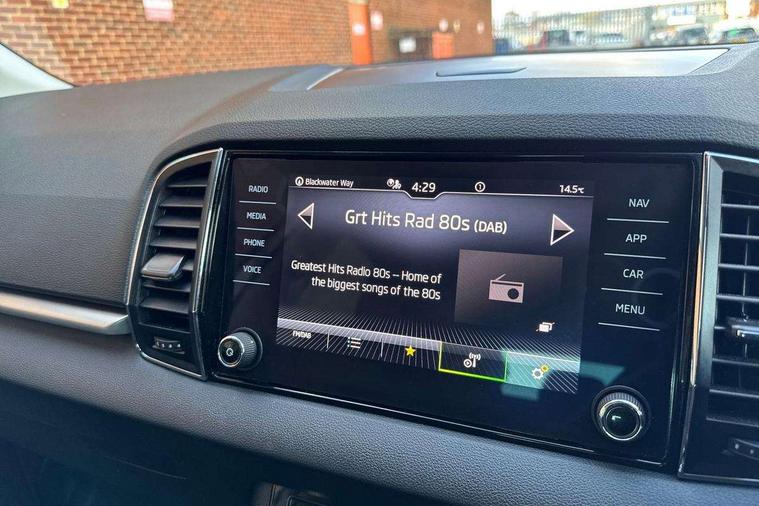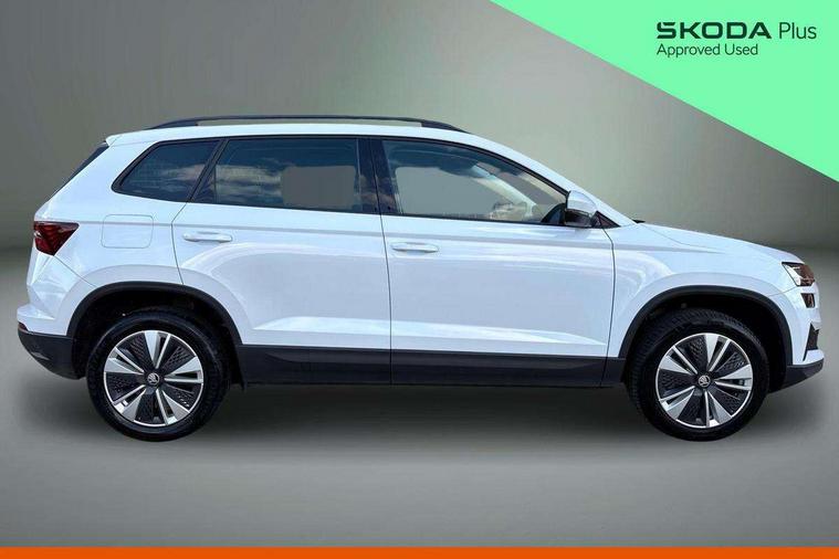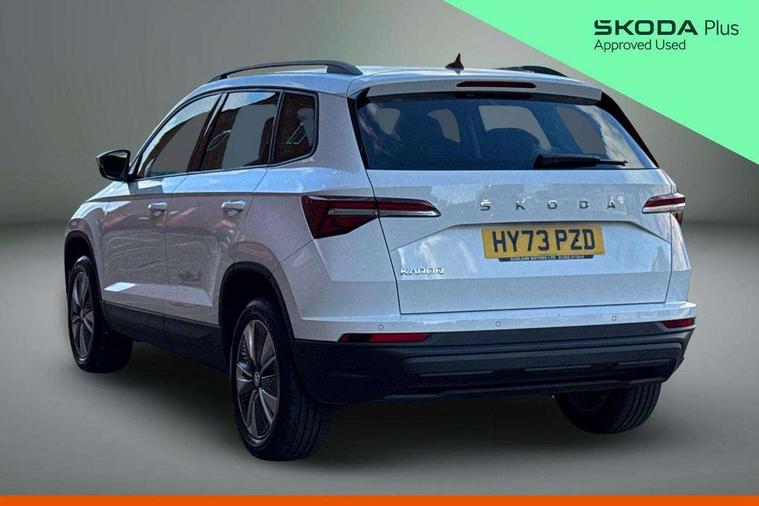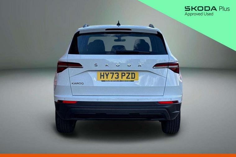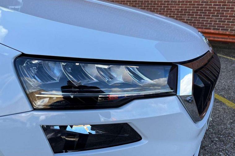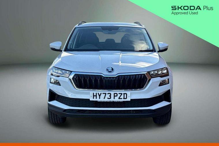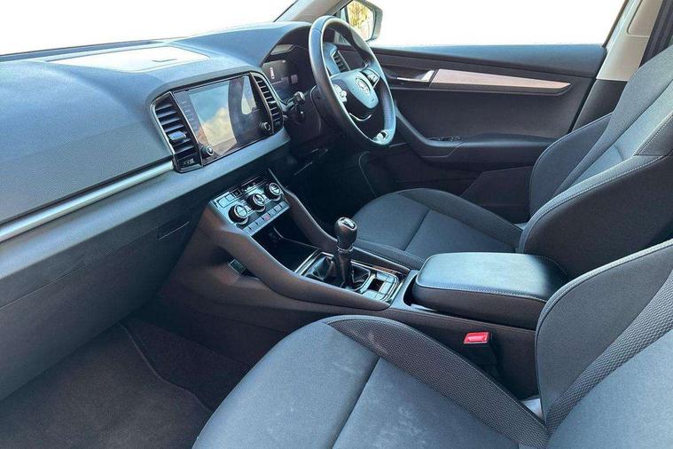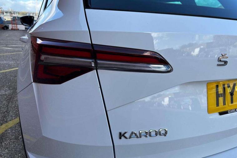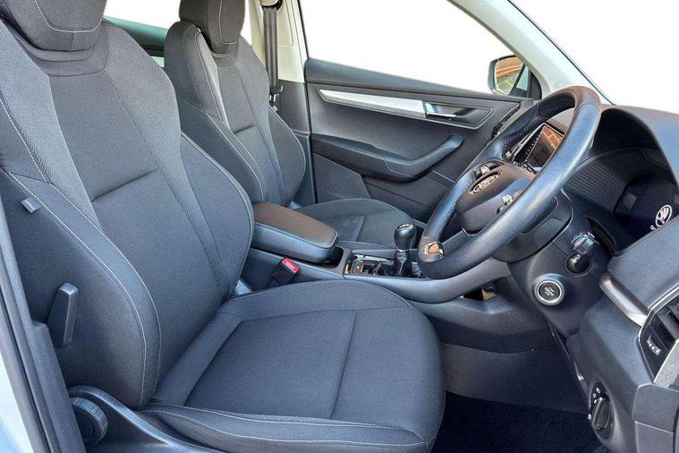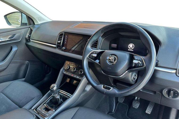 8" Digital display, Amundsen satellite navigation with 8" touchscreen display with maps Europe, WLAN and web radio, Care connect, Driver fatigue sensor, Electro-mechanical PAS, Emergency services call system, Outside temperature gauge, Service interval indicator, SmartLink wireless for Apple and wired for Android, Start/stop system with regenerative braking, USB C Port x 2 in front centre console, Diesel particulate filter, 8 speakers, DAB radio with Bluetooth, USB connection, Acoustic glass, Aero front windscreen wipers with intermittent function, Auto dimming rear view mirror with light and rain sensors, Black electric window control buttons, Body colour door mirrors and handles, Dynamic headlight range control with cornering light function, Electric front and rear windows with child proof lock, Electrically adjustable heated folding and auto dimming door mirrors, Front fog lights, Heated rear windscreen, LED daytime running lights, LED Headlights, LED rear lights with high functionality welcome effect and dynamic indicators, Light assistant (coming/leaving home/tunnel light), Plastic scuff plates, Privacy glass, Rear side wing doors, Rear window wiper with washer system and intermittent control, Safety reflectors on front doors, Third brake light, 1.5 litre bottle holders in driver and front passenger door panels, 12V socket in boot, 12v socket in front centre armrest with storage compartment and rear air vents, 2 x Tablet holder, 3 rear height adjustable headrests, 3 seat bench in 2nd row, 4 foldable roof handles with rear coat hooks, Black floor carpet, Chrome inner door handles, Double sided boot floor, Driver/front passenger reading lights, Foldable hooks in the boot, Folding tables on the front seat backrests, Front head restraints, Height adjustable driver and passenger seat, Height adjustable front three point seats belts with tensioners, Height/reach adjust steering wheel, Ice scraper, Illuminated glovebox, Illuminated luggage compartment, Interior noise suppression, Isofix child seat preparation for front passenger seat, Isofix child seat preparation outer rear, Manual lumbar support for front seats, Pearl grey interior ceiling, Pen holder, Pollen filter, Rear boot cover, Rear reading lights, Rubbish bin door, Safety vest holder, Single front passenger seat, Storage box in upper central dashboard closed, Sunvisors with illuminated vanity mirrors, Textile floor mats, Ticket holder, Tool kit, Umbrella under passenger seat, Boot pack - Karoq, Automatic door unlocking in case of crash, Automatic fuel cut off in case of crash, Child locks on rear doors, Driver airbag, Electronic parking brake with auto hold function, Emergency rear braking signal, ESC including ABS, MSR, ASR, EDS, HBA, DSR, RBS, MKB and traction control, Front side airbags, Hill hold control, Knee airbags, Passenger airbag with switch-off function, Pedestrian monitor, Seatbelt reminder signalisation and pretensioner for all seats, Three point seatbelts rear, Two tone horn, Tyre pressure display, Tyre pressure monitor, Alarm with interior monitoring, back up horn and tilt sensor with safe function, Electronic engine immobiliser, Remote central locking with 2 remote folding keys, Black centre console, Chrome framed air vents, Satin black dashboard, Satin black door trim, Anti-theft wheel bolts protection, Storage on wheel cover,