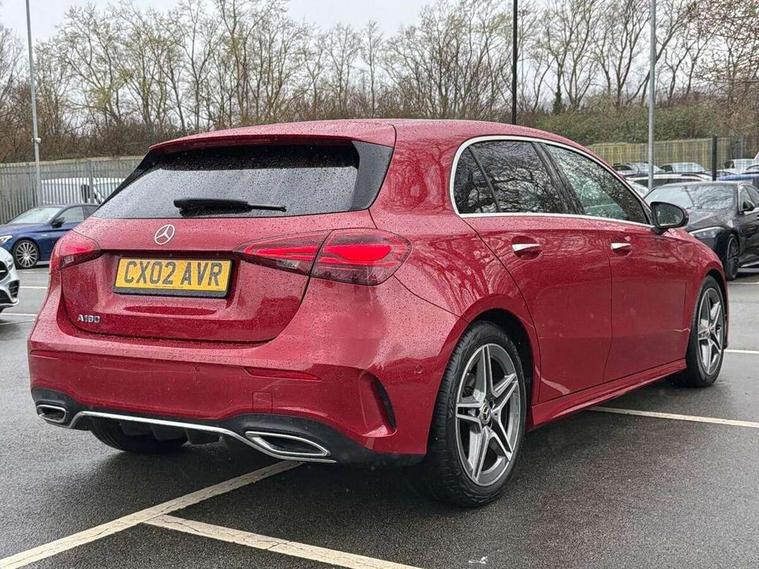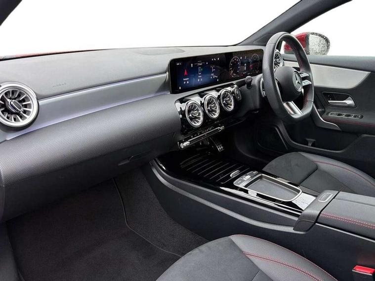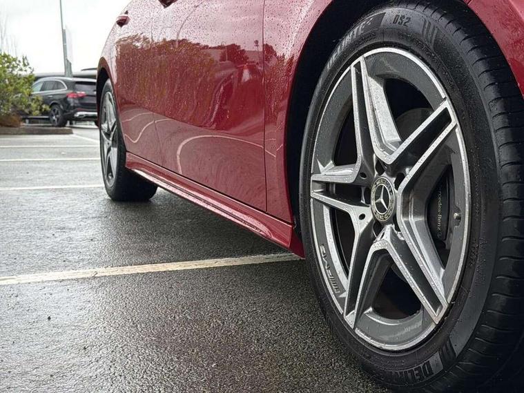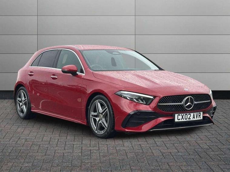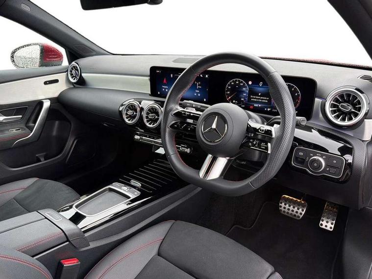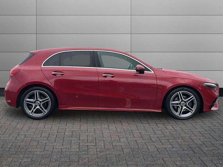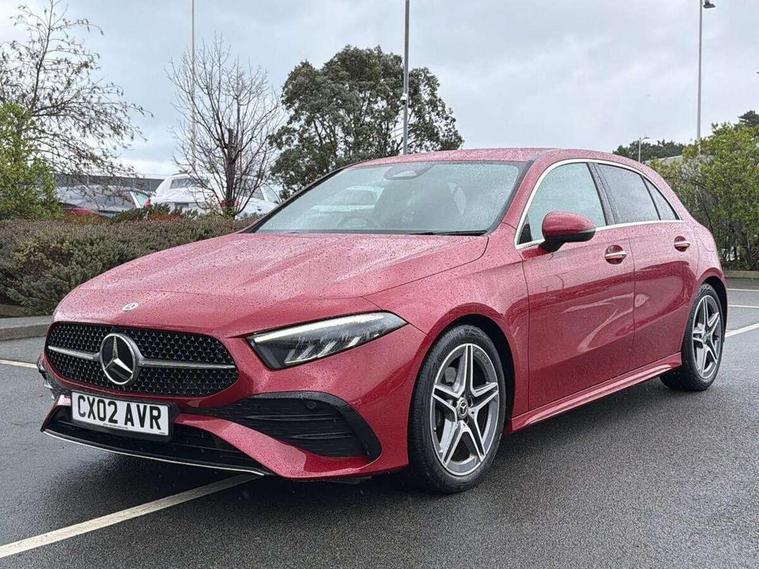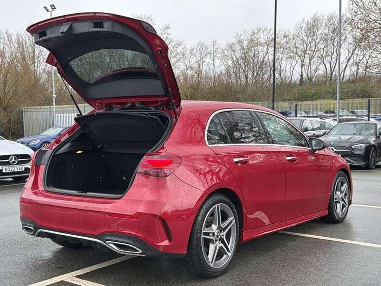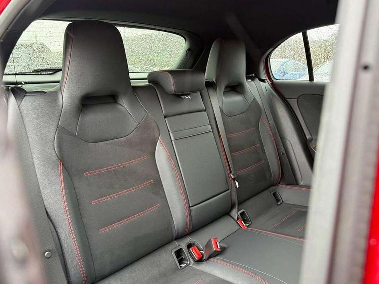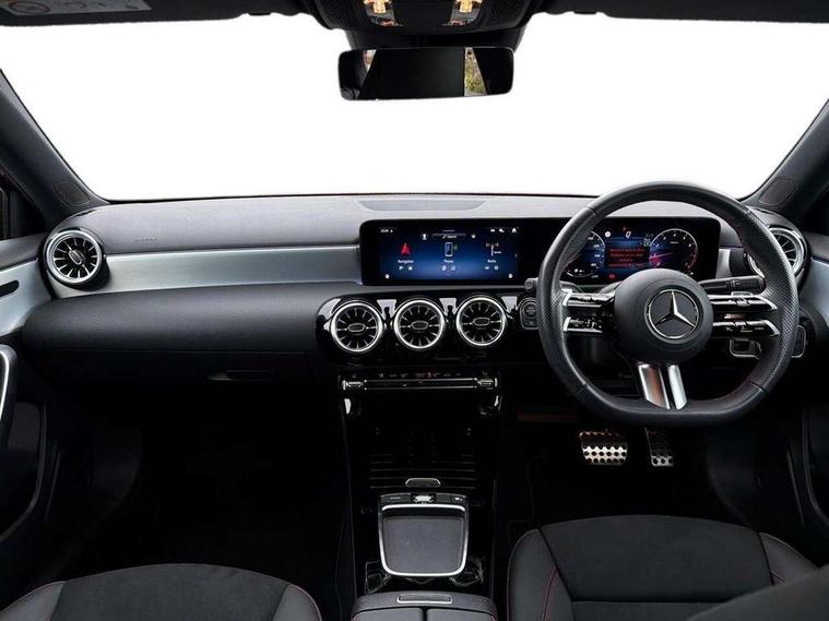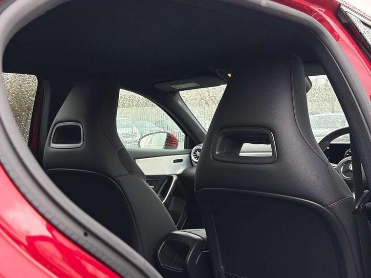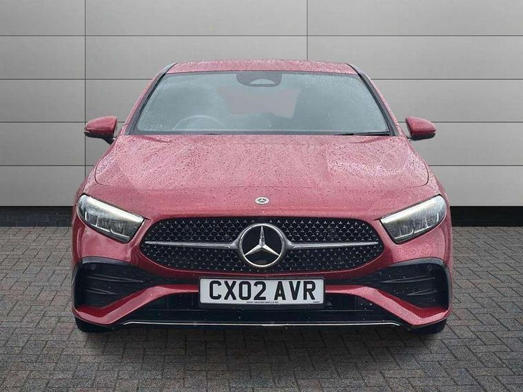10.25 inch touchscreen central media display, 10.25" Digital instrument cluster display screen, Attention assist, Blind spot assist, Brake pad wear indicator warning light, Car wash mode, Cruise control + speed limiter, Direct steering, Direction indicators with lane change function, Dual bluetooth interfaces, DYNAMIC SELECT with a choice of driving modes (ECO, Comfort, Sport and Individual), Easy pack tailgate hands-free access, ECO start/stop function, Engine start/stop button, Fingerprint scanner, Fluid level warning indicator for fuel, oil, coolant and washer fluid, Fluorescent jacket for driver, Hard-disk navigation, Hey Mercedes Voice activation, Lamp failure indicator, Lane keeping system, Mercedes me connect including emergency call system, accident recovery, breakdown and maintenance management, Mercedes me remote services, Outside temperature gauge, Owners manual in English, Pre-installation of private car share, Preinstallation for Mercedes Benz link, Remote boot closing, Service indicator (ASSYST), Smartphone integration with Apple CarPlay and Android auto, Speed limit assist, Speed sensitive power steering, Tailgate, Trip computer in multifunction display with current consumption indicator, Wireless charging, Lowered comfort suspension, DAB Digital radio, MBUX multimedia system, Mercedes Benz sound system (100 W) with 6 speakers, 4 Electric Front and Rear windows, Adaptive brake lights, AMG body styling - AMG front apron with front splitter and AMG rear apron and visible exhaust tailpipe trim elements, Body colour bumpers, Body colour door handles with chrome inserts, Body colour side skirt, Body coloured door mirrors, Chrome beltline strips, Diamond radiator grille with pins in fine star pattern, Electric adjustable and heated door mirrors with integrated LED side indicators, Exhaust system with 2 visible tailpipe trim elements and rear apron, Headlamp assist automatic headlamp activation, Heat insulating dark tinted rear and rear side windows, Heated glass rear windscreen + timer control, LED High level third brake light, LED High Performance headlamps including integral LED daytime running lamps and adaptive highbeam assist, LED tail lamp, Privacy glass, Radio aerial, Rain sensing windscreen wipers with two sensitivity settings, Rear fog lights, Rear side wing doors, Rear windscreen wiper, Window line trim strip in chrome, 3 seat bench in 2nd row, 3 Spoke flat bottom leather multi function steering wheel with perforated leather in grip area, 4 way lumbar support, 40:20:40 split folding rear seats, Air conditioning - One zone THERMATIC automatic climate control with automatically controlled air distribution, AMG floor mats, Automatic child seat recognition sensor, Black air vents with surround in silver chrome, Black roof lining, Brushed stainless steel sports pedals with rubber studs, Front centre armrest with stowage, Front door sills with Mercedes Benz lettering, Front seat backs luggage nets, Galvanished gear shift paddles on steering wheel, Heated front seats, Height/reach adjustable steering column, Interior lighting - 64 colour Ambient lighting, Interior mirror with reading lamps in black and frameless, Rear armrest with 2 cupholders, Seat occupancy sensor for front passenger seat, Single front passenger seat, Sports seats with integrated headrests, Stowage compartment in centre console with retractable cover, Sunvisors with illuminated vanity mirrors, Twin front cupholders, Light and sight package - A Class, Mirror package - A Class, Parking pack with 180 degree view - A Class, Seat comfort pack - A Class, USB pack plus - A Class, 3 rear 3 point seatbelts, ABS with Brake Assist, Active bonnet, Active brake assist includes forward collision warning system with autonomous braking, Adaptive brake assist with hold function and hill start assist, Bonnet with power domes, Childproof locks manually operated for rear doors and electrically operated for rear power windows, Crash responsive emergency lighting, Driver and passenger head and side airbags, Drivers knee airbag, Dual stage driver/passenger airbags, Electronic parking brake, ESP curve dynamic assist, ESP with ASR, Front and rear seatbelt reminder, ISOFIX and top tether child seat fixing points in two outer rear seats, Tyre pressure monitoring system, Warning triangle and first aid kit, Window airbags, Alarm system/interior protection/immobiliser, Guard 360 degree vehicle protection, Keyless entry lock/unlock, Keyless Go, Remote central locking and crash sensor with emergency opening function, Black seatbelts, Light longitudinal grain aluminium trim, 18" AMG 5 twin spoke light alloy wheels, aerodynamically optimised, painted in black with high sheen finish, Summer tyres, Tirefit sealant kit,