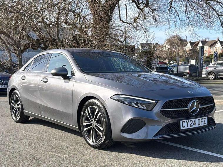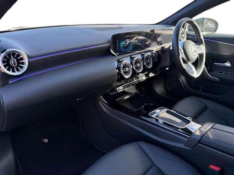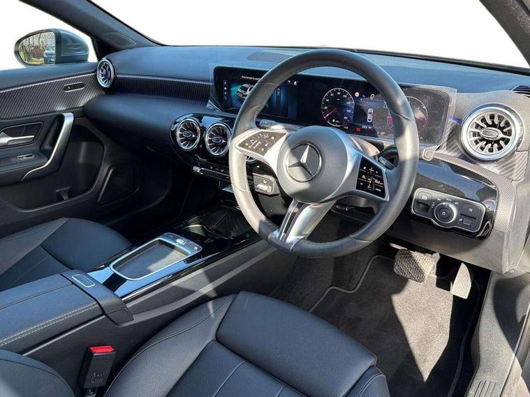 10.25 inch touchscreen central media display, 10.25" Digital instrument cluster display screen, Attention assist, Blind spot assist, Brake pad wear indicator warning light, Car wash mode, Cruise control + speed limiter, Direct steering, Direction indicators with lane change function, Dual bluetooth interfaces, DYNAMIC SELECT with a choice of driving modes (ECO, Comfort, Sport and Individual), ECO start/stop function, Engine start/stop button, Fingerprint scanner, Fluid level warning indicator for fuel, oil, coolant and washer fluid, Fluorescent jacket for driver, Hard-disk navigation, Hey Mercedes Voice activation, Lamp failure indicator, Lane keeping system, Mercedes me connect including emergency call system, accident recovery, breakdown and maintenance management, Mercedes me remote services, Outside temperature gauge, Owners manual in English, Pre-installation of private car share, Preinstallation for Mercedes Benz link, Remote boot closing, Service indicator (ASSYST), Smartphone integration with Apple CarPlay and Android auto, Speed limit assist, Speed sensitive power steering, Trip computer in multifunction display with current consumption indicator, Wireless charging, Lowered comfort suspension, DAB Digital radio, MBUX multimedia system, Mercedes Benz sound system (100 W) with 6 speakers, 4 Electric Front and Rear windows, Adaptive brake lights, Body colour bumpers, Body colour door handles with chrome inserts, Body colour side skirt, Body coloured door mirrors, Chrome beltline strips, Diamond radiator grille with pins in fine star pattern, Electric adjustable and heated door mirrors with integrated LED side indicators, Exhaust system with 2 visible tailpipe trim elements and rear apron, Headlamp assist automatic headlamp activation, Heat insulating dark tinted rear and rear side windows, Heated glass rear windscreen + timer control, LED High Performance headlamps including integral LED daytime running lamps and adaptive highbeam assist, LED tail lamp, Privacy glass, Radio aerial, Rain sensing windscreen wipers with two sensitivity settings, Rear boot, Rear fog lights, Rear side wing doors, Third brake light featuring LED technology, Window line trim strip in chrome, 3 seat bench in 2nd row, 3 spoke ARTICO man-made leather multifunction sports steering wheel, 4 way lumbar support, 40:20:40 split folding rear seats, Air conditioning - One zone THERMATIC automatic climate control with automatically controlled air distribution, Artico man-made leather upholstery, Automatic child seat recognition sensor, Black air vents with surround in silver chrome, Black roof lining, Front centre armrest with stowage, Front comfort seats with adjustable head restraints, Front door sills with Mercedes Benz lettering, Front seat backs luggage nets, Gearshift paddles on steering wheel, Heated front seats, Height/reach adjustable steering column, Interior lighting - 64 colour Ambient lighting, Interior mirror with reading lamps in black and frameless, Rear armrest with 2 cupholders, Rear head restraints, Seat occupancy sensor for front passenger seat, Single front passenger seat, Stowage compartment in centre console with retractable cover, Sunvisors with illuminated vanity mirrors, Twin front cupholders, Velour floor mats, Keyless go comfort pack - A Class, Light and sight package - A Class, Mirror package - A Class, Parking pack with 180 degree view - A Class, Seat comfort pack - A Class, USB pack plus - A Class, 3 rear 3 point seatbelts, ABS with Brake Assist, Active bonnet, Active brake assist includes forward collision warning system with autonomous braking, Adaptive brake assist with hold function and hill start assist, Bonnet with power domes, Childproof locks manually operated for rear doors and electrically operated for rear power windows, Crash responsive emergency lighting, Driver and passenger head and side airbags, Drivers knee airbag, Dual stage driver/passenger airbags, Electronic parking brake, ESP curve dynamic assist, ESP with ASR, Front and rear seatbelt reminder, ISOFIX and top tether child seat fixing points in two outer rear seats, Tyre pressure monitoring system, Warning triangle and first aid kit, Window airbags, Alarm system/interior protection/immobiliser, Guard 360 degree vehicle protection, Remote central locking and crash sensor with emergency opening function, Black seatbelts, Dark carbon fibre interior trim, 17" 5 spoke light alloy wheels, aerodynamically optimised, painted in black with high sheen finish, Summer tyres, Tirefit sealant kit,