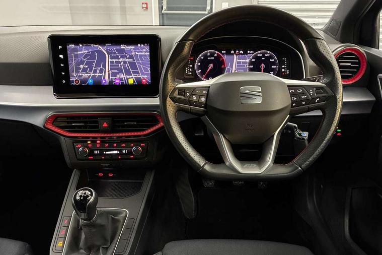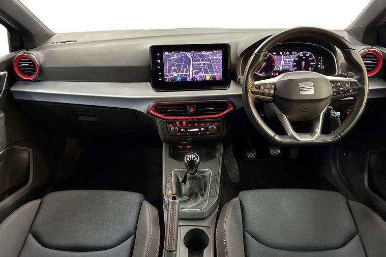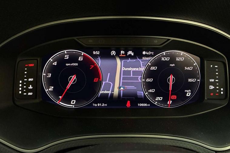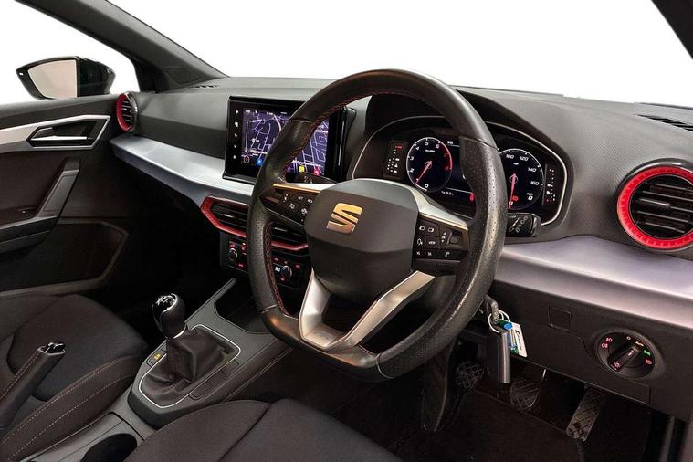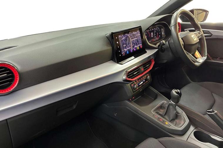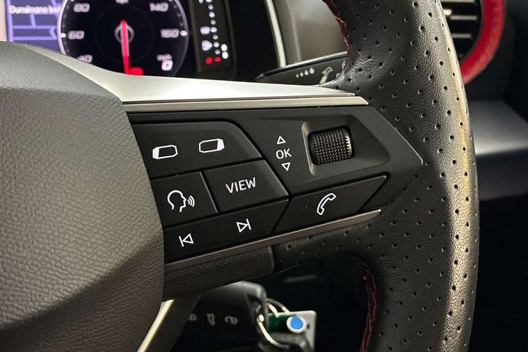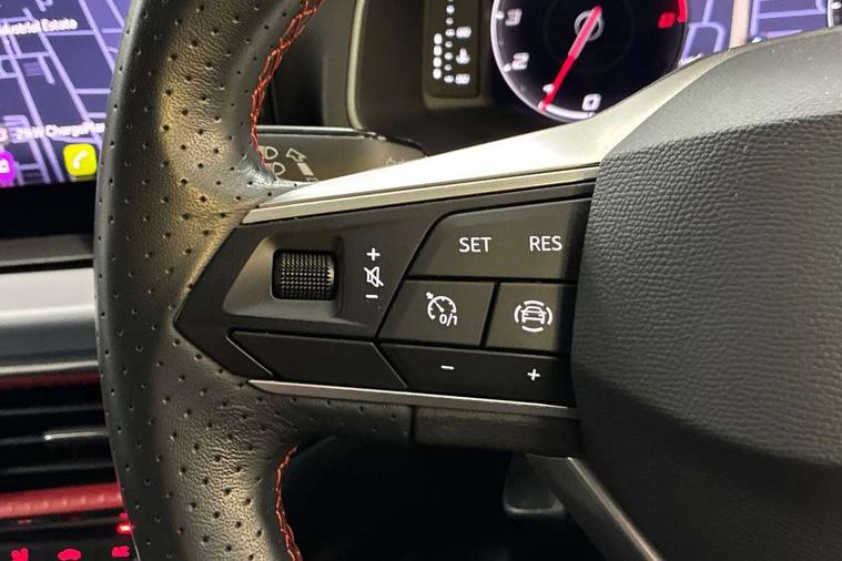 'Lights On' Reminder warning buzzer, 8" Digital cockpit, 9.2" touchscreen navigation system with type C USB socket, Voice control and DAB/AM/FM radio, Auto start and stop system, Bluetooth audio streaming with handsfree system, Digital clock, E-call, Full link smartphone integration with mirror link, wireless apple carplay, Google android auto + USB Type C cable for apple and android devices, Lane assist, Low fuel warning light, Outside temperature gauge, Power Steering, Seat connect with safety, service, remote and online, SEAT drive profiles and ECO function, SEAT logo boot release, Speed limiter, Trip computer, Sports suspension, Auxiliary input socket, Radio/MP3 player, SD card slot, Steering wheel mounted controls, Anti theft roof antenna, Auto dimming rear view mirror, Automatic rain sensing wipers, Black door mirrors, Body colour bumpers, Body colour door handles, Brilliant black window surrounds, Dark tinted rear windows, Electric adjustable/heated/folding door mirrors, Electric front windows, Electric headlight adjustment, Electric rear windows, Front/rear fog lights, FULL LED automatic headlights with dynamic headlight range control, coming and leaving home, LED daytime running lights, LED tail lights, Rear roof spoiler with FR twin exhausts, Rear side wing doors, Rear wiper, Third brake light, 3 seat bench in 2nd row, 60/40 split folding rear seat, Ambient interior lighting, Chrome detailing and black headlining, Cloth upholstery, Dual zone climate control with combination filter, Front courtesy lights, Front cupholders x 2, Front reading lights, Gear shift indicator, Glovebox, Height adjustable front and rear headrests (five), Height adjustable front seats, Height/reach adjust steering wheel, Illuminated air vent surrounds, Illuminated boot, Instrument lighting with brightness control, Isofix, Leather multifunction flat bottomed sports steering wheel, Passenger sunvisor, Single front passenger seat, Sports seats, Sunvisors with mirror and driver side card holder, 3 point seatbelts on all 3 rear seats, ABS, Active front headrests, Child locks on rear doors, Electronic stability control, Energy recovery system, Front assist forward collision warning and autonomous emergency braking, Front driver and passenger side airbags with curtain airbag and front passenger airbag deactivation, Hill hold control, Multi-Collision braking, Seat belt reminder for front and rear seats, Tiredness recognition system, Tyre pressure monitoring system, Electronic engine immobiliser, Locking wheel bolts, Perimeter alarm and interior monitoring with backup horn and tow away protection, Remote central locking + deadlocks, 17" Alloy wheels in Brilliant silver,