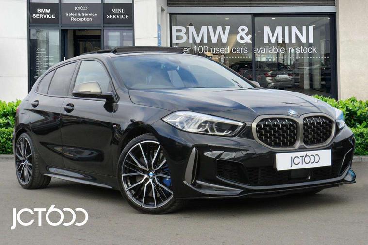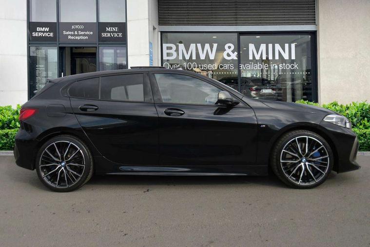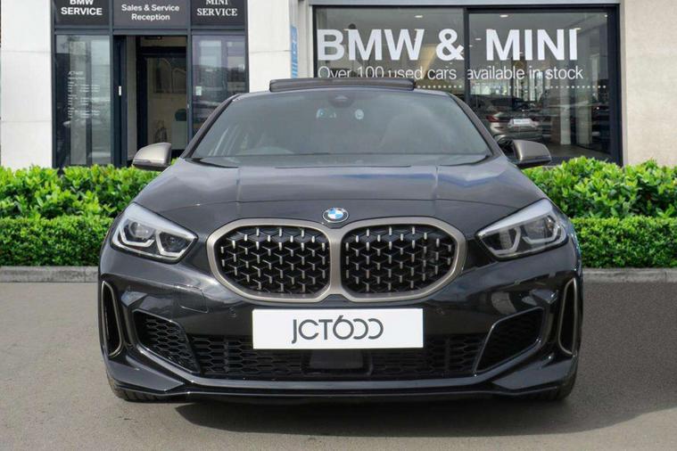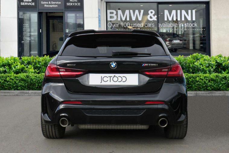Active guard plus, Attentiveness assist, BMW ConnectedDrive online services, BMW Teleservices, Check Control warning system for monitoring of lights and door/luggage compartment open warning, Cruise control with speed limiter, Eco pro mode, Electric power steering, Electro hydraulically controlled multi-plate clutch transfers drive to rear axle and with power take-off device located on the front differential., Energy efficient operating strategy, Front axle single joint with specific axle kinematics to minimise drive influences on steering + provide increased rigidity agile driving behaviour, Gearshift time display in manual mode, Integrated owners handbook, Lane departure warning system, M Sports steering with M135i xDrive specific settings, Oil sensor for level and grade, On board computer, Optimum shift indicator, Personal Profile, Pull away assistant, Rigidly mounted rear subframe - Multi link construction with separate spring / damper configuration and excellent driving characteristics, Speed limit Info including no-overtaking indicator, Sporty fast gear shifting in sport mode, Aluminium lightweight construction, Anti roll bar front and rear, Balancer shaft, Double VANOS, Drive Performance Control, Eight speed sport automatic transmission with gearshift paddle switches, Electronic differential lock, Electronic selector lever, Engine cover with M performance designation, High precision injection, Larger fuel tank capacity (50 litres), Launch control, M135i specific heavily de-throttled engine intake air guide, M135i specific high-performance cooling package, M135i specific larger turbocharger with integrated divert-air valve, Petrol Particulate Filter, Twin tube gas filled shock absorbers with degressive characteristic curve, VALVETRONIC engine management, Variable, stepless and infinitely adjustable distribution of drive torque between the front and rear axles, xDrive intelligent all wheel drive with M135i specific reinforced components, DAB Digital radio, Auto dimming rear view mirror, Automatic headlight beam throw control, Automatic windscreen wipers and automatic headlight, Body colour door handles, Body colour roof trims, Cerium grey exterior mirror caps, Direction indicator side lights in exterior mirrors, Electrically adjustable exterior mirror with mirror adjustment switch on drivers armrest and aspheric on driver side, convex on passenger side, Exhaust tailpipe, Cerium Grey with bevelled finish - twin, round 100mm, left and right split, Fading support, Folding side mirrors with auto dimming/folding wing mirrors with auto dimming, Follow me home headlights, Front and rear bumper system with replaceable deformation elements, Front and rear electric windows with open and close fingertip control, anti trap facility and comfort closing, Front door sill finishers with M135i designation, Green tinted heat protection glazing, High gloss shadowline window frame, Recess cover mirror frames and B/C pillar embelisher trim, High level third brake light, Integrated front windscreen with washer jets, Kidney grille frame in Cerium Grey with Mesh design, LED daytime running lights, LED eyebrow turn indicators, Lightweight engineering, M logo designation side in cerium grey, M Performance exhaust system with valve control and minimised exhaust back pressure, M Performance specific setup, M Sport spoiler, Matt black air guide grilles, Matt black wheel arch trim, Model designation on electric bootlid includes xDrive designation for M135i xDrive, Nearside reverse light in rear light cluster, Preparation for high beam assistant, Rear fog lights, Rear side wing doors, Rear window wiper, Reinforced crank drive, new pistons and adapted con rods, Shark fin antenna, Trailer stabilisation logic, Visible VIN plate, Welcome lighting, 12V power socket in front centre console with blanking plug, 3 rear seat head restraints, 3 seat bench in 2nd row, 3 spoke sports leather steering wheel with black leather and stitching, pearl chrome decorative finish, specific M Badge, Anthracite headlining, Black boot net with lashing eyes, Cargo function on 2nd seat row, Child seat ISOFIX attachment for two outer rear seats and front passenger seat with anchorage points, Conditioned based service, Driver and front passenger backrest net on rear, Driver and front passenger seat heating, Driver side folding compartment in instrument panel, Folding rear clothes hook, Four grab handles integrated in roof lining, Front and rear door pockets with bottle holders, Front and rear side armrest integrated into door trim, Front armrest, Front M sports seats, Glove compartment, Height adjustable front head restraints, Luggage compartment for bag hooks on left and right, foldable luggage compartment liner and four lashing eyelets, Manual adjust steering wheel, Multi-function controls for steering wheel, Single front passenger seat, Storage compartment in centre console, Storage compartment in luggage compartment, Stowage of the parcel shelf in luggage compartment trim, Sun visors with vanity mirrors and insert tab, Two front centre console cupholders, Two zone automatic air conditioning, Type C two USB ports in rear centre console, Velour floor mats, Additional interior lighting pack - 1 Series M135i, BMW live cockpit professional pack- 1 Series, Connected pack professional - 1 Series, Interior lights pack - 1 Series, M Sport exterior styling aerodynamics pack - 1 Series 135i, 2 tone horn, 3 point seatbelts on all seats, front pyrotechnic belt tensioners, stopper and belt force limiters, rear coded belt buckles, Airbags - Front driver/passenger, front and rear curtain head protection, front side, manual deactivation of front passenger airbag, Anti lock braking system (ABS) with brake assist, BMW emergency call, Brake drying, Braking readiness, Child proof locking system in rear door, City braking function, Comfort modes, Cornering brake control, Crash sensor activating of airbags, Unlocking doors, hazard warning lights, fuel cut off, 