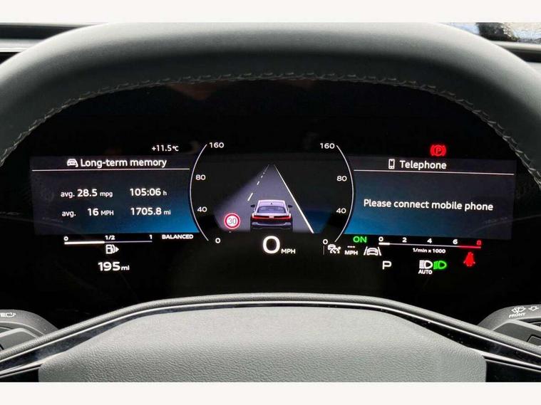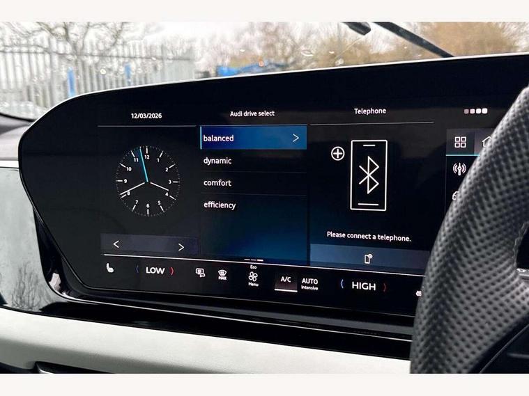 Adaptive cruise control, Advanced driver attention and fatigue montior, Audi application store, Audi assistant, Audi connect emergency call and service, Audi drive select, Audi smartphone interface, Audi virtual cockpit plus with 11.9" OLED colour display, Automatic start/stop system with coasting functionality, Camera based traffic sign recognition, Intersection assist, Lane departure warning, MMI navigation plus with high resolution 14.5" OLED touchscreen colour display, Park assist plus, Parking system plus with 360 display, Progressive steering with servotronic, Rear view camera, Swerve assist and turn assist, Traffic sign based speed limiter, Sports suspension lowered by 20mm, 2 USB-C ports in both the front and rear, Audi sound system impressive sound with 10 loudspeakers including centre speaker and subwoofer, 6-channel amplifier with a total output of 180 watts, DAB digital radio reception, Smartphone compartment with wireless charging, Aluminium window trims, Auto dimming rear view mirror, Body colour door mirrors, Door mirrors - electrically adjustable, heated, folding and auto dimming on both sides, Front and rear electric windows, Front door sill trims with aluminium inlays, illuminated with 'S' logo, High beam assist, LED headlights Plus incl. digital daytime running lights, turning light, all-weather light, motorway light, manouevring light and intersection light, LED rear lights pro incl. dynamic rear indicators and illuminated light strip with animated coming and leaving home function, LED third brake light, Privacy glass, Rear and side windows with heat insulating glass, Rear boot, Rear side wing doors, S Line badges on the front wings, S line bumpers, radiator grille and diffuser in phantom black and diffuser insert in matt anthracite, White rhombus logo projection light in exterior mirrors, Windscreen with acoustic glazing, 3 rear headrests, 3 seat rear bench, 3 spoke leather steering wheel with multi-function buttons with touch control, flattened on top and bottom, with S badging and contrast stitching, 3-zone automatic climate control, 40:20:40 split folding rear seat bench with centre armrest and cup holders, Comfort front centre armrest, Front and rear floor mats, Front seats with manual adjustment for position and 4-way electric lumbar support, Front sport seats with integrated headrest and S embossed logo, Headlining in black cloth, Heated front seats, i-Size child seat mounting on the front passenger side and outer rear seats, i-Size and top tether on the outer rear seats, Luggage compartment lid, electrically opening and closing, Manual steering column height and depth adjustment, Single front passenger seat, Stainless steel pedals and footrest, Steering wheel grips in perforated leather and shift paddles, Ambient lighting package plus - A5, 3x3 point rear seat belts, Driver airbag, Electric child safety locks, First aid kit with warning triangle and vests, Front emergency brake assist, Front passenger airbag, Front passenger airbag deactivation, Front side airbags with head airbag system and front interaction airbag, Hill hold assist, Seat belt monitoring with rear seat occupant reminder, Tyre pressure loss indicator, Anti theft alarm, Anti-theft wheel bolts, Keyless Go, Accent surfaces and control buttons in gloss black, Black dashboard with contrast stitching, Inlays in matt brushed aluminium with linear embossing, anthracite, Softwrap in leatherette with contrast stitching, Upper and lower interior elements in leatherette, Tyre repair kit,