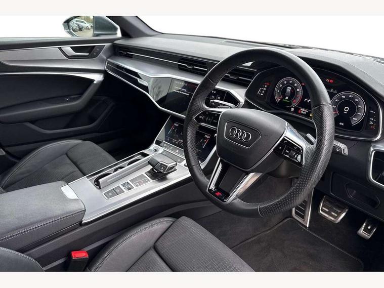 Audi connect safety and service (e-call), Audi connect with Amazon Alexa Integration, Audi drive select, Audi parking system plus - acoustic and visual park assist system for front and rear, Audi virtual cockpit, Automatic start/stop system with coasting functionality, Bluetooth interface, Camera based traffic sign recognition, Lane departure warning system, MMI navigation plus with 10.1" and 8.6" touch screens, Power operated tailgate, Progressive steering, Rear view camera, Service interval indicator, Smartphone interface includes wireless Apple carplay/Android Auto, Voice control system, Sports suspension, Audi front music interface, Audi sound system, Auxiliary input socket, DAB Digital radio, USB connection, Aluminium roof rails, Body colour rear roof spoiler, Body coloured door mirrors, Electric front/rear windows, Electrically adjustable heated and folding + automatically dimming exterior mirrors with memory function, Frameless auto dimming interior rear view mirror, Front intermittent wipers, Heat insulating darkened glass in side and rear windows, Heat insulating glass in windshield, LED rear lights with dynamic indicators, LED signature front daytime running light, LED third brake light, Matrix LED headlights, Matt black rear diffuser with diffuser strip and tailpipes in chrome, Matt black side air intake grille with inlay in matt aluminium, Privacy glass, Radiator grille in anthracite black matt, single frame in chrome and horizontal struts in matt aluminium silver, Rain and light sensors, Rear side wing doors, Rear wiper, 2 zone deluxe electronic climate control, 3 spoke high multi-function perforated leather steering wheel with contrast stitching and shift paddles, 40/20/40 split folding 3 rear seat bench in 3 parts with rear centre armrest, Audi phone box light, Black cloth headlining, Electrically adjustable front seats including seat height, fore/aft position, backrest angle and 4-way lumbar with memory for driver's seat, Front and rear floor mats, Front centre armrest, Front head restraints, Heated front seats, Height/reach adjust steering wheel, Illuminated door sill trims with S logo, Illuminated sun visors with vanity mirrors, Leather gear knob, Luggage compartment system, Rear headrests, Single front passenger seat, Stainless steel pedals and foot rest, Tool kit and car jack, LED Interior Ambient Lighting Pack - A6, Non smoking pack - A6, S line exterior style pack - A6, 3 point seatbelts on all seats, Airbags - Front side, front and rear including head, Audi pre-sense front, EBD - Electronic brakeforce distribution, Electromechanical parking brake, Electronic Stability Control (ESC) including ABS, ASR and EDL, Extended pedestrian protection measures, ISOFIX child seat mounting for front passenger seat and ISOFIX child seat mounting with Top Tether for outer rear seats, Manual child proof rear door locks, Seatbelt monitoring, Tyre pressure warning light, Warning triangle and first aid kit, Anti theft alarm with tow away protection, Anti-theft wheel bolts and wheel loosening detection, Immobiliser, Keyless Go, Remote central locking, Matt brushed aluminium inlays,