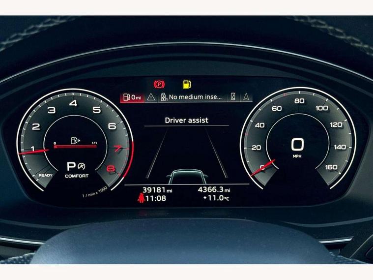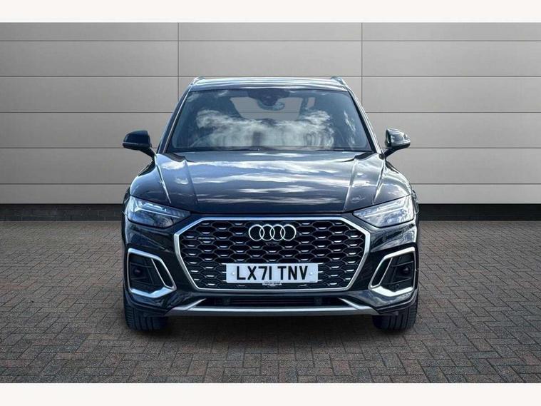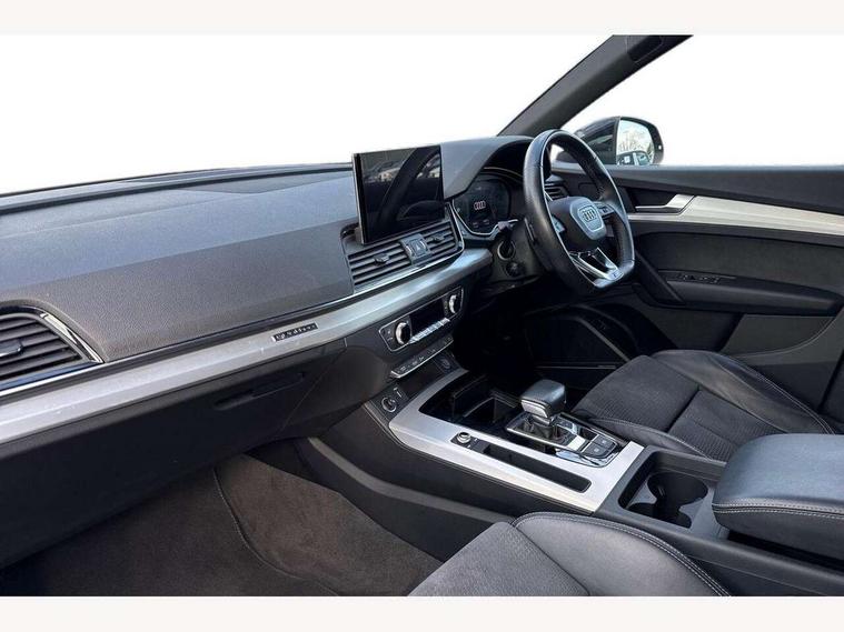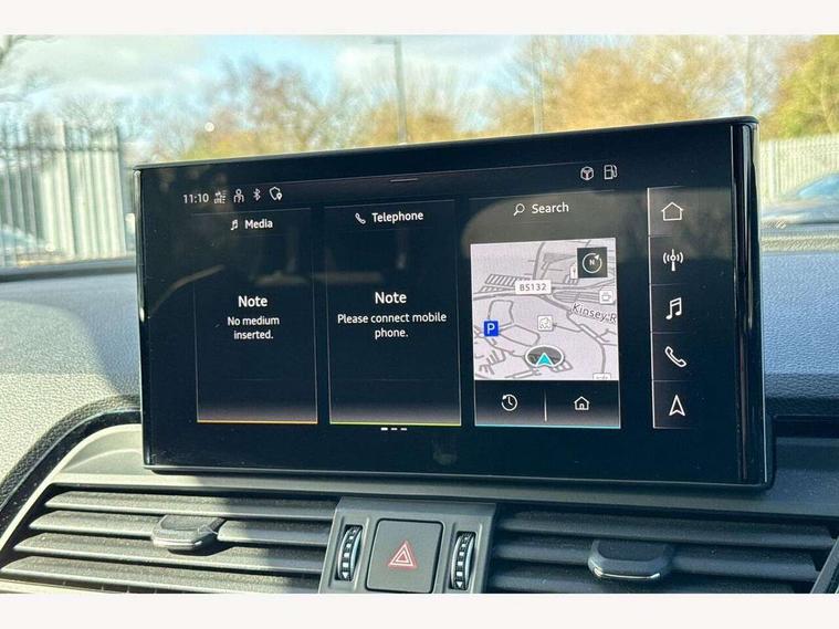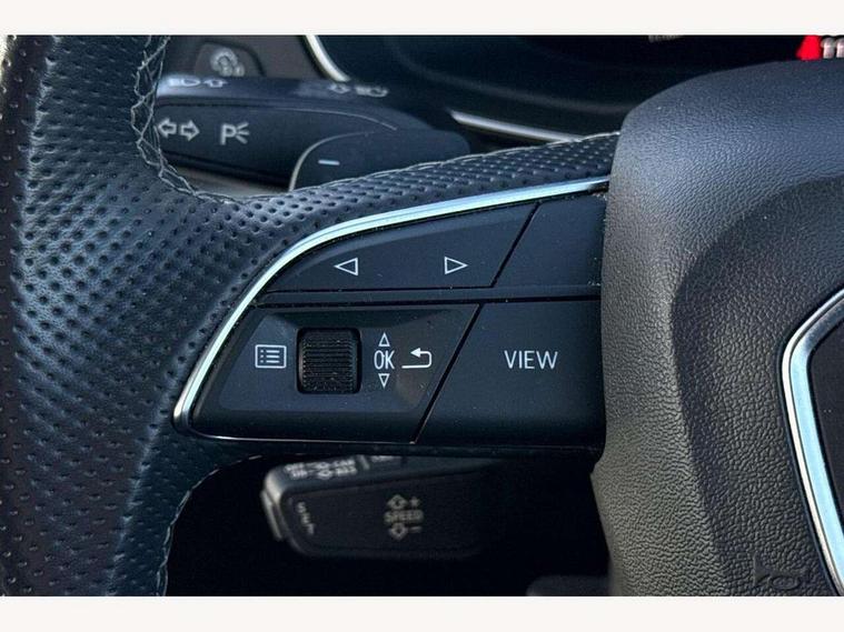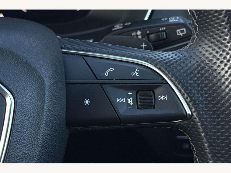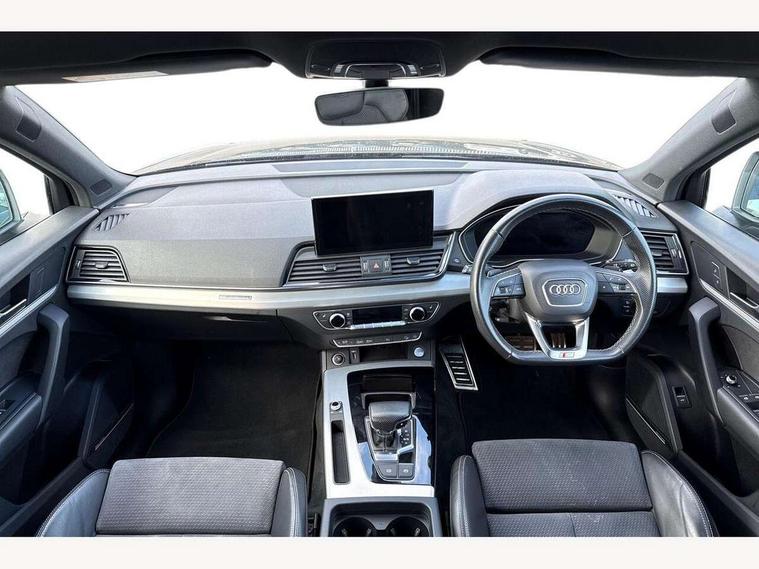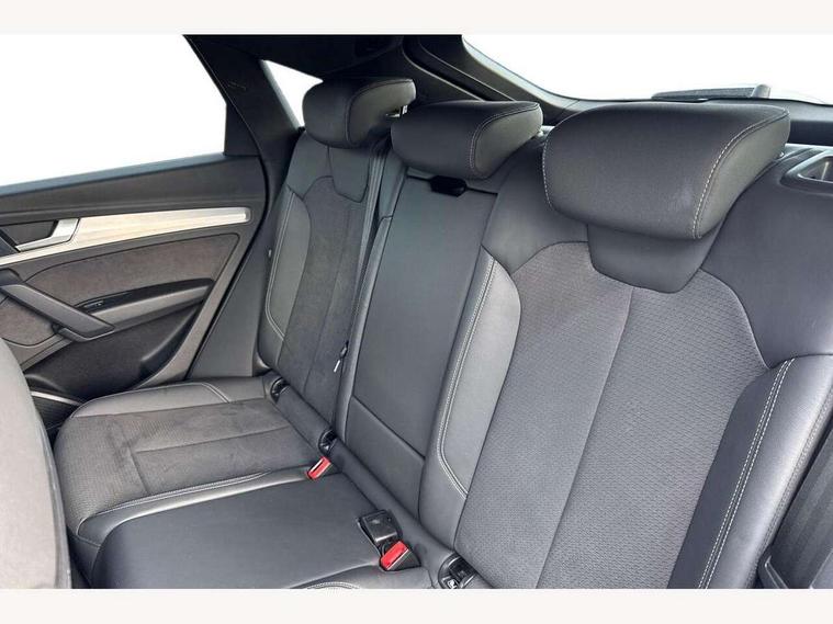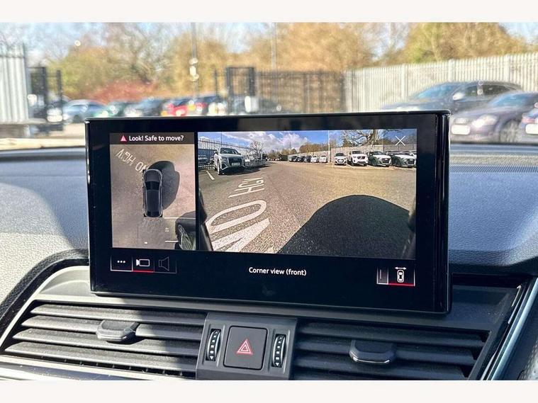 Audi connect safety and service (e-call), Audi connect with Amazon Alexa Integration, Audi drive select, Audi virtual cockpit plus with 12.3" screen and three different layout designs, Audi wireless smartphone interface, Automatic start-stop system with coasting functionality and efficiency programme, Bluetooth interface, Electro - mechanical power assisted steering, MMI navigation plus with 10.1" touch screen, Power tailgate, Reversing camera, Service interval indicator, Voice control system with Audi hotword activation "Hey Audi", Quattro on demand, S line sports suspension, DAB Digital radio, Acoustic windscreen, Aluminium roof rails, Audi matrix LED headlights with dynamic front and rear indicators, Auto dimming rear view mirror, Automatic headlights and windscreen wipers, Body colour door mirrors, Body colour rear diffuser with matt aluminium silver surrounds, Body colour underbody protection, Chrome plated exhaust trims, Door sills in Selenite silver, Electric adjustable/heated/folding door mirrors, Front air inlet surrounds in aluminium, Front and rear electric windows, Front radiator grille in honeycomb design, Headlight washers, Lower bumpers painted in contrast Manhattan grey, Rear chrome trim strip below lights, Rear privacy glass and rear side windows, Rear spoiler, Rear wiper, Roof bars, S Line badges on the front wings, S Line front and rear bumpers, S Line side skirts, 2 x USB charging port with aux input socket, 3 rear headrests, 40:20:40 split folding rear seat with rear centre armrest, Black cloth headlining, Comfort front centre armrest, Contrast stitching on seats, steering wheel and gear lever gaiter, Deluxe 3 zone electronic climate control, Front head restraints, Front/rear floor mats, Gear lever in black leather, Heated front seats, Height/reach adjustable steering column, Illuminated door sill trims with S logo, ISOFIX child seat mounting and top tether, Manual seat adjustment with 4-way electric lumbar support, Removable luggage compartment floor, Stainless steel pedals, Sunvisors with vanity mirrors, Trunk roller cover, High gloss pack - Q5, LED interior light pack - Q5, 3 point seatbelts on all seats, 6 airbags - Driver, front passenger, curtain and side airbags, Electrically operated child locks on rear doors, Electromechanical parking brake, Electronic stabilisation control including ABS, ASR and EDL, Front passenger airbag deactivation, Hill descent control, Hill hold assist, Multi collision brake assist, Pop-up bonnet for pedestrian protection, Pre sense city, Seat belt force limiter, Seatbelt monitoring, Tyre pressure warning, Warning triangle and first aid kit, Anti theft alarm, Anti-theft wheel bolts, Keyless Go access/ignition system, Matt brushed aluminium inlays,