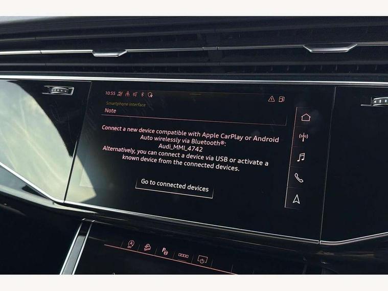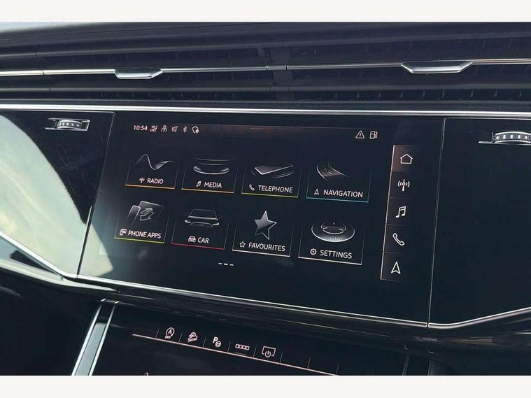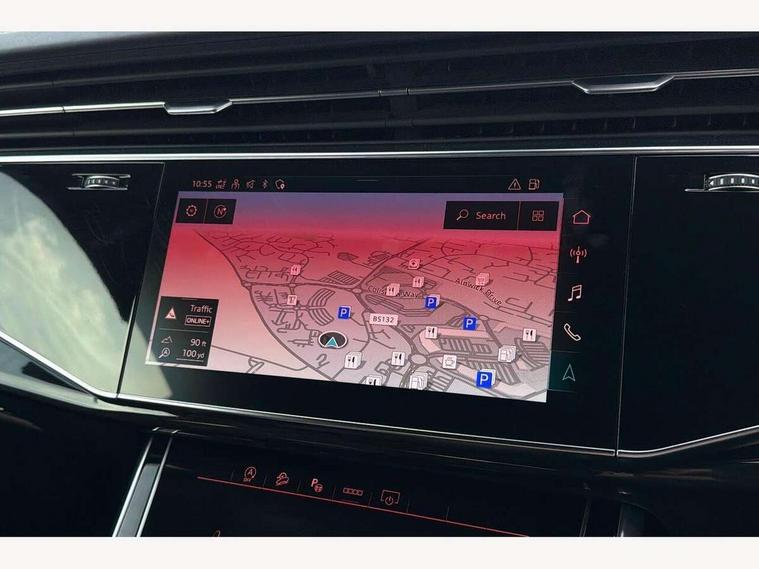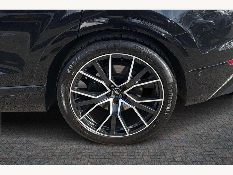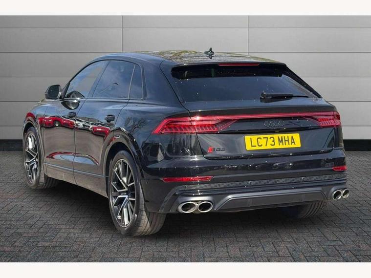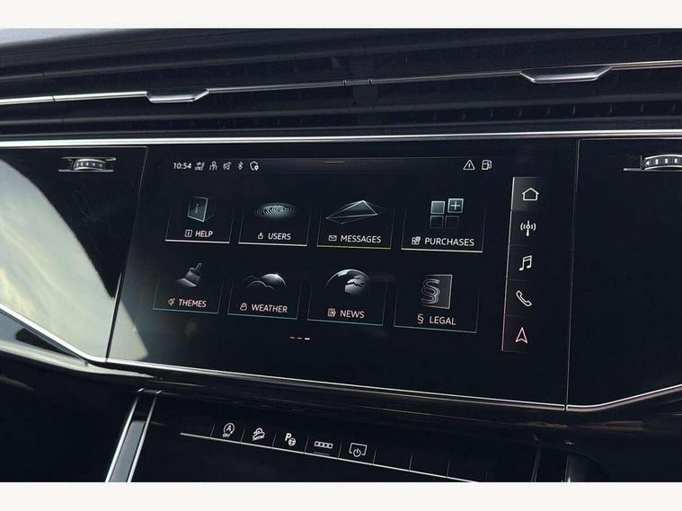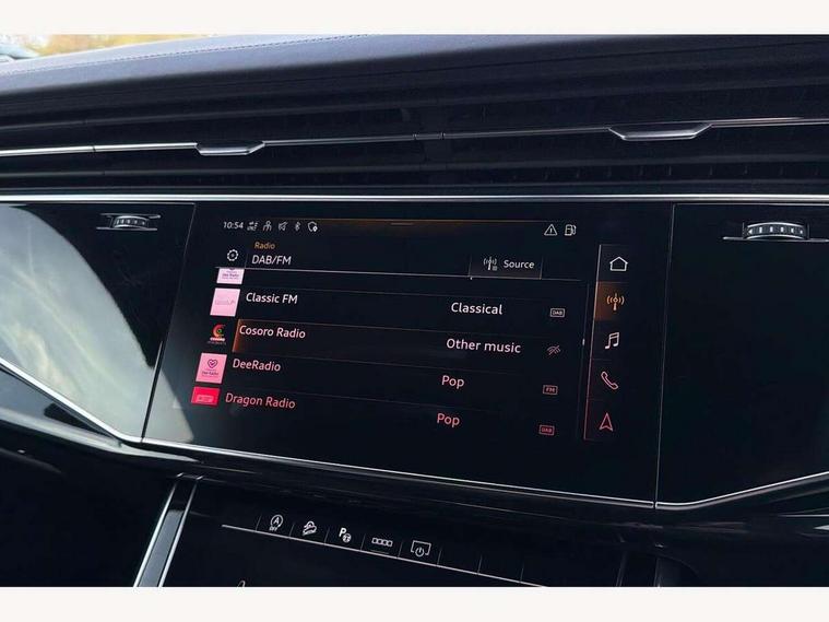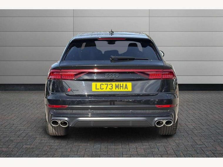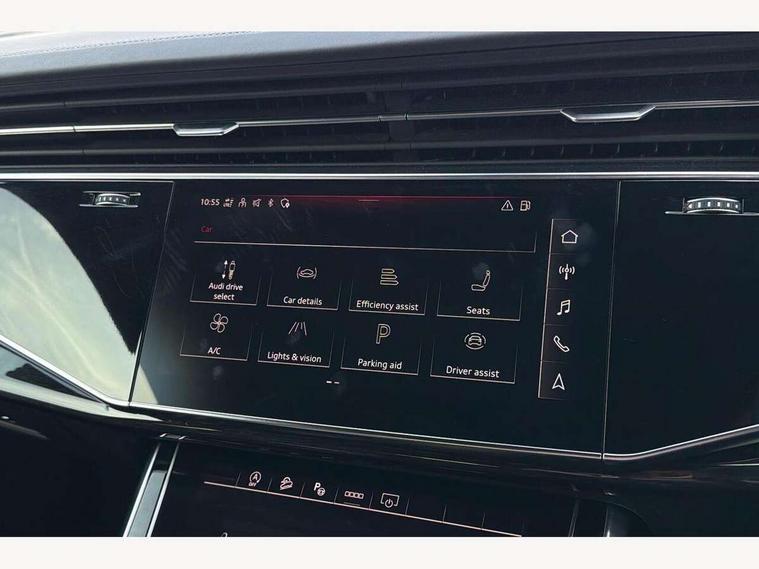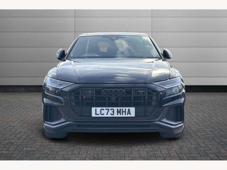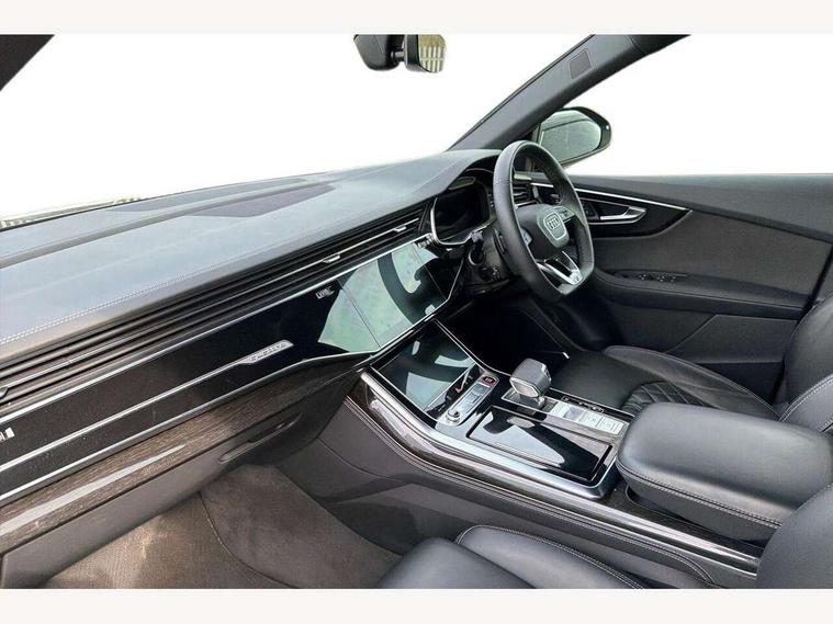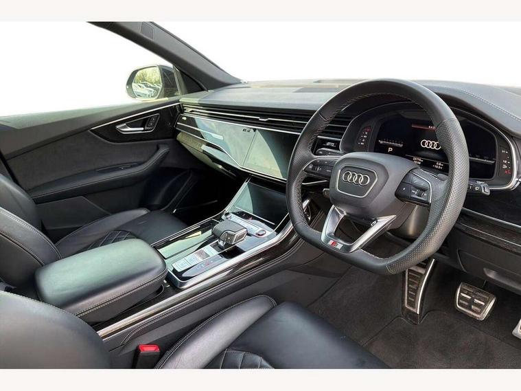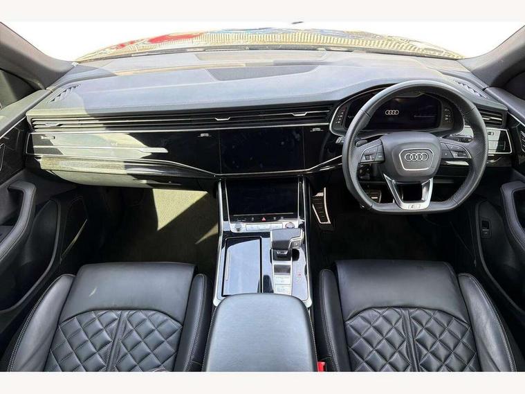 10.1" and 8.6" Dual colour touchscreens, All wheel steering, Audi connect safety and service (e-call), Audi connect with Amazon Alexa Integration, Audi drive select, Audi parking system plus includes 360 degree display with front and rear sensors, Audi virtual cockpit - 12.3" high resolution LCD display with fully customisable instrument cluster, Automatic start/stop system, Electro-mechanical PAS, Low washer fluid indicator, MMI - Multi Media Interface control system, MMI navigation plus with MMI touch, Natural voice recognition, On board computer, Operating buttons in black, glass look with haptic feedback, Power operated tailgate, Rear view camera, Service interval indicator, Smartphone interface includes wireless Apple carplay/Android Auto, 48V Mild hybrid technology, 85 litre fuel tank, Quattro all wheel drive with self locking centre differential, S specific Adaptive air suspension, Audi music interface with 2 USB ports with charge and data functions, Audi sound system with 6 channel amplifier, 180 watt amplifying capacity and 10 loudspeakers including subwoofer, Aux-in socket, DAB Digital radio, 3rd brake light, Acoustic windscreen, Audi Beam uses LEDs to project the Audi logo, Audi HD Matrix LED headlights with dynamic front and rear indicators, Auto dimming frameless rear view mirror, Body coloured bumpers, Coming/leaving home lighting function, Electric front+rear windows, Electrically folding auto dimming/adjustable/heated door mirrors with memory function, LED side indicators and kerb view function for passenger side, Gloss black finish for exterior Audi rings and SQ8 logo, Headlight washers, Heat insulating glass in windshield, LED signature daytime running lights, Platinum grey front spoiler lip and diffuser insert, Privacy glass - dark tinted rear and rear side windows from B-pillar backwards, Rain and light sensors, Rear side wing doors, Rear wiper, S specific dual brach chrome tailpipes on both the left and right, S specific front and rear bumpers, S specific side skirts in matt selenite silver, Side air inlet grilles in matt anthracite black, Trim and underbody protection in matt selenite silver, 3 bench rear seats in 2nd row, 4 zone deluxe automatic climate control, 4-way lumbar support for front seats, 40:20:40 split folding rear bench seat, Black cloth headlining, Comfort front centre armrest, Driver seat memory function, Electrically adjustable front seats, Front head restraints, Front/rear floor mats, Heated front seats, Illuminated door sill trims, ISOFIX child seat mounting for front passenger seat and 2 outer rear seats with top tether child seat mounting for all 3 rear seats, LED interior ambient lighting, Luggage compartment sill protection in stainless steel, Rear centre armrest with 2 cupholders, Rear headrests, Single front passenger seat, Stainless steel pedals, Sunvisors with illuminated vanity mirrors, Upper and lower interior elements in leather, leather door armrests, Valcona leather upholstery + super sports seats with S embossed logo, Anthracite black Styling Pack - Q8, 3 point seatbelts on all seats, Audi pre sense front, Child locks on rear doors, Driver and front passenger, front side and curtain airbags, Electromechanical parking brake, Electronic Stability Control (ESC) including ABS, ASR and EDL, Front passenger airbag deactivation, Hill descent control, Hill hold assist, Predictive pedestrian protection, Seatbelt monitoring, Traction control, Tyre pressure loss indicator, Warning triangle and first aid kit, Anti theft alarm with tow away protection, Anti-theft wheel bolts and wheel loosening detection, Immobiliser, Keyless go with remote central locking, Polished oak trim with grey finish inlay, Tool kit, Tyre repair kit,