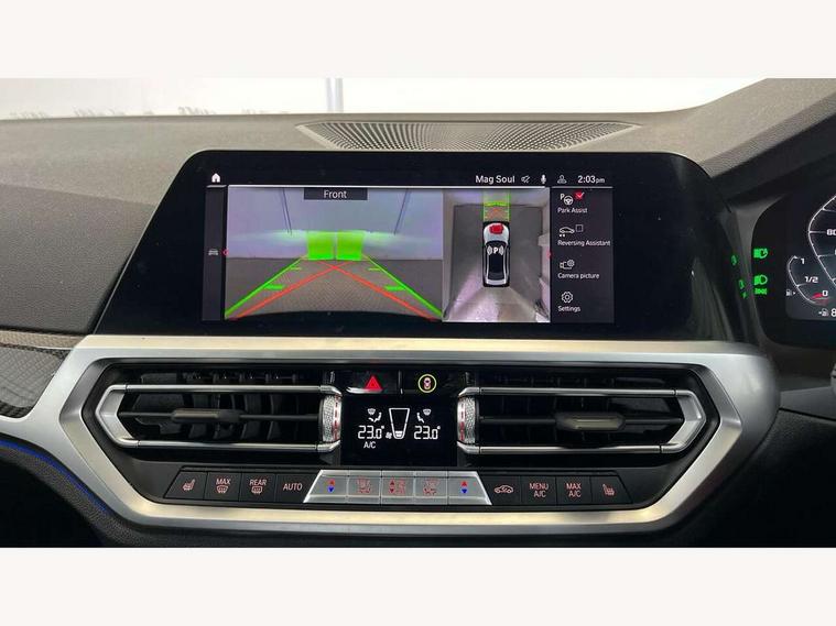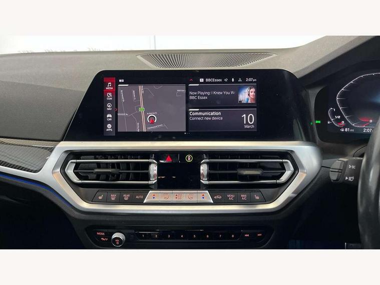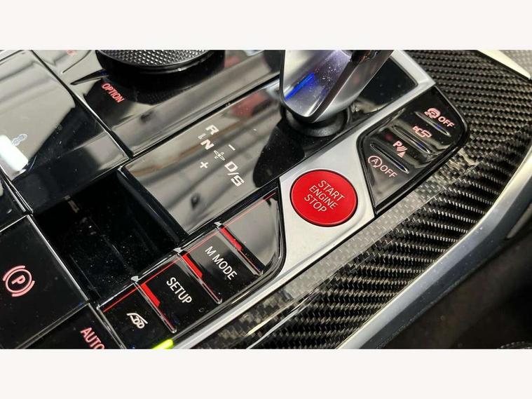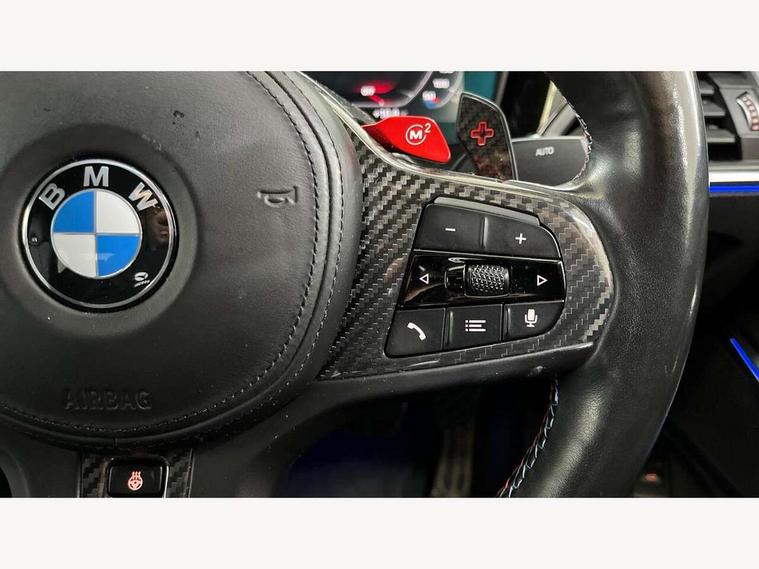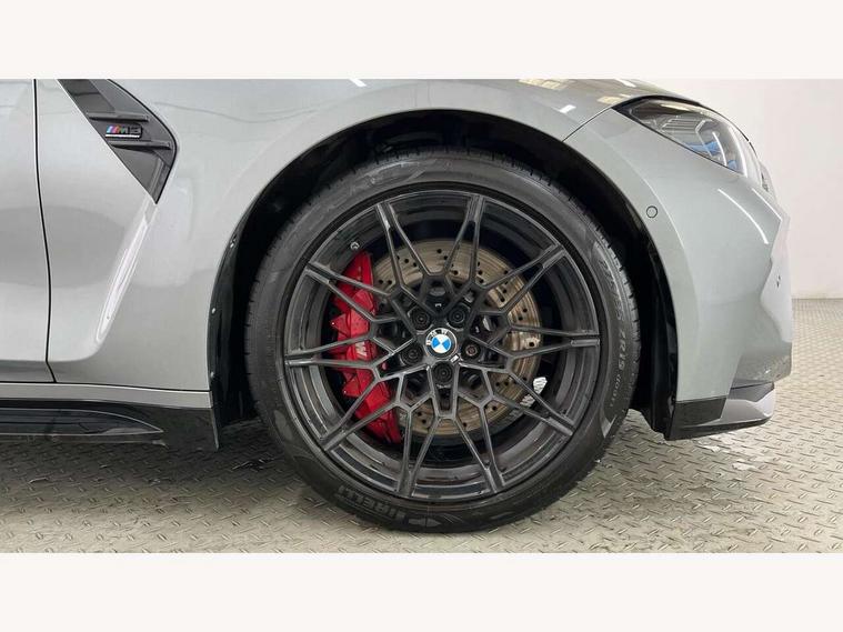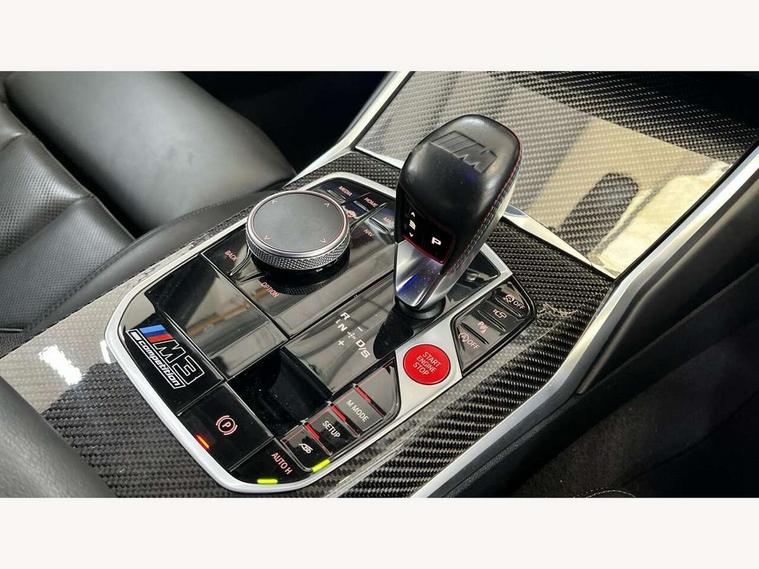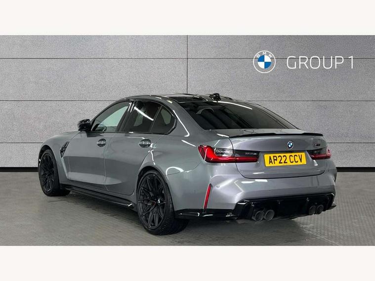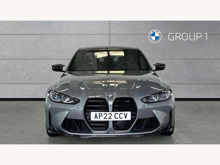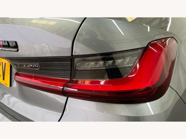 Active guard plus, Automatic start/stop system, Bluetooth functionality with Apple CarPlay/Android Auto, BMW iDrive controller on centre console, BMW legal emergency call, BMW Live Cockpit Professional sat nav system with 12.3" instrument display and high resolution control display, BMW Online services, BMW Teleservices, Brake pad wear indicator warning light, Condition based service, Connected drive services, Door/boot open warning light, Driving experience switch, Electric Power Steering (EPS) with Servotronic, Instrument cluster with extended contents, Lights on warning, M drive buttons, Oil sensor for level and grade, warning by check control system, Oil temperature gauge, On board computer, On board diagnostics, Optimum shift indicator, Outside temperature display, Pull away assistant, Run flat indicator, Service interval indicator, Speed limiter, Widescreen display, Adaptive M Sport suspension, Double joint spring strut front axle, Electronic differential lock control (EDLC), M Drive Professional including track mode, laptimer, traction control & Drift analyser, M Sport differential, M steptronic sport transmission with drivelogic, Safety battery terminal clamp, 8 programmable favourite buttons, Auxiliary point for auxiliary devices, BMW professional radio/CD/MP3, DAB Digital radio, Harman/Kardon loudspeaker system, 3rd brake light, Acoustic glazing, Auto dimming driver's door mirror, Auto dimming rear view mirror, Automatic headlights + automatic windscreen wipers, Black chrome exhaust tailpipes, Black model designation badges, BMW emblem on engine compartment lid and tailgate, BMW high gloss shadow line with extended contents, BMW Individual shadowline lights, Body colour bumpers, Body colour door handles, Carbon fibre reinforced plastic (CFRP) roof, Day time running light, Door mirror integrated indicators, Door sill finishers with aluminium inserts, Dynamic brake lights, Electric adjustable heated door mirrors, Electric folding door mirrors, Electric front and rear windows with one touch/convenient open/close function, Follow me home headlights, Front and rear apron plastic in body colour, Front and rear bumper system, Headlight beam throw control, Heat protection, sun protection glazing, Heated rear window with automatic switch off, High beam assistant, High gloss black frameless kidney grille with M badge, LED number plate light, LED tail lights with 3D L-shaped LED light design, M designation, Mirror glass aspheric on driver's side, convex on passenger side, Rear boot, Rear fog lights, Rear reflectors, Rear right M3 competition inscription, Rear side wing doors, Reversing light, Shark fin roof aerial, Strakes in front side panel, black matt/black high-gloss, with model badge, Visible VIN plate, Welcome lighting, Windscreen wipers with integrated washing jets, 2 cupholders in front centre console, 2 x 12 V Power sockets (luggage compartment and front centre console), 2 x USB Type C ports for charging and data transmission in front centre console, 2 x USB Type C ports for charging in rear centre console, 3 folding rear headrests, 3 seat bench in 2nd row, Ambient lighting, Anthracite headlining, Battery in luggage compartment, Carbon fibre centre console incl. cover for cupholders, Carbon fibre decorative steering wheel finishers, Carbon fibre shift paddles, Carbon fibre strip in instrument panel on front passenger side, Centre console armrest with storage compartment, Compartment in front of cupholder, Driver/passenger sunvisors with illuminated vanity mirrors + covers, Electric front seats + driver memory, English handbook, Floor mats in velour, Footwell lighting, Front and rear door exit lights, Front door storage bins with bottle holder, Front interior light, Front isofix attachment + airbag deactivation, Front seat backrest width adjustment, Front seats lumbar support, Front/rear door armrests, Gearshift lever with embossed M badge, Heated front seats, Height adjustable front headrests, Interior mirror lighting, Isofix on 2nd row outer seats, Lockable/illuminated glovebox, Luggage compartment lighting, Manual 40:20:40 split folding rear seat with two tilt positions for backrest, Rake/reach adjustable steering wheel, Single front passenger seat, Storage compartment in rear doors, Storage tray and compartment with cover in centre console, Three zone automatic air conditioning, Through loading system, Toolkit located in luggage compartment, Wireless charging tray, Additional storage compartment pack - M3, Connected package professional - M3, High gloss shadowline exterior trim pack - M3, 3 point seatbelts on all seats, ABS/EBD, Automatic Stability Control (ASC), Brake energy regeneration, Brake fade compensation, Compound structure brake discs, Cornering brake control (CBC), Crash sensor, Driver/Front Passenger airbags, Dry braking, Dynamic brake control, Dynamic Stability Control with M Dynamic mode, Dynamic Traction Control - DTC, Electromechanical parking brake, Front and rear head airbags, Front seat side impact airbags, Front seatbelt pretensioners + load limiters, Hill start assist, M Sport seat belts, Rear child proof door locks, Seatbelt warning, Side impact protection, Two tone horn, Tyre pressure sensor, Warning triangle and first aid kit, Digital key, Electronic immobiliser, Remote central locking, Thatcham cat 1 remote alarm, Vehicle Key with 4 buttons including the integrated key, Galvanic finish to control surrounds, High gloss black interior trim, Tyre repair kit,
