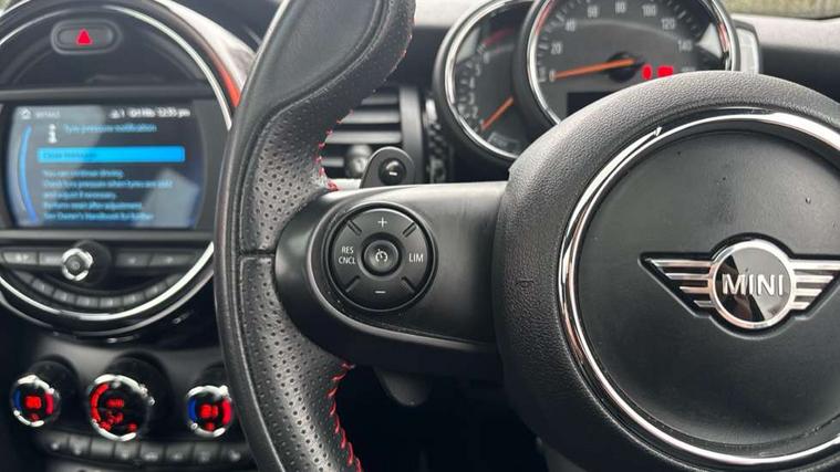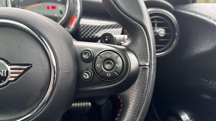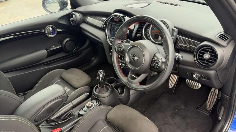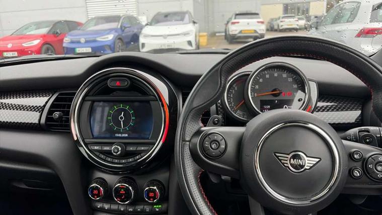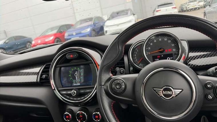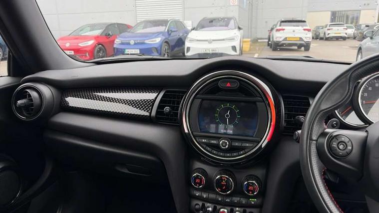 Automatic start/stop function with brake energy recuperation, Compatible mobile phone bluetooth with audio streaming, Electro-mechanical speed dependant steering assistance, Instrument cluster, Mini E-call, MINI TeleServices, On board computer, Service interval indicator, Double Vanos system, Fully variable valve control, High precision injection, Performance Control, Steptronic sport transmission with double clutch and steering wheel paddles, 6.5" touchscreen with LED ring, FM tuner and DAB digital radio, Automatic headlight activation switch, Bonnet scoop, Chrome border honeycomb structure radiator grille with S badge, Chrome plated fuel cap, Dynamic brake lights, Electric front+rear windows, Heated rear window, Heated windscreen washer jets, John Cooper Works - aerodynamic kit (front and rear apron, spoiler), front and rear sport bumpers and part-painted side sills with door sill finishers, John Cooper Works rear spoiler, LED headlight with closed ring and daytime driving lights, Metal door sill strips with Cooper S imprint, Model logo Cooper S on right of tailgate, Rain sensor window wipers, Rear fog lights, Rear LED lights with union jack design, Rear window wiper, Side scuttle panel with integrated indicator, Sun/heat protection glass, Two central exhaust tailpipes with chrome finisher, White indicator lenses, 12V Accessory socket in centre console, 4 lashing eyes in luggage compartment, 60/40 split folding rear seat, Anthracite headlining, Chrome interior highlights, Cupholders, Front and rear head restraints, Front and rear isofix with front passenger airbag deactivation, Glove compartment, Height and length steering column adjustment, Interior lighting with 12 basic colours selectable via toggle switch in roof, John Cooper Works leather steering wheel with contrasting stitching in Chilli Red with John Cooper Works logo, John Cooper Works Logo in seat, Leather gearshift lever and handbrake gaiters, LED reading lights, vanity mirror lights, front foot well light and spotlight on front seats, Manual air conditioning, Mechanical seat adjustment, driver seat height adjust, forward/back and front seats backrest, Mini logo projection on floor from drivers exterior mirror, Multifunction steering wheel, Storage compartments in doors, Storage pocket on back of front seats, Sunvisors with vanity mirrors, 3 point seatbelts on all four seats, 6 Airbags - front, side, head and seat belt tensioners, Anti-lock braking system (ABS), DSC - Dynamic Stability Control, Front and rear disc brakes, Hill start assist, Two tone horn, Tyre pressure monitoring system, Alarm system with tilt sensor, monitoring doors, bonnet interior and tailgate, Electronic vehicle immobiliser, Start/stop toggle with keyless go, Tool kit,