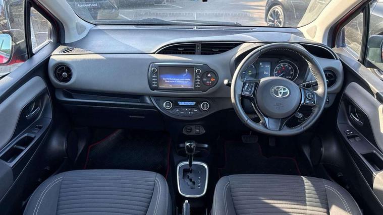 Instrument panel in grey, Space saver spare wheel, Engine immobiliser, Remote central locking, 6 speakers, Auxiliary input socket, DAB Digital radio, Steering wheel mounted audio/telephone controls, Touch 2 touchscreen Radio with iPod connectivity, USB connection, 3 point seatbelts on all rear seats, ABS+EBD+Brake assist, Active headrests, Collision mitigation braking system, Curtain airbags, Driver and passenger airbags, Drivers knee airbag, Emergency brake light system (EBS), Front passenger airbag on/off switch, Front seatbelt reminder, Front side airbags, Height adjustable front seatbelts with pre-tensioners and load limiters, Hill start assist control (HAC), Passenger airbag deactivate switch, Rear child proof door locks, Rear seat belt reminder, Road sign information display, Seatbelt warning lamp and buzzer, Toyota safety sense including Road sign assist, Pre collision system, auto high beam and lane departure alert), Tyre pressure monitoring system, Vehicle stability control VSC + traction control, 2 speed front wipers + intermittent wipe, Auto high beam, Auto up and down function on drivers window, Body colour bumpers, Body colour door handles, Body coloured door mirrors, Chrome fog light surround, Daytime running lights, Door mirror integrated indicators, Drivers window one touch up/down, Electric adjustable heated door mirrors, Electric front windows, Follow me home headlights, Front fog lights, Green tinted glass, Heated rear windscreen, Projector headlamps, Rain sensitive windscreen wipers, Rear wiper, Turning signal integrated indicators in door mirrors, 3 spoke leather steering wheel, 60/40 split folding rear seat, Boot light, Cloth upholstery, Driver seat height adjust, Driver/passenger vanity mirrors with covers, Dual zone automatic climate control, Front cupholders x 2, Front map reading lights, Front seats with lumbar support, Glovebox, Height adjustable front head restraints, Height adjustable rear seat head restraints (x3), Isofix system on outer rear seats, Leather gear knob, Leather parking brake handle, Rear cupholder, Removable rear parcel shelf, Sliding front seats, Tilt/telescopic steering column, Bluetooth system, Cruise control, External temperature gauge, Fuel indicator with low level warning, Lane departure warning system, Lights on warning, Multi-information display, Power Steering, Push button starter, Rear parking sensor, Rear view camera, Road sign assist - RSA, TFT display screen, Touch 2 Go navigation system, Trip computer,