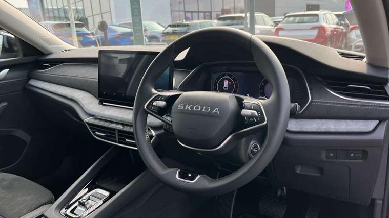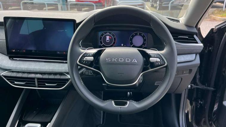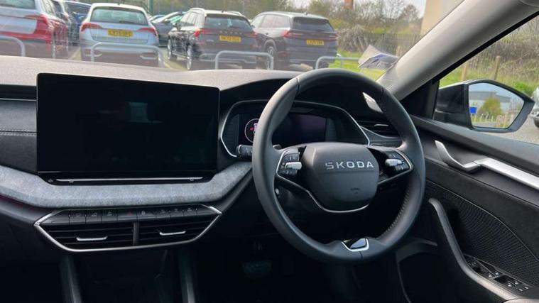 1x USB Typc C port in rear view mirror, 4x USB Type C ports - 2x in front centre console and 2x in rear (45W), Drive mode selection, Driver fatigue sensor, eCall emergency system, Electro-mechanical power steering, Front assist system, Traffic jam assist, Traffic sign recognition, Turn Assist, Virtual Cockpit - 10.25" digital display, Voice control system, Wireless charging (15W) with cooling function, Wireless SmartLink for Apple CarPlay and Android Auto, 13" touchscreen display with navigation, DAB Digital radio, Aero front windscreen wipers with intermittent function, Auto dimming rear view mirror, Body colour bumpers, Body colour door mirrors and handles, Chrome grille surround, Chrome roof rails, Chrome strip in lower front bumper, Chrome window surrounds, Electric front and rear windows, Heated rear windscreen, High level third brake light, Ice scraper in fuel cap, LED daytime running lights, LED Headlights, Logo projection in front doors, Rain and light sensors, Rear fog light on one side, Rear privacy glass, Rear side wing doors, Rear spoiler, Rear window wiper, 12 volt socket in boot, 3 rear headrests, 3 seat bench in 2nd row, 4 foldable roof handles, Front head restraints, Heated front seats, Illuminated glovebox, Interior door handles in dark chrome, Jumbo Box storage, Luggage compartment lighting x2 lights, Mechanical rear seat release from boot, Single front passenger seat, Steering wheel in black leather with black stitching, Storage compartments in left and right of boot, Sun visors with mirrors, Sunglasses storage, Ticket holder, Umbrella in door panel, Unsplit rear bench seat, split folding backrest with centre armrest with cupholder, Comfort package - Octavia Estate, Simply clever package premium - Octavia, 3x3 point rear seat belts, Alarm with interior monitoring, tilt sensor and back up horn, Curtain airbags and front side airbags, Driver and front passenger airbags, Drivers knee airbag, Electronic parking brake, ESC including ABS, EBV, MSR, ASR, EDS, HBA, DSR, Front central airbag, Hill hold assist, ISOFIX on front passenger seat and outer rear seats, Passenger airbag deactivate switch, Three point seat belts in front and rear, Two tone horn, Tyre pressure monitor, Visual and acoustic seat belt reminder, Warning reflectors in front door, Anti-theft wheel bolts, Keyless start/stop, Remote central locking, Chrome air vent surrounds,