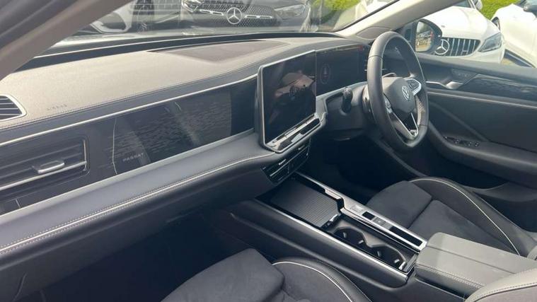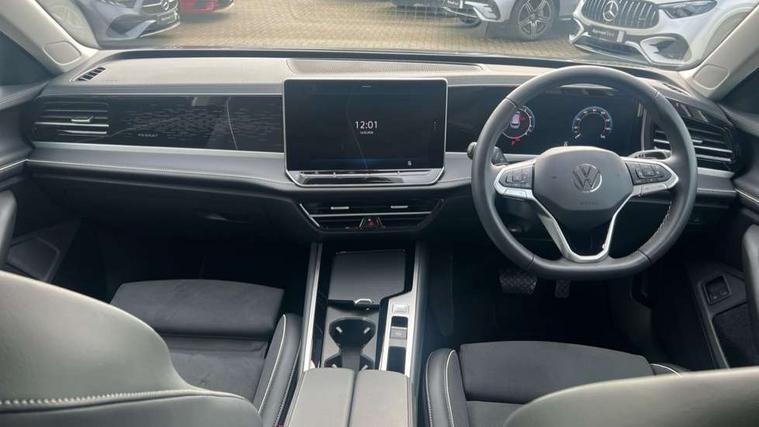 2 x Front USB-C ports, 2 x USB-C charging sockets on the centre console in the rear, charging capacity up to 45W, Adaptive cruise control, Advanced driver attention and drowsiness monitor, Chat GPT function for IDA voice assistant, Digital cockpit pro 10.25" high resolution, Discover media navigation system includes streaming and internet, Dynamic road sign display, E-Sim card for online connectivity, eCall emergency call service, Electronic engine sound, Full electric tailgate operation, Inductive smartphone charging without external antenna connection, Memory feature for park assist, Oncoming vehicle braking when turning including swerve support, Park assist pro with park distance control (Remote park assist), Predictive speed limiter, Preparation for We connect and We connect plus, Wireless app connect, Battery 340 A (58 Ah), Front wheel drive, Petrol Particulate Filter, 8 Speakers, Auto dimming interior rear view mirror, Automatic headlights, Body colour bumpers, Body colour door handles, Electric panoramic sunroof, tilting and sliding panoramic sunroof with rear panoramic sunroof, Heated windscreen washer jets, Laminated safety glass windshield, heat and sound insulating, LED third brake light, Rain sensor, Rear side wing doors, Rear wiper, Welcome light with surround lighting, 3 seat bench in 2nd row, 3 zone air care climatronic with rear air conditioning control panel, 30 colours options interior ambient lighting, Front + rear carpet mats, Front head restraints, Front sports comfort seats, Isofix child seat preparation, easy-fit (for two outer rear seats, and front passenger seat), compatible with I-size, Leather-wrapped, heated and multi-function steering wheel with shift paddles, Luggage compartment cover, power operated, Rear centre armrest, Single front passenger seat, Standard pedal cluster, Sun visors with illuminated vanity mirrors for driver and front passenger, Sunblind for rear side windows, Three rear head restraints, Unsplit rear seat bench, split folding backrest, Acoustics pack - Passat Estate, LED High matrix headlamps pack - Passat, 3x3 point rear seat belts, ABS (Anti locking brake system) includes BAS (Brake assist) and EBD (Electronic brake pressure distribution), Autonomous emergency braking front assist with pedestrian and cyclist monitoring, Disc brakes in front, Driver/Front Passenger airbags, Drivers knee airbag, Electronic parking brake with auto hold, ESC (Electronic stability control) + EDL (Electronic Differential lock) and ASR (Traction control), EDTC (Engine drag torque control), Extended safety system with proactive passenger protection system, Front passenger airbag deactivation switch, Hill hold function, Tyre pressure loss indicator, Warning triangle and first aid kit, Alarm with interior protection, Electronic engine immobiliser, Keyless locking and starting system keyless access with safelock, Aluminium decorative inserts, Tool kit for tyre mobility set, Trims for alloy wheels, Tyre mobility kit including compressor and sealing foam,