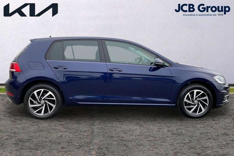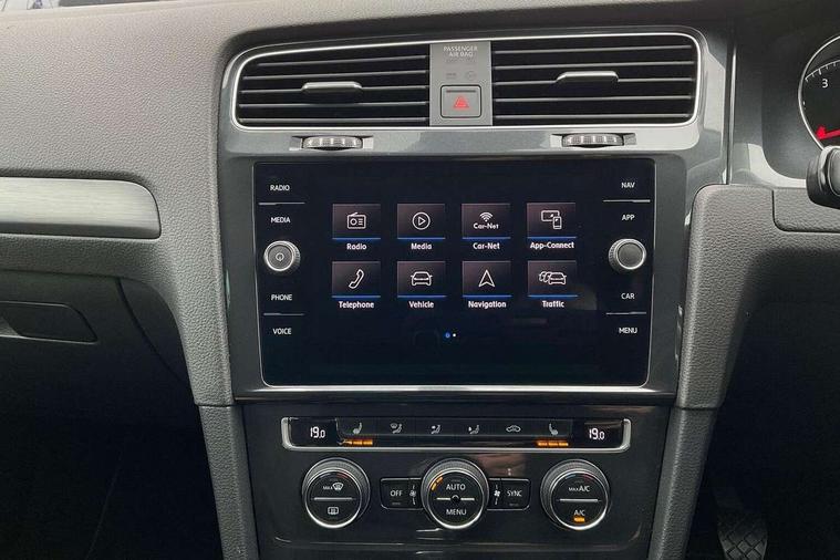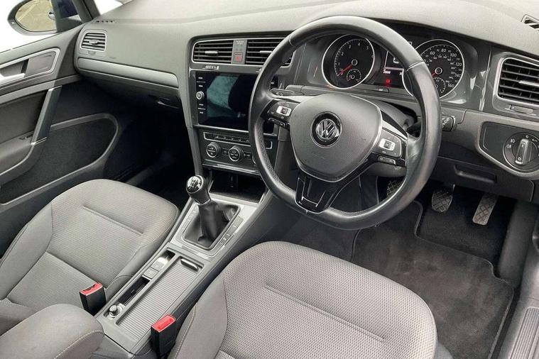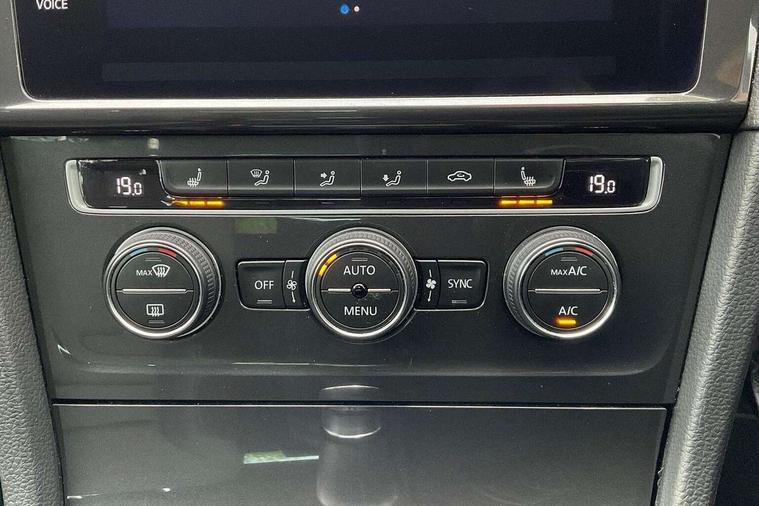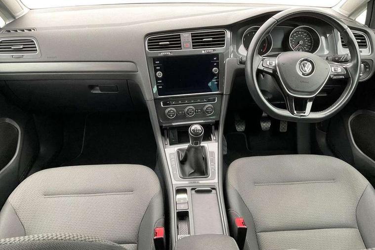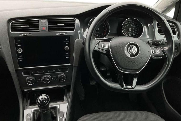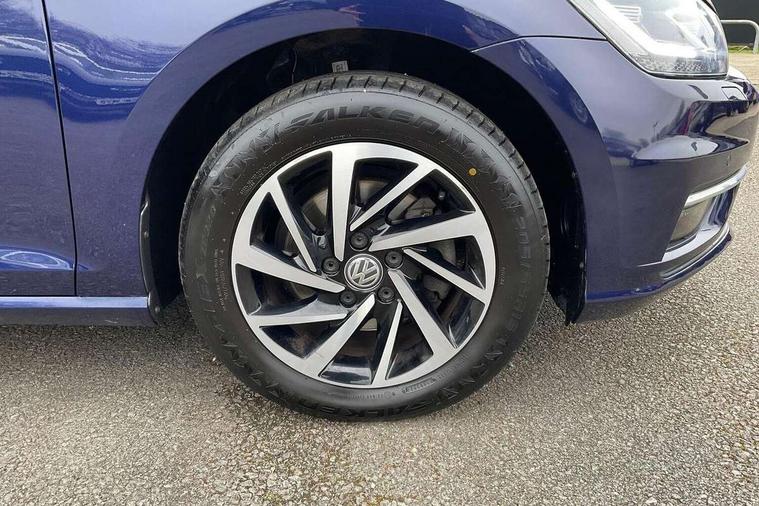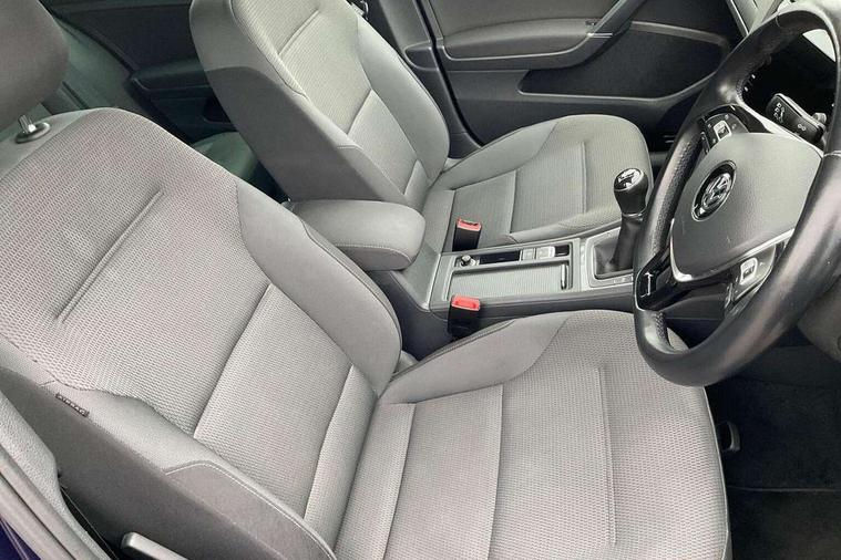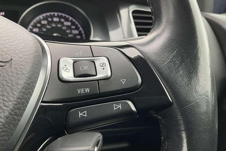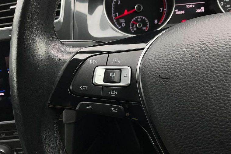 'Lights On' Reminder warning buzzer, ACC - Adaptive cruise control with front assist, forward collision warning, distance monitoring, city emergency brake and speed limiter, Bluetooth telephone and audio connection for compatible devices, Brake pad wear indicator warning light, Driver alert system, Driving Mode Selection with four preset modes - Eco, normal, sport or individual modes, Multifunction computer with visual gear change recommendation for fuel consumption, Power assisted speed sensitive electro-mechanical steering, Push tank flap, Speed limit display, Speedo, rev counter, electronic odometer, trip, service interval display, exterior temperature and fuel gauge, Stop/start system, Think blue trainer driver tips and journey analysis, Warning buzzer and light for front seatbelts unfastened, Battery regeneration during braking, XDS electronic differential lock, Composition media system, DAB Digital radio receiver, Driver Personalisation profile selection, MP3/WMA compatability, Multi device interface (MDI) via USB connection, Premium USB cable in choice of either Apple or Android smartphone compatibility, SMS Functionality, Title and cover art display, USB and SD card connectivity, Volkswagen media control, Black front air intake and radiator grille with chrome insert, Black rear diffuser, Body colour bumpers, Body colour door handles, Body colour door mirrors with integrated indicators, Dusk sensor + automatic driving lights, Electric front windows, Electric rear windows, Electrically adjustable and heated door mirrors, Fully galvanised body, Heated rear windscreen, High level 3rd brake light incorporating LED Technology, LED front fog lights with static cornering light function, Range adjustable headlights via infotainment system with LED daytime running lights, Rear fog lamp, Rear number plate lights incorporating LED technology, Rear tinted glass 65% light absorbing from B pillar backwards, Rear window aerial, Rear window wash/wipe with intermittent wipe, Reflectors in all doors, Tailgate with integrated rear roof spoiler, Windscreen wipers/ intermittent wipe + 4 position delay, 12V socket in luggage compartment, 3 rear headrests, 4 load lashing points in luggage compartment, 60/40 split folding rear seat backrest, Bag hook in luggage compartment x 2, Climate control - 2 zone electronic air conditioning with automatic air recirculation and allergy filter, Cooled glovebox, Cover for storage compartment in centre, Dust/pollen filter, Front and rear reading lights X 2, Front centre armrest with storage compartment and two rear air vents, Front seat back storage pockets, Grab handles front x 2, rear x 2 with integrated coat hooks, Height and reach adjustable steering wheel, Illuminated vanity mirrors, Instrument lighting white adjustable panel illumination, Interior light delay, Isofix preparation for 2 rear child seats, Load through provision with rear centre armrest and cupholders x2, Luggage compartment lighting, Overhead storage box, Pearl grey headlining, Storage box in luggage compartment, Storage compartment in roof console with cover, Storage compartments in centre console, Storage compartments in front doors, Storage compartments in rear doors, Stowable luggage compartment cover, Sun visors, Variable boot floor, height adjustable and removable, Convenience Pack - Golf, Mirror pack - Golf, Winter pack - Golf, 3 rear three point seatbelts, Airbags - Driver's and front passenger's, curtain airbag, Driver's knee, front side impact and passenger's airbag deactivation switch, Anti-lock Braking System (ABS) with Hydraulic Brake Assist (HBA), Automatic post collision braking system, Child locks on rear doors, Driver/Passenger optimised head restraints, Electronic parking brake with auto hold, Electronic stability control (ESC) including Electronic differential lock (EDL) and ASR (Traction control) with deactivation via infotainment system, Front ventilated disc brakes and rear disc brakes, Pre crash preventive occupant protection, Three point height adjustable front seatbelts with tensioners, Tyre pressure loss indicator, Alarm with interior protection and deactivation via infotainment system, Electronic engine immobiliser, Brushed dark silver decorative inserts in dash and door panels, Chrome plated air vent surround, Chrome-plated light switch surround, Polar night black decorative inserts in centre console, Steel space saver spare wheel,