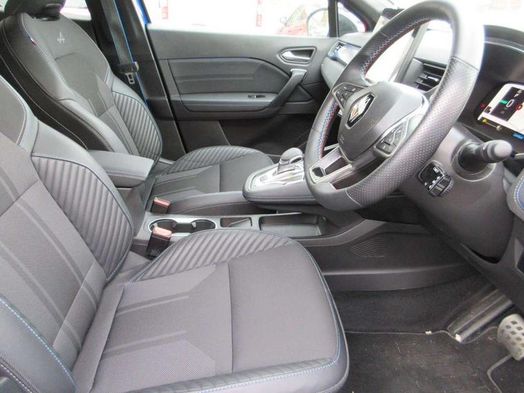 10.25" digital driver display, 10.4" OpenR link touchscreen with with built in Google Automotive Services and navigation, Adaptive cruise control with speed limiter, Driver attention alert system, Driver drowsiness alert system, Eco mode, Emergency lane keep assist including solid line, oncoming traffic and road edge detection, Front and rear parking distance sensors, Gear change indicator, Lane departure warning system, Multisense with 3 driving modes + 8 ambient lighting colours, Rear view camera, Renault automatic emergency assist, Side parking sensors, Traffic sign recognition with over speed prevention, Trip computer, Variable assistance power steering, Wifi smartphone integration compatible with Apple CarPlay and Android Auto, Wireless phone charger, 2 front USB-C ports, 2 rear USB-C ports, DAB radio with Bluetooth, Auto dimming rear view mirror with light and rain sensor - frameless, Automatic front wipers with rain sensors, Automatic headlights, Automatic high/low beam, Body colour door handles, Body coloured bumpers, Body coloured door mirrors, Chrome around front air deflectors, on front wing deco element and window lining, Dark tinted glass in rear windows and tailgate, Day time running light, Diamond black contrasting roof, Drivers one touch window with anti-pinch feature, Electrically folding door mirrors, Front and rear electric windows, Full LED front and rear lights, Gloss black window frame, Heated door mirrors, Heated rear windscreen, LED high level brake lights, LED turn indicators on door mirrors, Longitudinal roof bars, Rear fog lights, Rear side wing doors, Rear wiper, Shark fin antenna, 12V Accessory socket, 2 front roof LED lights and central rear roof light with 3 reading LED lights, 3 bench rear seats in 2nd row, Aluminium sports pedals, Automatic climate control with one touch demist function and air quality regulator, Driver and front passenger seat with electric height adjustment, esprit Alpine enveloping synthetic leather/cloth upholstery, Esprit alpine interior styling, Flying console for auto transmission, Front head restraints, Glovebox, Heated front seats, Heated steering wheel, Heating system with pollen filter, Height/reach adjust steering wheel, ISOFIX child seat fixing points on rear outermost seats, Middle console with armrest and storage, Modular boot floor, Rear air vents, Rear head restraints, Rear seats - 1/3:2/3 foldable sliding bench, Single front passenger seat, Sunvisor with mirror and light, Synthetic leather steering wheel, 3 rear seatbelts, ABS+EBA, AEBS - active emergency braking system, Approaching vehicle sound for pedestrians, Distance warning alert, Driver and front passenger and 3 rear passengers seatbelt reminder, Driver and front passenger, side, head and curtain airbags, Driver height adjustable seat belt, Electric parking brake with auto hold function, Electronic stability control, Front dash warning indicator in case of heavy braking, Front driver and passenger side airbag deactivation, Hill start assist, Manual passenger airbag deactivation function, Rear door and window child locking function for rear door, Tyre pressure warning light, Anti drill door locks and locking fuel cap, Central door locking, Deadlocking system, Hands free keycard with push button and start/stop function, RAID (Renault Anti-Intruder Device) automatic door locking, Black soft touch dashboard, 19" esprit Alpine Elixir alloy wheels,