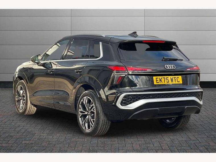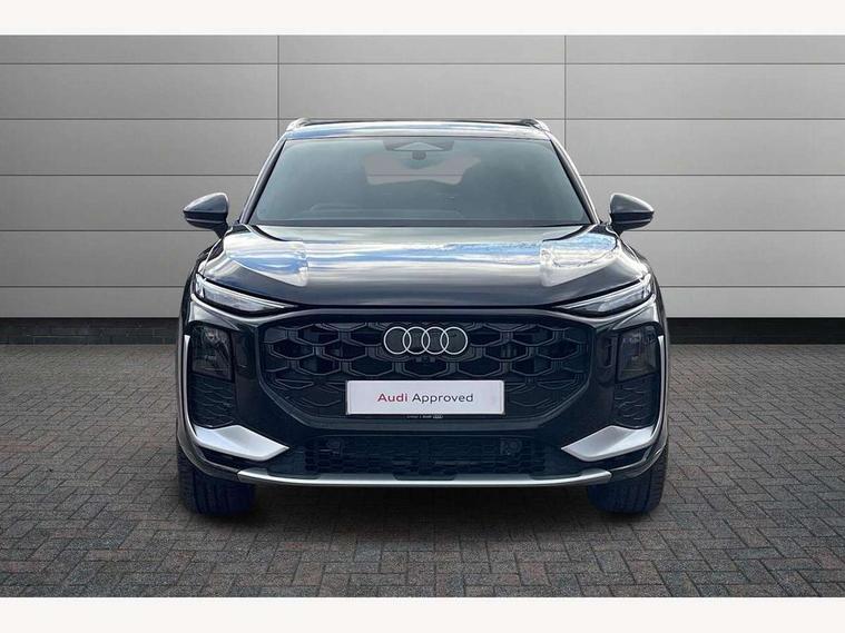 Adaptive cruise control, Audi connect emergency call and service, Audi connect remote and controls, Audi drive select (Balanced/Individual, effeciency, comfort and dynamic), Audi virtual cockpit plus - 11.9" display, Bluetooth interface, Camera based traffic sign recognition, Driver attention and fatigue monitor with driver monitoring, Front cross traffic assist, Lane departure warning with emergency assist, Panoramic curved display with 12.8" MMI navigation plus and MMI touch, Park assist plus with parking system and 360 display, Phonebox light with wireless charging, Reversing camera, Smartphone interface includes wireless Apple carplay/Android Auto, Start/stop system, Swerve assist and turn assist, Traffic sign based speed limiter, Voice control system with natural language interaction, 3 pin 10 amp domestic charging cable, Charging socket CCS type 2, Comfort suspension, Compact charging system, Industrial connector CEE 32A, 230V, Mode 3 charging cable for public charging, 22 KW (AC), Petrol Particulate Filter, 2 USB-C ports with charge and data functions, Audi sound system with 10 loudspeakers, subwoofer, 8 channel amplifier with 260 watts, DAB digital radio module, Acoustic glass for front door windows, Acoustic windscreen, Aluminium roof rails, Aluminium window trim, Audi Q3 lettering on the B-pillars, Auto dimming door mirrors, Auto dimming rear view mirror, Body colour door mirrors, Contrasting finish in volcano grey, Electrically folding, adjustable and heated door mirrors with integrated LED side indicators and kerb view function for passenger side, Full paint finish, Illuminated door sills with aluminium inserts at the front with S logo, LED daytime running lights, LED headlights plus with LED rear lights pro with continous light strip, illuminated Audi rings, rear, LED third brake light, Loading sill protector in stainless steel, Main beam assist, Privacy glass - dark tinted rear window, rear door and side windows, Projection light in the exterior mirrors - Projects a graphic element onto the ground, Q3 badging on the rear, Rain and light sensors, Rear side wing doors, Rear window, rear door windows and rear side windows in clear glass, Rear wiper, Sports bumpers, 3 seat bench in 2nd row, 3 spoke flat top and bottomed leather multi function sport steering wheel with gear shift paddles and "S" badging, 3-zone deluxe automatic air conditioning, 4 way lumbar support for the front seats - electric with horizontal and vertical adjustment in four directions, Black cloth headlining, Convenience auxiliary air conditioning, Front and rear floor mats, Front and rear headrests, Front centre armrest, Heated front seats, Height and reach adjustable steering wheel, Interior storage compartment, Leather/artificial leather upholstery combination with S emblem + front sports seats, Luggage compartment lid, electrically opening and closing, Manual front seats with height adjustment, Rear seat bench plus with split folded 40:20:40, Single front passenger seat, Stainless steel pedals, Steering wheel operating unit, gloss black, Storage compartment in front centre console, Ambient lighting package pro - Q3, S line exterior styling pack - Q3, 3x3 point rear seatbelts, Acoustic vehicle alerting system, Convenience key with safelock, Driver and front passenger airbag with passenger airbag deactivation, Electromechanical parking brake, Electronic stabilisation control including ABS, ASR and EDL, First aid kit with warning triangle and high visibility vests, Front emergency brake assist, Hill hold assist, i - Size child seat mounting on the front passenger side and i - Size and top tether on the outer rear seats, Power operated child locks, Seatbelt monitoring, Three point automatic belts with belt tensioner and height adjustment, Tyre pressure loss indicator, Anti theft wheel bolts, Remote central locking, Thatcham approved category 1 anti theft alarm, Dark aluminium divergence inlay, Interior elements in dinamica microfibre, Interior trims in aluminium look, Tool kit and Jack, Tyre repair kit,