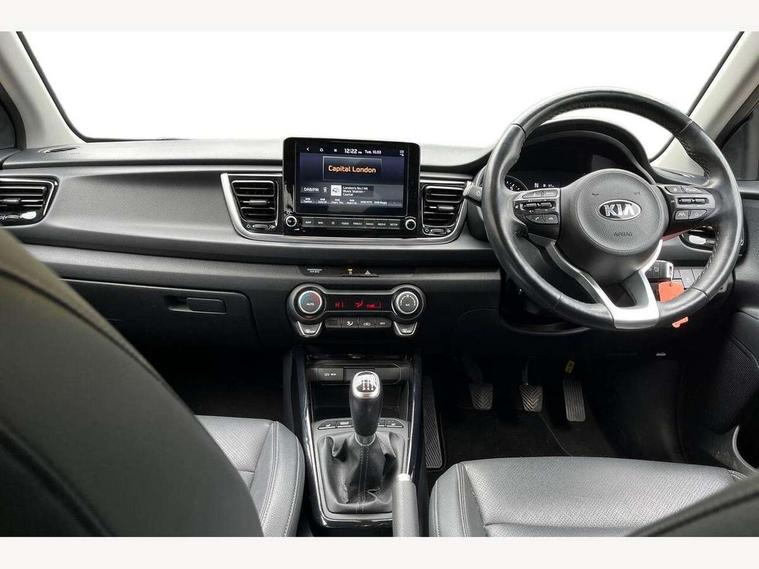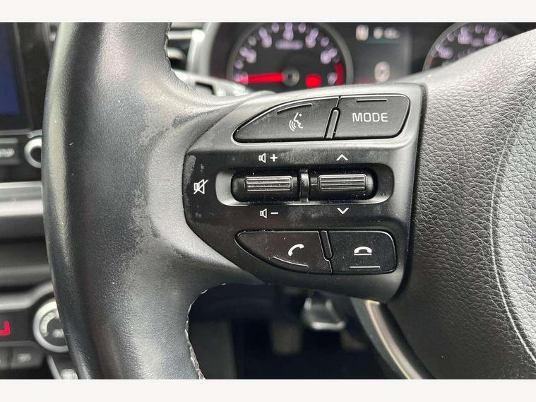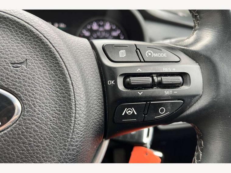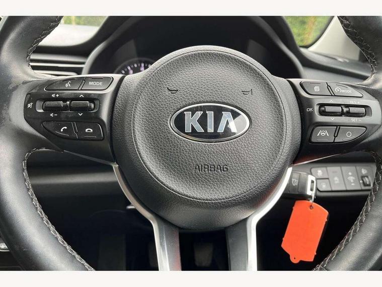 8" touchscreen navigation, Apple car play/Android Auto, Cruise control + speed limiter, Digital clock, Drive mode selector, Electric power steering, Emergency stop signalling system, Gear selection indicator, Manual speed limit assist (MLSA), Outside temperature display, Rear parking sensor, Reversing camera system with dynamic guidelines (Integrated into centre fascia screen), Tachometer, Telematics system with UVO connect services, Trip computer, Voice control system, Windscreen washer level indicator, Intelligent Stop and Go, 6 speakers, Bluetooth connectivity including audio streaming, DAB Digital radio, Front USB port for media connection, Rear USB port, Steering wheel mounted audio controls, Aeroblade-type front wipers, Auto dimming rear view mirror, Automatic defog system, Automatic lighting control, Bi-function projection headlights, Black grille with chrome surround, Body colour bumpers, Body colour door handles, Body coloured door mirrors, Chrome side window trim, Cornering light, Electric adjustable/heated/folding door mirrors, Front and rear electric windows with drivers's auto up/down function, Headlamp levelling, Heated rear window, LED daytime running lights, LED indicators in door mirrors, Privacy glass (Rear Windows and Tailgate), Projection front fog lights, Projection headlights, Rain sensing front wipers, Rear electric windows, Rear fog lamp, Rear wash/wipe, Speed variable front wipers, Tinted glass, Welcome home function, 12V power point front, 3 passenger assist grips, 60/40 split/folding 2nd row of seats, All round height adjustable headrests, Automatic air conditioning, Centre Console with Storage Box and Sliding Armrest, Dash illumination dimmer switch, Driver's seat height adjuster, Driver/passenger sunvisors and illuminated vanity mirrors, Faux leather upholstery, Front and rear door map pockets with bottle holder, Front passenger seatback pockets, Heated front seats, Heated steering wheel, ISOFIX top tethers and lower anchor points, Leather trimmed gearshift, Leather trimmed steering wheel, Load area light, Luggage area parcel shelf, Luggage hooks, Overhead console with sunglasses holder, Satin chrome interior door handles, Tilt/telescopic adjustable steering wheel, Advanced driving assistance pack - Rio, 3-point front seatbelts, 3x3 point rear seatbelts, ABS with Electronic Brakeforce Distribution (EBD) and Brake Assist System (BAS), Automatic unlocking of doors in case of impact, Cornering brake control (CBC) and Straight line stability (SLS), Electronic stability control (ESC) and vehicle stability management (VSM), Front seatbelt pretensioners + load limiters, Height adjustable front seatbelt anchors, Hill start assist control (HAC), Passenger airbag deactivate switch, Rear child proof door locks, Seatbelt warning, Traction control, Twin curtain airbags, Twin front airbags, Twin front side airbags, Tyre pressure monitoring system, Anti theft alarm, Deadlocking system, Engine immobiliser, Locking wheel nuts, Remote central door and tailgate locking with fold-away key, Speed sensitive auto door locking, Visible vehicle identification number, Black faux leather fascia trim, 16" alloy wheels, Tyre mobility system,