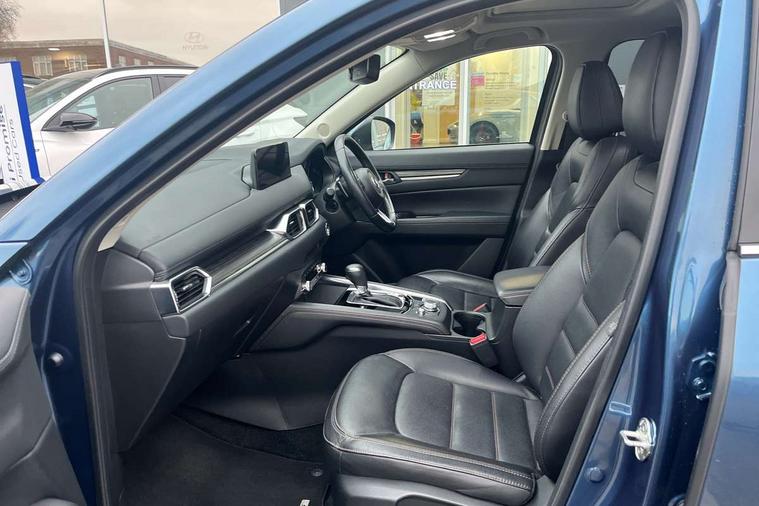 10.25" display with Mazda Connect infotainment, 7" colour TFT display, Apple car play/Android Auto, Bluetooth connectivity with voice control, Collision prevention assist, Connected services, Cruising Traffic Support, Drive mode selector, Electric power steering, Emergency stop signalling system, Engine start/stop button, Forward collision warning, Front and rear parking sensors, Integrated navigation system, Intelligent speed assist, Lane departure warning system, Lane keep assist, Radar cruise control with Stop and Go, Reversing camera, Service indicator, Traffic sign recognition (TSR), Trip computer, Windscreen projected colour active driving display (HUD) with memory, i-stop, 2 USB sockets in rear, 2x USB sockets in front, 6 speakers, AM/FM radio, Bluetooth audio streaming, DAB Digital radio, Multimedia Commander including separate volume dial, Steering wheel mounted audio controls, Adaptive front lighting system, Auto dimming rear view mirror, Automatic headlights, Black inlay dashboard panel, Body colour door mirrors, Body colour roof spoiler, Body coloured front and rear black lower bumper mouldings, Bright finish signature wing, Coming/leaving home lighting function, Door mirror integrated indicators, Dual chrome tailpipes, Dusk sensitive headlamps, Electric front/rear windows with one touch auto up/down, Front grille in gloss black finish, Gloss black B and C pillars garnish, High beam assist, Intermittent rear wash/wipe, LED auto levelling, LED daytime running lights, LED front fog lights, LED Headlights, LED third brake light, Power folding and heated door mirrors, Power tilt/slide sunroof, Privacy glass (rear side windows only), Rain sensing front wipers, Rear side wing doors, Satin black side mouldings, Scuff plates, Shark fin antenna, Signature LED rear combination lights, Vinyl with wood grain metal inlay door trim panel, Windscreen wiper de-icer, 12v electrical power outlet, 3 seat bench in 2nd row, 3 stage heated front seats, 40:20:40 Karakuri fold-flat seat system, 6 way electric adjustable passenger seat, 8 way electric driver seat with lumbar support + memory, Cargo room flat floor board with waterproof undertray, Driver seat power slide, recline and height adjustment, Driver, Front passenger and two rear grab handles with coat hooks, Driver/passenger front seatback pockets, Driver/passenger sunvisors + illuminated vanity mirrors (drivers with ticket holder), Dual zone climate control, Folding centre armrest with 2 cup holders, Front and rear door pockets, Front centre storage with two cupholders, Front passenger seat power slide, recline and height adjustment, Heated steering wheel, Humidity sensor, Illuminated glovebox, Interior dome light with integral spotlight, ISOFIX child seat anchorage points attached on outer rear seats, Karakuri tonneau cover, Leather upholstery, Leather wrapped steering wheel and gear knob, Light roof lining, Luggage compartment LED lighting, Luggage compartment power outlet, Paddle shifts, Rear air vents, Rear headrests, Rear seat recline, Roof mounted sunglasses holder, Single front passenger seat, Three height adjustable head restraints, Tilt/height adjustable steering wheel, White interior LED illumination lighting, 3 point front seatbelts with pre-tensioners, 3 rear 3 point seatbelts, ABS, Advanced Smart City Brake Support - SCBS, Child locks on rear doors, Driver and front passenger side airbags, DSTC-Dynamic Stability and Traction Control, Dual front airbags, Electronic brake force distribution, Electronic parking brake with auto hold, ESP, Front and rear curtain airbags, Front passenger airbag deactivation, G-Vectoring control, Hill hold assist, Seatbelt reminder front and rear, Single stage passenger airbags, Smart brake support with forward obstruction warning, Tyre pressure monitoring system, Automatic door locking when moving off, Deadlock, Immobiliser, Power door locks, Remote central locking, Smart keyless entry, Thatcham Cat.1 alarm, 19" diamond cut black alloy wheels, Tyre repair kit,