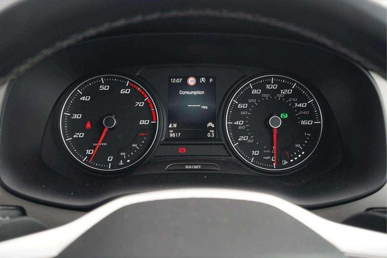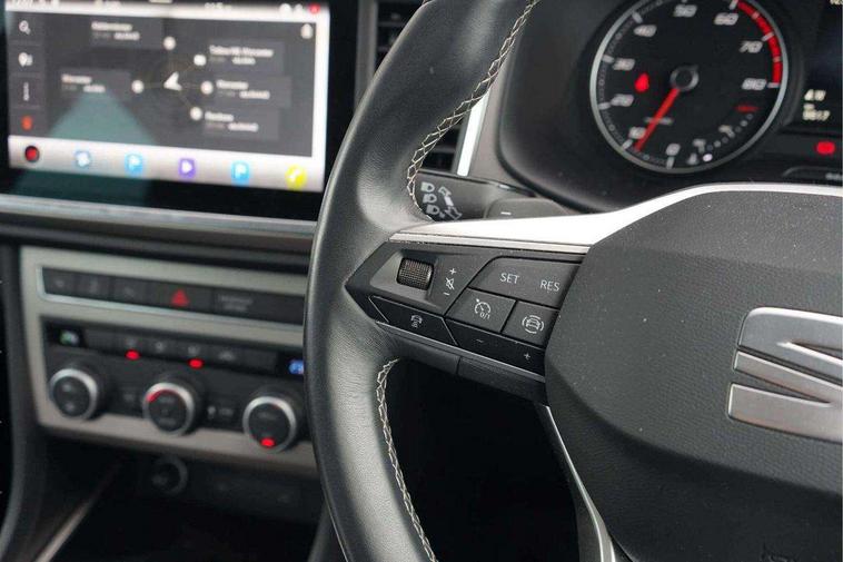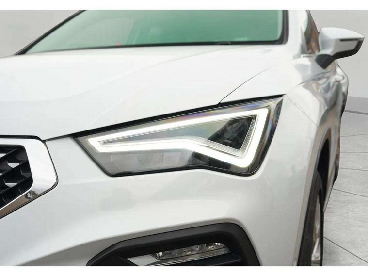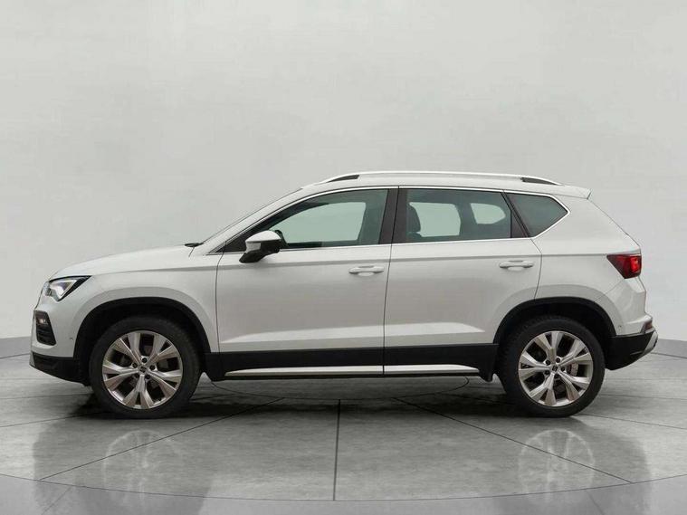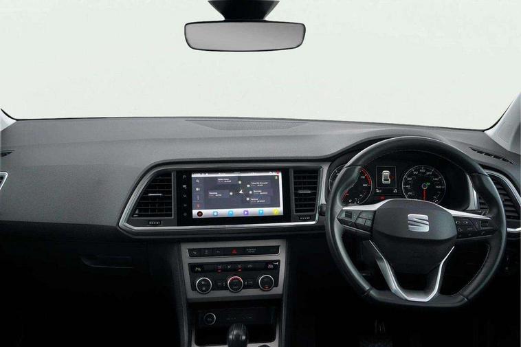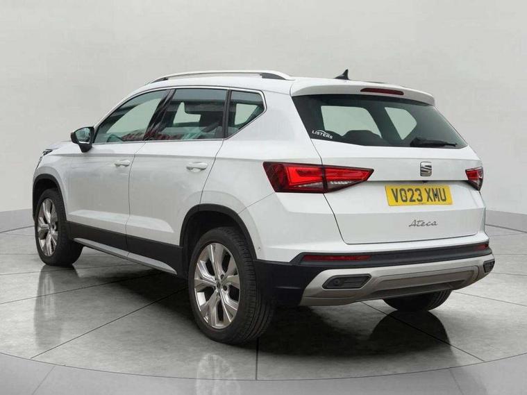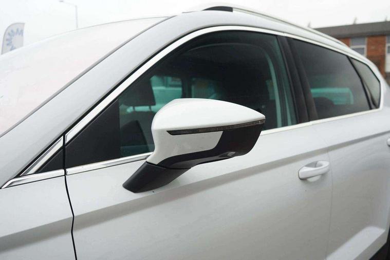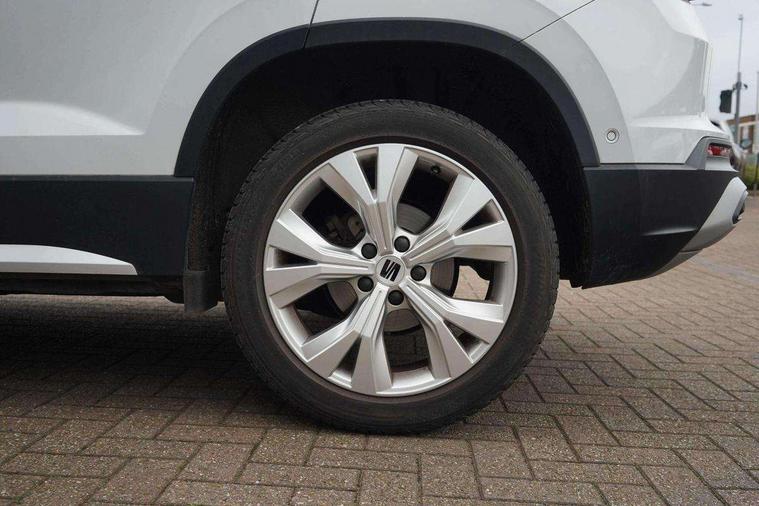 8" Digital cockpit, Colour multi-function on board computer display, E-call, Outside temperature gauge, Progressive power assisted steering, Rear view camera, SEAT drive profile with driving experience button - Normal, Sport, Eco and Individual mode, gearshift, steering and throttle response, Self parking functionality (includes front and rear parking sensors), Start/stop system, Tailgate, Trip computer, Wireless full link smartphone integration, Wireless phone charger, Steering wheel mounted audio/phone controls, Black simulated exhaust pipes, Black wheel arch surrounds, Body colour bumpers, Chrome front grille frame, Chrome roof rails, Chrome side window trim, Dark tinted rear windows, Daytime running lights, Door mirrors with welcome light silhouette, Dynamic headlight range control with self adjusting whilst driving, Electric adjustable/heated/folding door mirrors, Front and rear electric windows, Front grille hot stamping, Full LED headlamps with lens and LED front fog lamps with cornering function, Illuminated aluminium front door sill, LED rear tail lights with dynamic indicators, Rear fog lights, Rear side wing doors, Rear wash/wipe, Reflex silver side mouldings, Roof spoiler, Variable front intermittent wipers, 12V socket in front, 3 seat bench in 2nd row, 60/40 split folding rear seat, Drawer under right front seat, Dual zone climate control, Front and rear head restraints, Front centre armrest, Front seat back storage pockets, Height adjustable driver and passenger seat with lumbar adjustment, ISOFIX points in outer rear seats with top tether anchorage points, Leather steering wheel and gear knob, Microsuede upholstery with front comfort seats, Rear armrest and easy back seat release mechanism from boot, Single front passenger seat, Steering wheel mounted gearshift paddles, Convenience pack - Ateca, Interior lighting pack - Ateca, Navigation system pack with DAB - Ateca, Safe and driving pack with lane assist - Ateca, 3x3 point rear seatbelts, ABS, Traction control system (TCS), Electronic stability control (ESC) and Electronic differential lock system (XDS), Airbags - Driver and front passenger airbag with deactivation, front side, two curtain and driver's knee airbags, Electric parking brake with auto hold function, Front and rear seatbelt reminder, Hill hold control, Manual rear child locks, Single tone horn, Tiredness recognition system, Traction control, Tyre pressure monitoring system, Alarm, Keyless entry, Locking wheel bolts, Remote central locking, Chrome interior detailing, 18" Brillaint silver alloy wheels,