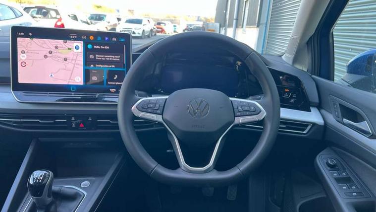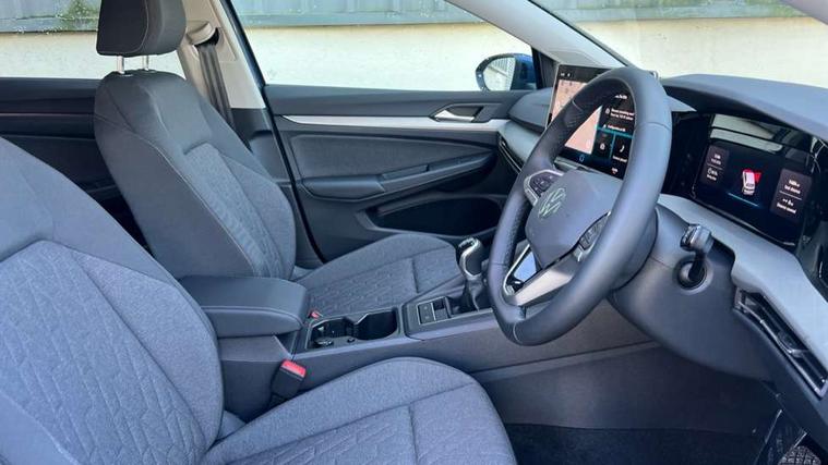 Activated carbon canister, Adaptive cruise control (ACC), Advanced driver attention and drowsiness monitor, Dynamic road sign display, E-Sim card for online connectivity, eCall emergency call system, Multi-color Digital cockpit pro, selection of different info profile possible, Multifunction front facing camera for distance control, Navigation system, Oncoming vehicle braking when turning including swerve support, Speed limiter, Speedo, rev counter, electronic odometer, trip, service interval display, exterior temperature and fuel gauge, Voice enhancer and voice control, Warning signal and warning light for front and rear seatbelts not fastened, We connect plus preparation, We connect preparation, Wireless app connect, Petrol Particulate Filter, Start-stop system with battery regeneration (recuperation - energy recovery during braking), XDS electronic differential lock for improved traction and handling, 2 USB C ports in front, 2 USB charging sockets on the centre console in the rear charging capacity upto 45W, Digital radio reception (DAB), Diversity antenna for FM reception, Gaming platform via car app, Infotainment system with 12.9" display, Mobile phone interface with inductive charging feature, 3rd brake light, Automatic headlamp activation with Coming home and Leaving home feature, Body colour door handles, Body colour door mirrors, Exterior mirrors convex on the left and aspherical on the right, Front and rear electric windows, Heat insulating windshield made of laminated glass, LED separate daytime running light, Rear exhaust tailpipe, Rear fog light on one side and reversing lights on both sides, Rear side wing doors, Rear tinted glass 65% light absorbing from B pillar backwards, Rear windscreen washer and wiper with interval delay, Remote electrically foldable door mirrors, puddle lights and reverse activated passenger's door mirror, Standard bumpers, Welcome light with surround lighting, 12V socket in front centre console, 12V socket in luggage compartment, 3 rear head restraints, 3 seat bench in 2nd row, Chrome plated radiator grille inserts, air vent surrounds and light switch surrounds, Front centre armrest, Front head restraints, ISOFIX anchors for child seats on outer rear bench seats and on front passanger seat compatible for i-Size, Leather gearshift handle, Luggage compartment lighting, Manual height adjustable front passenger seat, Rear cupholder and loadthough, Single front passenger seat, Soul black instrument panel, Split folding backrest with centre armrest and unsplit rear seat bench, Standard pedal cluster, Storm grey roof lining, Sun visors with illuminated vanity mirrors, Parking and comfort pack - Golf Estate/Hatchback, 3 point height adj front seatbelts + pretensioners, 3 rear three point seatbelts, ABS, Autonomous emergency braking front assist with pedestrian and cyclist monitoring, Child locks on rear doors, Driver and front passenger airbag with front passenger airbag deactivation, Electronic parking brake with auto hold, ESC (Electronic Stability Control), Extended pedestrian protection measures, Rear disc brakes, Two tone horn, Tyre pressure loss indicator, Volkswagen roadside assistance, Anti theft wheel bolts, Preparation for alcohol interlock, Nature cross brushed decorative inserts for dashboard and front door panels,