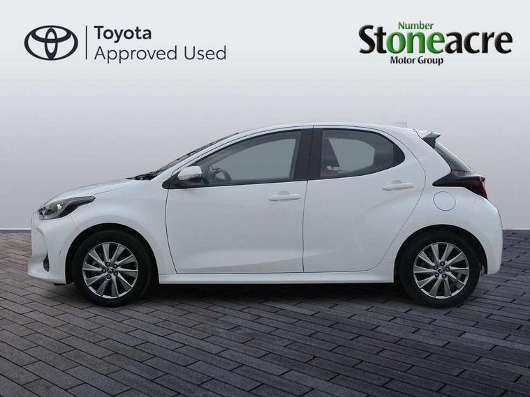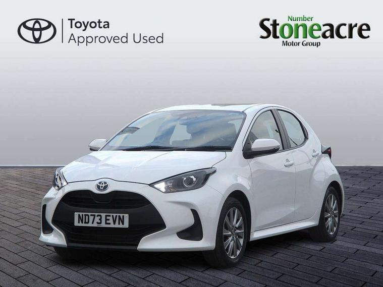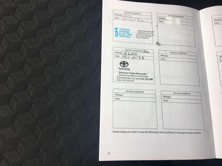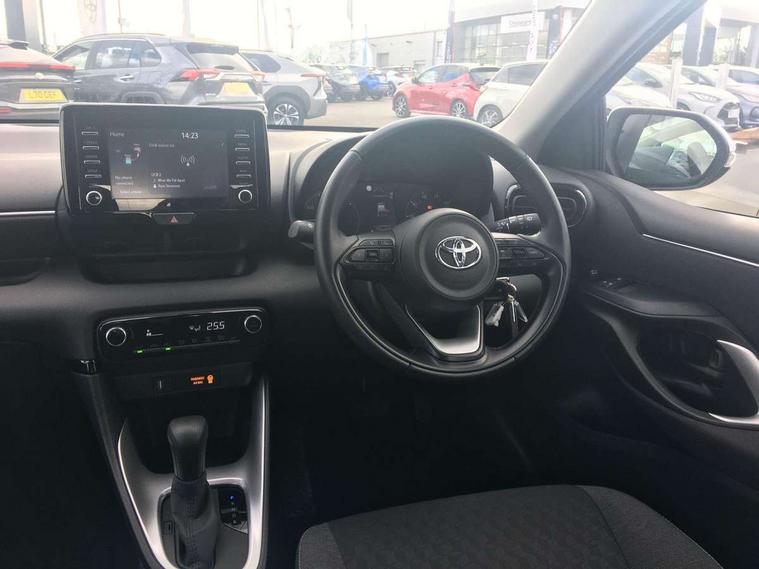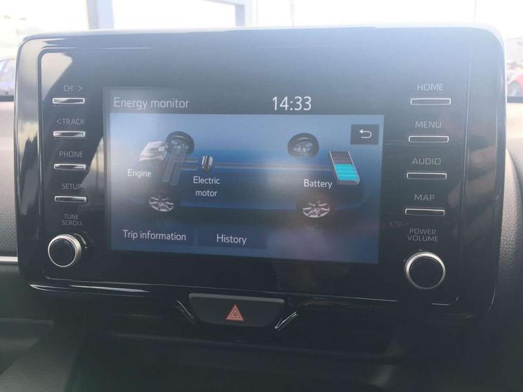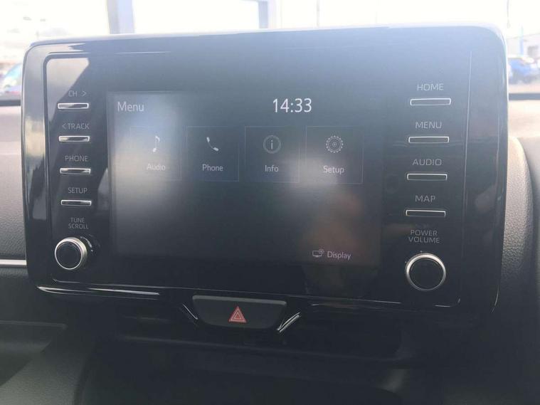 4.2" coloured TFT multi information display with analogue speedometer, Adaptive cruise control, Adjustable speed limit with speed warning, Bluetooth connectivity, E-call, Electric power steering, Hybrid energy display, Multi information display switches on steering wheel, Reversing camera, Smartphone integration with Apple CarPlay and Android auto, Tailgate, Voice recognition, Vehicle Stability Control (VSC), 4 speakers, 7" Multimedia display touch screen, Toyota Touch 2 with DAB, USB connection, Acoustic windscreen glass, Auto windscreen wipers, Automatic headlights, Body coloured door mirrors, Bulb indicators, Chequered front grille, Daytime running lights, Electric adjustable heated door mirrors, Follow me home headlights, Front auto power windows with anti jam protection, Halogen projector headlights, LED High mounted stop lamp, Manual headlight levelling, Rain sensor, Rear side wing doors, Rear spoiler, Rear wiper, Shark fin antenna, Turning signal integrated indicators in door mirrors, Variable front intermittent wipers, 3 adjustable rear headrests, 3 seat bench in 2nd row, 3 spoke leather steering wheel, 60/40 split folding rear seat, Active headrests, Adjustable boot height, Auto air conditioning, Coat hooks in rear grab handles, Cup holders (2 front & door), Data Communication Module (DCM) connected services, Fabric upholstery, Front armrest, Glovebox, Grey roof lining, Height adjustable driver's seat, Isofix seat fixing, Leather gearshift, Pollen filter, Shopping bag hooks, Single front passenger seat, Tilt/telescopic steering column, 3 point seatbelts on all rear seats, ABS+EBD+Brake assist, Electronic parking brake, Emergency brake light system (EBS), Front passenger airbag on/off switch, Front seatbelt reminder, Hill start assist control (HAC), Rear child proof door locks, Rear seat belt reminder, Supplemental Restraint System (SRS) 8 airbags: Driver & passenger's airbags, dual side curtain airbags, side impact airbags, front centre airbag, Toyota Safety Sense 2, Precollison + Night time Pedestrian & Cyclist Detection, Lane Trace Assist, Auto High Beam, Intelligent ACC & Road Sign Assist, Tyre pressure warning system, 2x Master key, Alarm/immobiliser, Remote powered central double locking doors, Soft touch instrument panel, Space saver spare wheel,