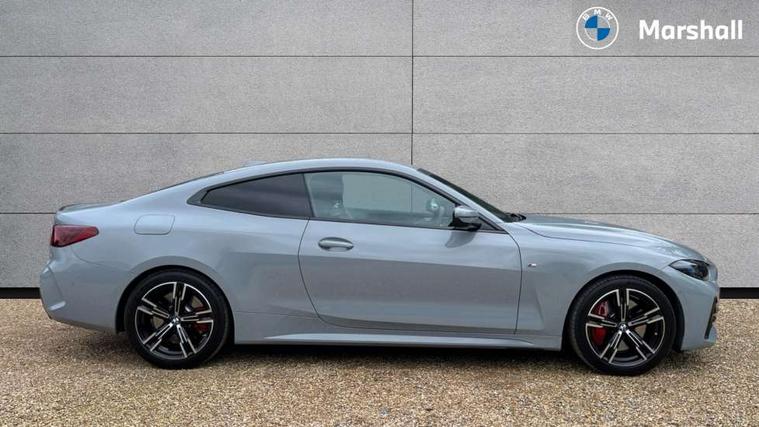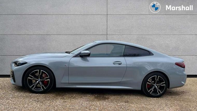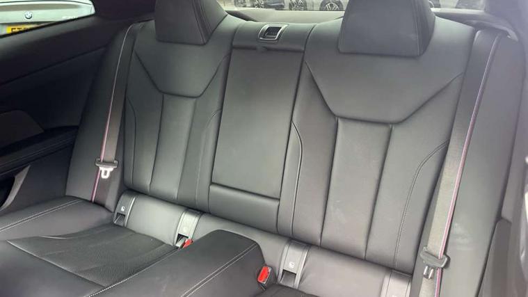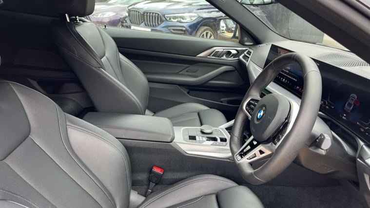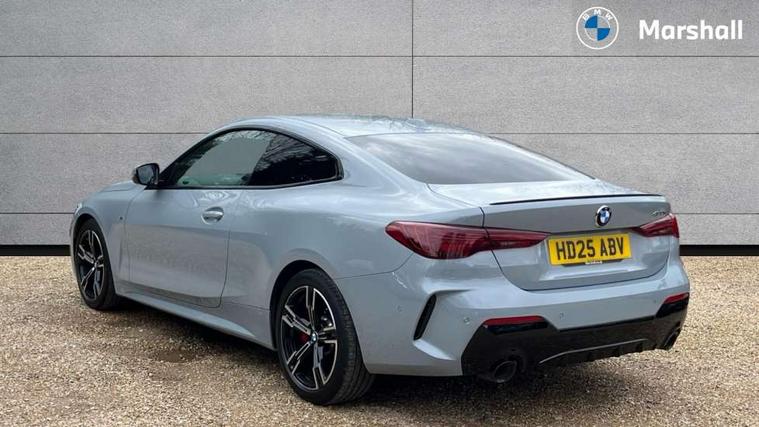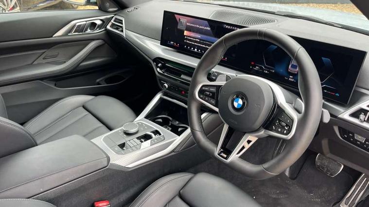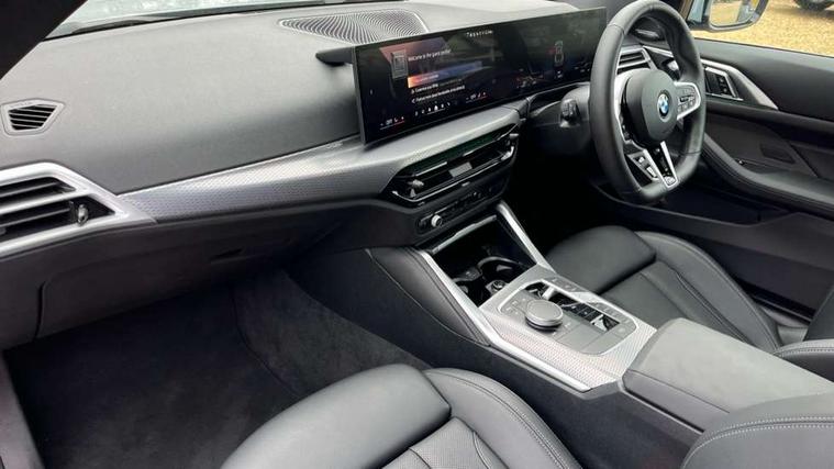 Active guard plus, Attentiveness assist, Automatic start/stop function, BMW ConnectedDrive online services, BMW iDrive controller on centre console, BMW service history, BMW Teleservices, Brake pad wear indicator in front and rear, Check Control warning system for monitoring of lights and door/luggage compartment open warning, Condition based service, Electric power steering with Servotronic steering optimised at all speed ranges, Instrument cluster with speedometer with mph readout, tachometer, fuel gauge and oil temperature gauge, Integrated owners handbook, Language version English, Oil sensor for level and grade, On board computer - average speed, fuel consumption, outside temp display with acoustic warning, clock/date, service interval, odometer/trip meter, Run flat indicator, Shifting point display, Start/stop button in black, Variable sport steering, 8 speed automatic steptronic transmission with gearshift paddles, Balanced 50/50 weight distribution, Double joint spring strut front axle, Drive experience mode switch - Comfort mode, ECO PRO mode and SPORT mode, Electronic differential lock control (EDLC), Low centre of gravity, Petrol Particulate Filter, Stroke dependent dampers, DAB tuner, Personal eSim, Acoustic glazing, Automatic headlight beam throw control with load dependent regulating reaction, dynamic compensation of braking dive and acceleration squat, Automatic windscreen wipers and automatic headlight, BMW radiator grille with mesh grille, end face of the nuggets in aluminium matt and frame in chrome matt, Body colour fuel filler flap, Body colour roof fin, Bonnet and tailgate badge, Electric folding wing mirrors - Driver side electrochromic, auto anti dazzle function & front passenger side auto parking function without anti dazzle, Electric windows - front and rear, with open/close fingertip control, anti trap facility and comfort closing function all round, Follow me home headlights, Front and rear bumper system, Front apron plastic in body colour, Green tinted heat protection glazing, Illuminated bow type door handles in body colour drivers side with door lock, Interior rear view electrochromatic mirror with automatic anti dazzle function, LED 3rd brake light, LED daytime running lights, LED front fog lights, LED front indicators, Licence plate panel integrated into front bumper and tailgate, Low and high beam headlights in Bi-LED, M designation on front side panels, left and right, M Sport entry door sill strips, Model designation on right side of tailgate, One piece front bumper cover including towing eye cover in body colour, Preparation for high beam assistant, Reversing light, Side frame trim strip black matt, Two part LED tailights in L-shape with components in smoked glass, brake light, LED turn indicator and rear fog light, Visible exhaust tailpipe finisher, Visible VIN plate, Welcome lights in interior and door handle area, Widened track and increased camber values for max transverse dynamics, agility and steering precision, Windscreen washer jets concealed underneath bonnet, 12V power socket in front centre console, 2 front cupholder in centre console with clamping elements and matt black inlay, 2 Rear seat headrests, 2 seat bench in second row, 2 zone automatic air conditioning, 3 spoke flat bottom M sport leather multifunction steering wheel, 4 pieces lashing eyelets in luggage compartment, 40:20:40 split folding rear seat and rear centre armrest with two cupholders, Anthracite headlining, Armrest integrated in front and rear door trim + front centre console armrest, Battery in luggage compartment, BMW ID, Extended storage - Luggage compartment partition net on left side trim panel, Bag hook on both sides of the luggage compartment, Four grab handles integrated in roof lining, Front and rear door pockets, Front footwell lights, Heated driver and front passenger seats, Height adjustable front headrests, Illuminated armrest storage compartment, Illuminated glove compartment with separate small compartment, Interior light and front reading light, Luggage compartment light, Single front passenger seat, Steering column adjustment - Infinitely variable in height and length, Sunvisors with illuminated vanity mirrors and ticket pocket, Through load system, Toolkit located in luggage compartment, Velour front floor mats, Ambient lighting pack - 4 Series, BMW Live Cockpit Plus pack - 4 Series, Connected professional package - 4 Series, M High gloss shadowline exterior trim pack - 4 Series, M sport exterior styling pack - 4 Series, Park assist pack - 4 Series, 2 x 3-point rear seatbelts, BMW emergency call, Brake energy regeneration, Braking pre-tensioning, Child seat ISOFIX attachment for the two outer rear seats, Crash sensor activating of airbags, Unlocking doors, hazard warning lights, interior light, safety battery terminal, Driver and front passenger side airbags, integrated in the door side seat backrest bolsters for all seat variants, Driver/Front Passenger airbags, Dry braking, Dynamic brake control, Dynamic stability control + (DSC+) - Anti-lock Braking System (ABS) with brake assist and cornering brake control + Automatic Stability Control (ASC), Dynamic Traction Control - DTC, Electric parking brake including automatic hold function and automatic release of the parking brake when driving off, Front and rear ventilated brake disc, Front passenger manual airbag deactivation, Head airbags for all 4 outer seats, Hill start assistant, Seat belt security check for driver and front passenger, Seat belt with belt stopper, pyrotechnic belt tensioners and belt force limiters, Seat occupancy detection for driver and passenger side, Side impact protection, Tyre pressure sensors, Warning triangle and first aid kit, Alarm system for monitoring doors, engine compartment, interior movement sensor, tilt sensor and siren with emergency power supply, Centre lock switch - Button in driver's side front door, complete locking of car, Closing system with centre locking for all 