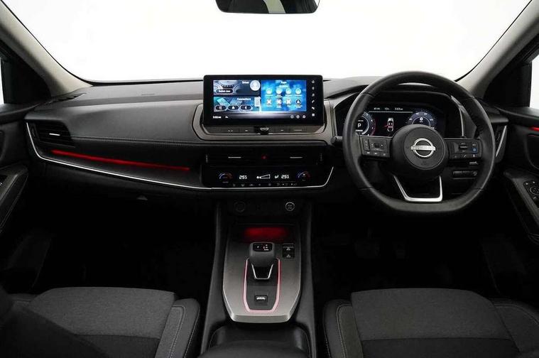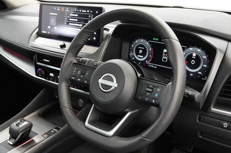 360 degree Intelligent around view monitor with moving object detection, Blind spot intervention, Blind spot warning, Drive assist custom mode, Drive modes (sport, normal, eco), Driver drowsiness and attention warning, Electric speed sensitive power steering, Emergency and breakdown call, Emergency lane keep assist, Emergency Stop Signal (ESS), Engine start/stop button, Event data recorder, Front and rear parking sensors, Full Digital 12.3" TFT Digital Combimeter, Google virtual personal assistance, Idle stop/start system, In-car WIFI hotspot, Intelligent Cruise control (ICC), Intelligent forward collision warning, Intelligent speed assist, Lane departure warning system, Nissan connect 12.3 inch touchscreen infotainment system, Nissan connect navigation with google maps, Nissan connect services 2.0 (Google Automotive System), Outside temperature sensor, Rear cross traffic alert, Reversing detection, Traffic jam pilot, Wireless Apple CarPlay/Android Auto, Wireless charging pad, Limited slip differential, 2 front USB-C ports, 2 rear USB-C ports, 6 speakers, AM/FM audio system with DAB, Bluetooth audio streaming, Auto rear wiper when reversing, Body colour mirror caps, Body coloured door handles, Bodyside mouldings, Chrome side window finisher, Electric auto folding door mirrors, Electrically adjustable and heated door mirrors with LED turn indicator, Follow me home headlights, High beam assist, Intelligent auto headlights, LED 3rd brake light, LED daytime running lights, LED Headlights, LED rear lights, One touch front and rear electric windows with remote opening and closing, One touch passenger window, Partially body coloured bumpers, Rear privacy glass, Rear roof spoiler, Rear side wing doors, Rear styling plate, Shark fin antenna, Splash free rain sensing wipers, Super UV and infrared cut glass, Three blink turn signal, 3 bench rear seats in 2nd row, 3 rear headrests, 60/40 split folding rear seat bench, Chrome interior door handles, Cloth upholstery, Dark headlining, Driver seat back pocket, Dual zone automatic climate control with pollen filter, Front door with bottle holders, Height adjustable front headrests, Luggage board system, Luggage space lighting, Multifunction steering wheel, Passenger seat back pocket, Rear door bottle holders, RGB ambient light (Full area coverage), Single front passenger seat, Smooth leather steering wheel, Steering wheel gearshift paddles, Tilt/telescopic adjustable steering wheel, Two rear isofix child seat anchorage points with top tether, 3x3 point rear seatbelt pretensioners + load limiters, Autonomous emergency braking, Child locks on rear doors, Curtain and front side, far side airbags, Driver and passenger airbags, Driver, passenger and 2nd row rear seat belt reminder, Electric handbrake with auto hold function, Front seatbelt pretensioners + load limiters, Height adjustable front seatbelts, Hill start assist, intelligent front emergency braking, Rear automatic braking, Tyre pressure monitoring system, Vehicle dynamic control, Engine immobiliser, Intelligent key with walk away lock and approach unlock functions, Remote central door locking with deadlocking, Thatcham alarm, 18" Diamond cut alloy wheels, Tyre puncture repair kit,