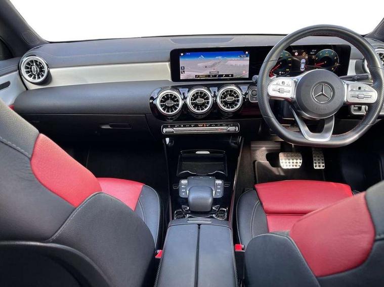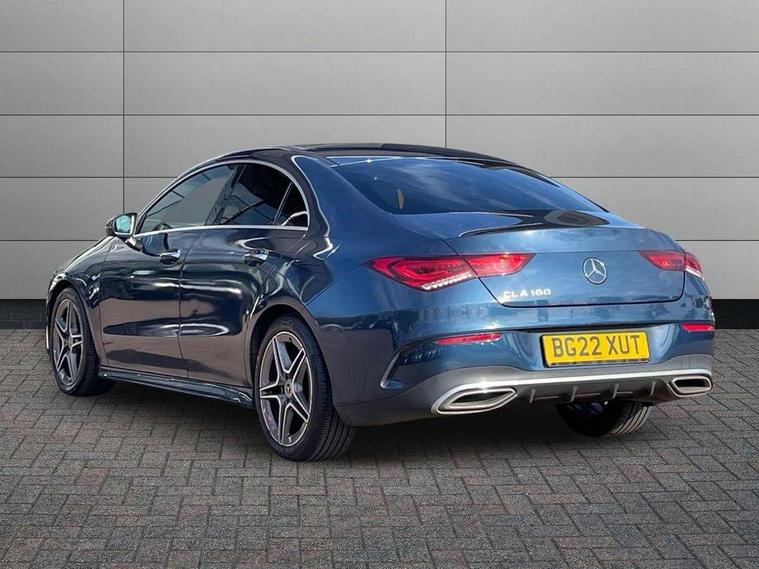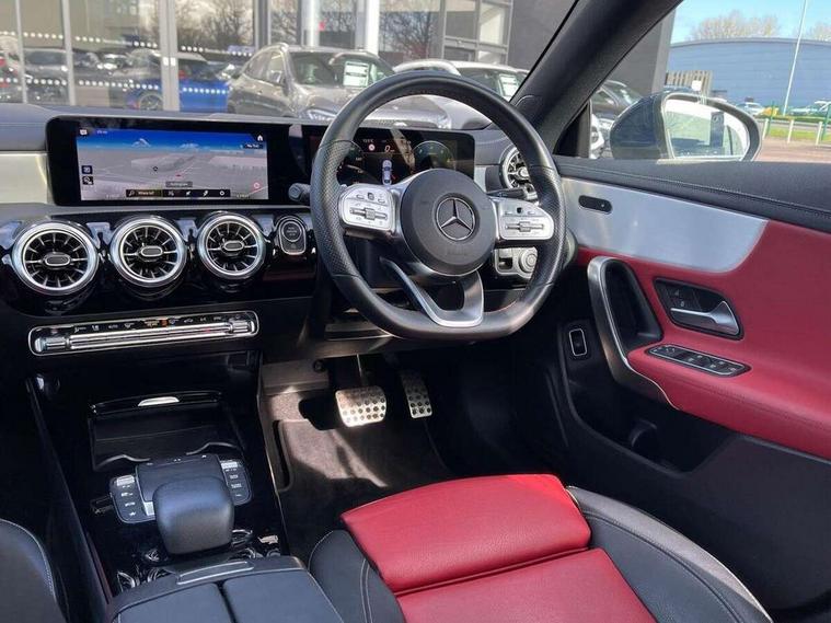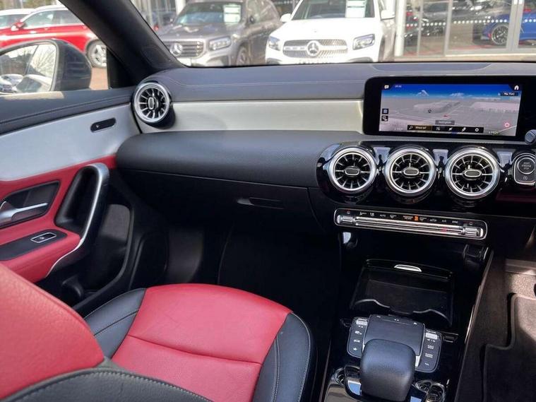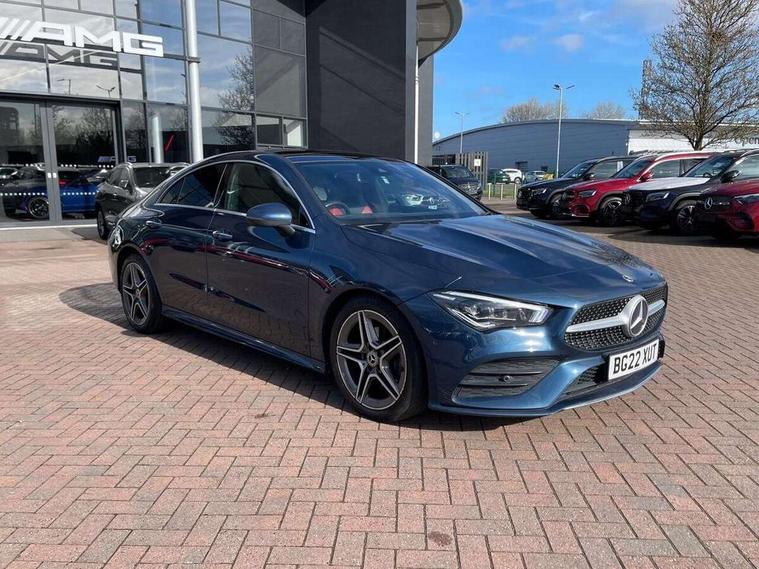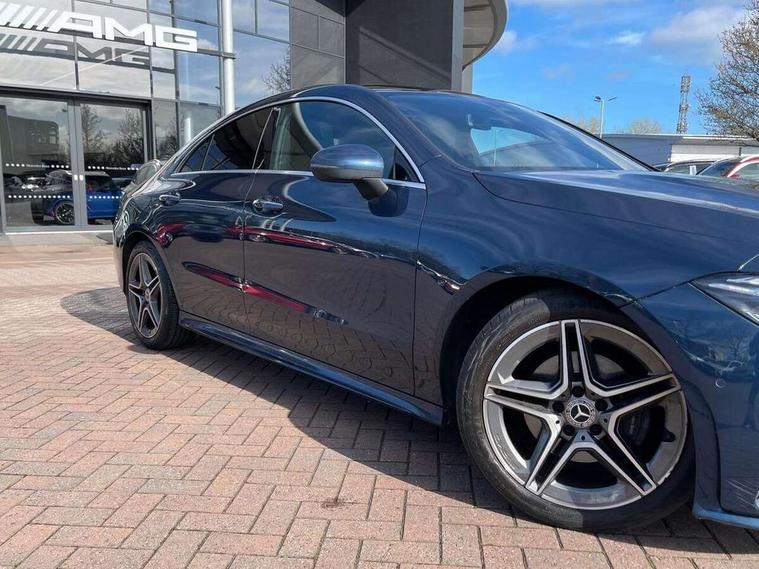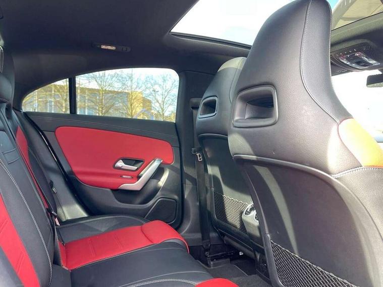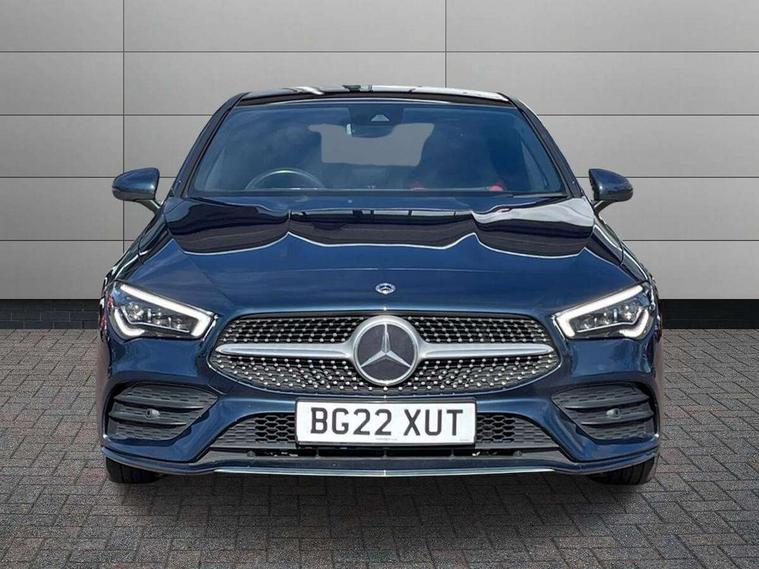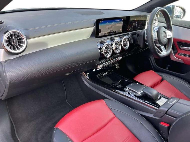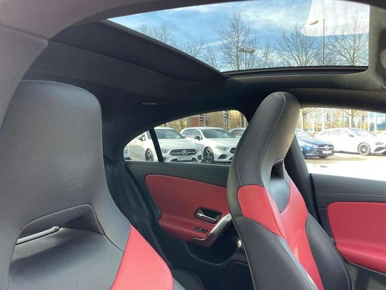 10.25 inch Instrument display with digital cockpit, 10.25 inch touchscreen central media display, Attention assist - Monitors steering behaviour and long journey fatigue, Bluetooth connection, Car wash mode, DYNAMIC SELECT with a choice of driving modes (ECO, Comfort, Sport and Individual), ECO start/stop function, Fluid level warning indicator for fuel, oil, coolant and washer fluid, Hard-disk navigation, Hey Mercedes Voice activation, Lamp failure indicator, Mercedes me connect including emergency call system, accident recovery, breakdown and maintenance management, Mercedes me remote services, Outside temperature gauge, Owners manual and service booklet in English, Pre-installation of private car share, Preinstallation for Mercedes Benz link, Radio aerial integrated into front and rear windshields, Service indicator (ASSYST), Smartphone integration with Apple CarPlay and Android auto, Traffic sign assist, Trip computer in multifunction display with current consumption indicator, 7G-DCT 7 speed automatic transmission, Lowered comfort suspension, Rear axle multi-link, DAB digital radio tuner, MBUX multimedia system with DAB digital radio and touchpad including satellite navigation, Mid-range sound system, USB (type C) ports (2) in stowage compartment and 1 in front of centre console, Adaptive brake lights, AMG body styling with AMG front apron and rear apron and visible exhaust tailpipe in chrome trim elements, AMG bodystyling side skirts, Auto headlights, Body colour bumpers, Body colour door handles, Chrome beltline strips, Chrome weather strip, Diamond radiator grille pins in chrome with silver painted louvres and chrome insert, Electric panoramic sliding sunroof, Electric windows, Electrically adjustable and heated door mirrors with integrated LED indicators, Exhaust system with 2 Visible tailpipe trim elements and rear apron with trim in chrome, Headlamp assist automatic headlamp activation, Heated glass rear windscreen + timer control, High level LED third brake light, Integrated LED daytime running lights, Interior mirror with black reading lamps and frameless, LED tail lamp, Multibeam LED headlamps with adaptive highbeam assist plus, Privacy glass with dark tinting on rear side windows and rear window, Rain sensing windscreen wipers with two sensitivity settings, Rear boot, Rear fog lamp, Rear side wing doors, Window line trim strip in chrome, 3 seat bench in 2nd row, 3 spoke flattened bottom nappa leather multifunction steering wheel with perforated leather in grip area, 40:20:40 split folding rear seat backrests, Air conditioning - Two zone thermotronic luxury automatic climate control with display, Air vents with surround in silver chrome, Automatic child seat recognition sensor, Black roof lining, Brushed stainless steel sports pedals with rubber studs, Floor mats with stitched AMG lettering, Front centre armrest with stowage, Galvanished gear shift paddles on steering wheel, Heated front seats, Illuminated front door sills with changeable cover, Illuminated glove compartment stowage, Interior lighting - 64 colour Ambient lighting, Luggage net on driver/front passenger seat backrest, Manually height and reach adjustable steering column, Rear armrest with two integral cup holders for drinks, Rear head restraints, Single front passenger seat, Sport seats with fixed head restraints, Stowage compartment in centre console with retractable cover, Sunvisors with illuminated vanity mirrors, Touchpad on center console, Twin front cupholders, Two outer rear seat isofix and top tether child seat fixing points, Keyless go pack - CLA, Light and sight pack - CLA, Mirror pack - CLA, Parking package - CLA, Seat comfort pack - CLA, Active bonnet pedestrain safety measure which detects an impact and raises bonnet by 65mm, Adaptive brake assist with hold function and hill start assist, Anti-lock braking system (ABS), Black seat belts, Bonnet with power domes, Brake pad wear warning indicator, Childproof locks manually operated for rear doors and electrically operated for rear power windows, Crash responsive emergency lighting, Driver and front passenger head and sidebags, Driver and front passenger windowbags, Drivers knee airbag, Dual stage driver and front passenger airbags, Electric parking brake, Electronic stability programme with acceleration skid control, ESP curve dynamic assist, Front and rear seatbelt reminder, Front passenger seat occupancy sensor, Three point rear seat belts, Tyre pressure monitoring system, Warning triangle and first aid kit, Remote central locking and crash sensor with emergency opening function, Urban guard vehicle protection system with immobiliser and interior protection, Light aluminium with longitudinal grain interior trim, 18" 5 twin spoke design alloy wheels painted in titanium grey with high sheen finish, Summer tyres, Tirefit tyre sealant kit,