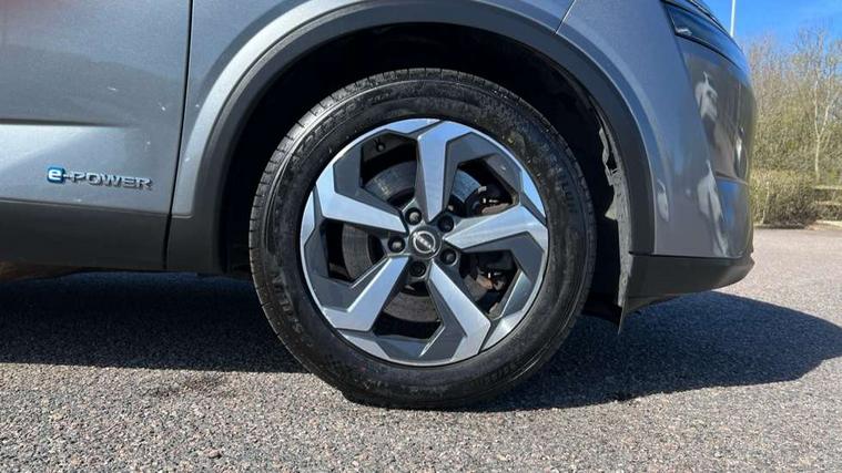 Blind spot warning, Drive modes (sport, normal, eco), e-Pedal step, Electric speed sensitive power steering, Emergency and breakdown call, Front and rear parking sensors, Full Digital 12.3" TFT Digital Combimeter, Google maps services - search, weather, 3D maps and Google street view, Idle stop/start system, Intelligent around view monitor, Intelligent Cruise control (ICC), Intelligent driver alert system, Intelligent forward collision warning, Intelligent lane intervention, Lane departure prevention, Lane departure warning system, Maximum speed limiter, Moving object detection, Nissan connect 12.3 inch touchscreen infotainment system, Nissan connect navigation, Push button starter, Rear cross traffic alert, Rear view camera, Remote control services - door locks, lights, horn and car locator, Telematics - notifications and connectivity services, TomTom live traffic services, Traffic sign recognition with legal speed adjustment, Trip computer, Virtual personal assistant and firmware over the air capability, Wireless Apple CarPlay and wired Android Auto, 6 speakers, AM/FM audio system with DAB, Bluetooth audio streaming, Front USB connections (Type-A and Type-C), Rear USB charging only ports (Type-A and Type-C), Auto dimming rear view mirror, Auto rear wiper when reversing, Automatic hazard signal with emergency stop signal, Body colour mirror caps, Body coloured door handles, Bodyside mouldings, Chrome side window finisher, Door handle with button, e-POWER badging, Electric auto folding door mirrors, Electrically adjustable and heated door mirrors with LED turn indicator, Follow me home headlights, High beam assist, Intelligent auto headlights, LED 3rd brake light, LED daytime running lights, LED Headlights, LED rear lights, One touch front and rear electric windows with remote opening and closing, Partially body coloured bumpers, Privacy glass, Rear bumper with graphite insert, Rear reversing light (bulb lighting), Rear roof spoiler, Rear side wing doors, Rear styling plate, Shark fin antenna, Splash free rain sensing wipers, Super UV and infrared cut glass, Three blink turn signal, 12v power socket in dashboard and luggage, 2x Rear coat hooks, 3 bench rear seats in 2nd row, 3 rear headrests, 4 folding assist grip, 6-way manually adjustable driver's seat, 60/40 split folding rear seat bench, Ambient lighting around centre console, Centre console storage tray, Chrome interior door handles, Cloth monoform upholstery, Driver and front passenger sunvisors with illuminated vanity mirrors, Driver seat back pocket, Dual zone automatic climate control with pollen filter, e-POWER shifter, Front and rear door storage, Front centre console and armrest, Front cupholders x 2, Front door with bottle holders, Glovebox with light, Hard trunk cover, Height adjustable driver's seat, Height adjustable front headrests, Height adjustable passenger seat, Luggage board system, Luggage space lighting, Manually adjustable passenger (slide recline + lifter), Multifunction steering wheel, Passenger seat back pocket, Rear armrest with 2 cupholders, Rear door bottle holders, Single front passenger seat, Soft PVC kneepad, Steering wheel switches, Sunglasses holder, Tilt/telescopic adjustable steering wheel, Two rear isofix child seat anchorage points with top tether, Welcome light and console tray ambient lighting, 3x3 point rear seatbelt pretensioners + load limiters, ABS with EBD and brake assist, Active brake limited slip, Auto hold function, Child locks on rear doors, Curtain and front side, far side airbags, Driver and passenger airbags, Driver, passenger and 2nd row rear seat belt reminder, Electronic parking brake, Front seatbelt pretensioners + load limiters, Height adjustable front seatbelts, Hill start assist, Intelligent blind spot intervention, Intelligent front emergency braking with pedestrian, cyclist recognition and junction assist, Intelligent rear automatic braking, Tyre pressure monitoring system, Vehicle dynamic control, Capless fuel filler, Engine immobiliser, Intelligent Key, Remote central door locking with deadlocking, Thatcham Cat.1 alarm, Interior instrumental panel B finisher, 18" Diamond cut alloy wheels, Tyre puncture repair kit,
