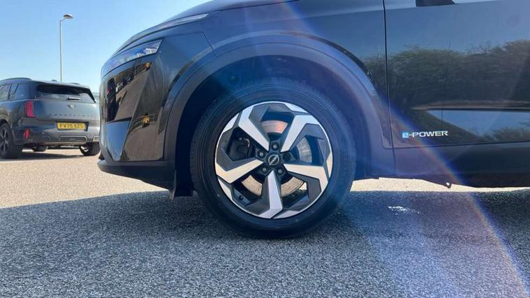 Blind spot warning, Drive modes (sport, normal, eco), e-Pedal step, Electric speed sensitive power steering, Emergency and breakdown call, Front and rear parking sensors, Full Digital 12.3" TFT Digital Combimeter, Google maps services - search, weather, 3D maps and Google street view, Idle stop/start system, Intelligent around view monitor, Intelligent Cruise control (ICC), Intelligent driver alert system, Intelligent forward collision warning, Intelligent lane intervention, Lane departure prevention, Lane departure warning system, Maximum speed limiter, Moving object detection, Nissan connect 12.3 inch touchscreen infotainment system, Nissan connect navigation, Push button starter, Rear cross traffic alert, Rear view camera, Remote control services - door locks, lights, horn and car locator, Telematics - notifications and connectivity services, TomTom live traffic services, Traffic sign recognition with legal speed adjustment, Trip computer, Virtual personal assistant and firmware over the air capability, Wireless Apple CarPlay and wired Android Auto, 6 speakers, AM/FM audio system with DAB, Bluetooth audio streaming, Front USB connections (Type-A and Type-C), Rear USB charging only ports (Type-A and Type-C), Auto dimming rear view mirror, Auto rear wiper when reversing, Automatic hazard signal with emergency stop signal, Body colour mirror caps, Body coloured door handles, Bodyside mouldings, Chrome side window finisher, Door handle with button, e-POWER badging, Electric auto folding door mirrors, Electrically adjustable and heated door mirrors with LED turn indicator, Follow me home headlights, High beam assist, Intelligent auto headlights, LED 3rd brake light, LED daytime running lights, LED Headlights, LED rear lights, One touch front and rear electric windows with remote opening and closing, Partially body coloured bumpers, Privacy glass, Rear bumper with graphite insert, Rear reversing light (bulb lighting), Rear roof spoiler, Rear side wing doors, Rear styling plate, Shark fin antenna, Splash free rain sensing wipers, Super UV and infrared cut glass, Three blink turn signal, 12v power socket in dashboard and luggage, 2x Rear coat hooks, 3 bench rear seats in 2nd row, 3 rear headrests, 4 folding assist grip, 6-way manually adjustable driver's seat, 60/40 split folding rear seat bench, Ambient lighting around centre console, Centre console storage tray, Chrome interior door handles, Cloth monoform upholstery, Driver and front passenger sunvisors with illuminated vanity mirrors, Driver seat back pocket, Dual zone automatic climate control with pollen filter, e-POWER shifter, Front and rear door storage, Front centre console and armrest, Front cupholders x 2, Front door with bottle holders, Glovebox with light, Hard trunk cover, Height adjustable driver's seat, Height adjustable front headrests, Height adjustable passenger seat, Luggage board system, Luggage space lighting, Manually adjustable passenger (slide recline + lifter), Multifunction steering wheel, Passenger seat back pocket, Rear armrest with 2 cupholders, Rear door bottle holders, Single front passenger seat, Soft PVC kneepad, Steering wheel switches, Sunglasses holder, Tilt/telescopic adjustable steering wheel, Two rear isofix child seat anchorage points with top tether, Welcome light and console tray ambient lighting, 3x3 point rear seatbelt pretensioners + load limiters, ABS with EBD and brake assist, Active brake limited slip, Auto hold function, Child locks on rear doors, Curtain and front side, far side airbags, Driver and passenger airbags, Driver, passenger and 2nd row rear seat belt reminder, Electronic parking brake, Front seatbelt pretensioners + load limiters, Height adjustable front seatbelts, Hill start assist, Intelligent blind spot intervention, Intelligent front emergency braking with pedestrian, cyclist recognition and junction assist, Intelligent rear automatic braking, Tyre pressure monitoring system, Vehicle dynamic control, Capless fuel filler, Engine immobiliser, Intelligent Key, Remote central door locking with deadlocking, Thatcham Cat.1 alarm, Interior instrumental panel B finisher, 18" Diamond cut alloy wheels, Tyre puncture repair kit,