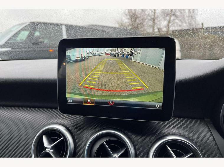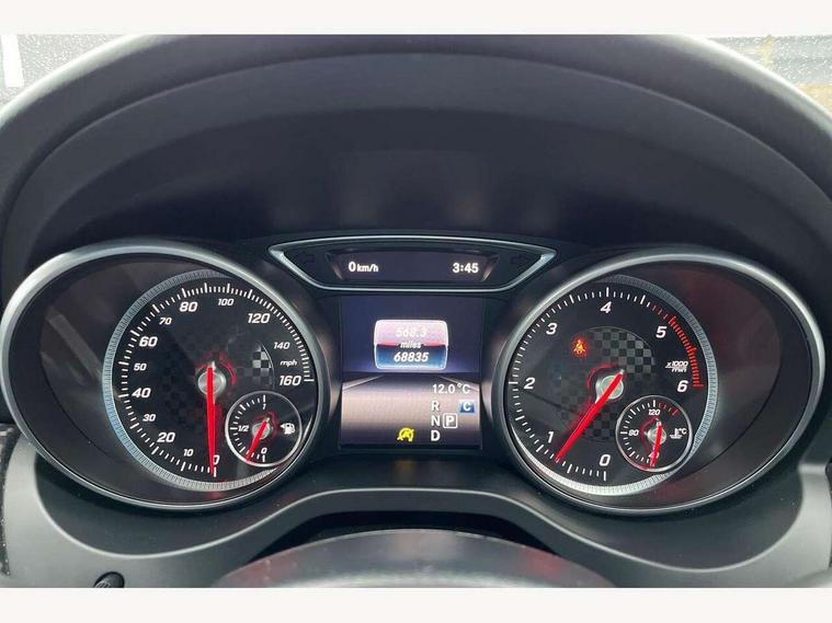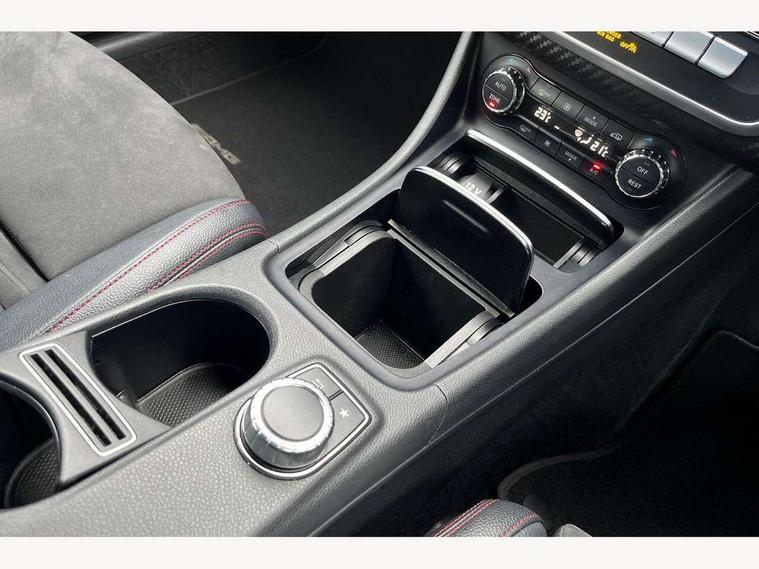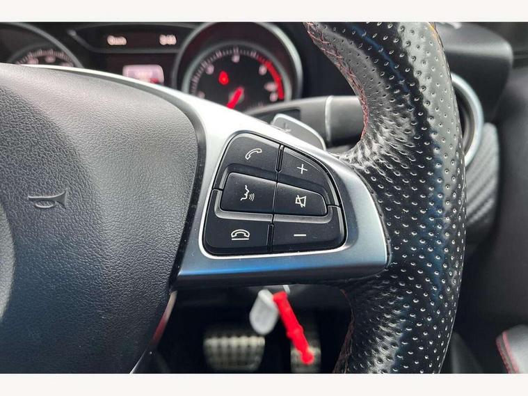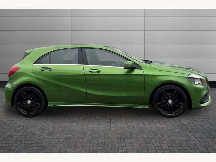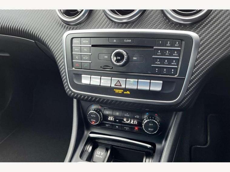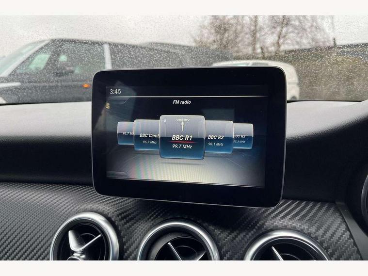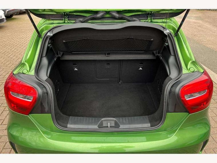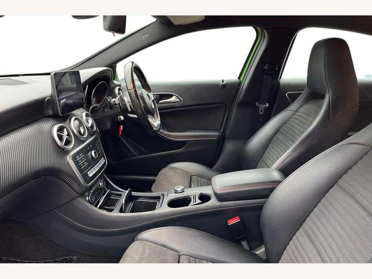 8" colour display screen, Attention assist, Bluetooth interface for hands free telephone, Bulb failure indicator, Collision prevention assist plus, DYNAMIC SELECT with a choice of driving modes (ECO, Comfort, Sport, Sport+ and Individual), External temperature gauge, Low fluid warning light, Reversing camera, Service indicator (ASSYST PLUS), Smartphone integration with Apple CarPlay, Speed dependent sports steering system, Trip computer, Lowered suspension, 6 speakers, Media interface, Mercedes Audio 20 radio/single CD + telephone keypad, USB port, Adaptive brake lights, AMG body styling, Body colour bumpers, Body colour door handles, Body colour side skirt, Daytime running lights, Diamond radiator grille with chrome pins and silver louvre + chrome insert, Electric adjustable heated door mirrors, Electric front windows, Electric rear windows, Headlamp assist, Heated rear window with timer, Rain sensor windscreen wipers, Rear wiper, Twin Trapezoidal tailpipes, 1/3 to 2/3 split folding rear seats, 12V socket, 3 Spoke sports multifunction flat bottomed leather steering wheel, Ambient lighting, AMG floor mats with red stitching, Artico man-made leather/Dinamica upholstery, Auto Mercedes-Benz child seat recognition sensor, Black headlining, Brushed stainless steel sports pedals, Dual zone automatic climate control, Footwell lights, Front and rear reading lights, Front centre armrest with storage compartment, Front head restraints, Front sport seats, Gearshift paddles on steering wheel, Height adjustable front seats, Height/reach adjustable steering column, Illuminated door sills, Illuminated glovebox, Illuminated storage compartment, Isofix rear child seat preparation, Load securing rings in luggage compartment, Luggage compartment cover, Luggage net under rear parcel shelf, Parcel net in front passenger footwell, Rear head restraints, Storage compartment under load area floor, Sunvisors with illuminated vanity mirrors, Twin front cupholders, Seat comfort pack - A Class, Stowage Pack - A Class, 3 rear 3 point seatbelts, ABS with Brake Assist, Active bonnet, Adaptive brake system, Brake calipers with Mercedes-Benz lettering + perforated brake discs, Child proof door locks, Crash responsive emergency lighting, Drivers knee airbag, Dual stage driver/passenger airbags, Electronic parking brake, ESP with ASR, Front and rear seatbelt reminder, Front head airbags, Front passenger seat occupancy sensor, Front side airbags, Hill start assist, Tyre pressure monitoring system, Warning triangle and first aid kit, Window airbags, Alarm system/interior protection/immobiliser, Keyless ignition, Remote central locking, Carbon effect trim, Chrome air vent surrounds, Tirefit sealant with electric air pump,