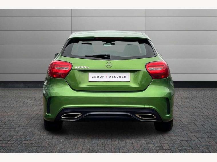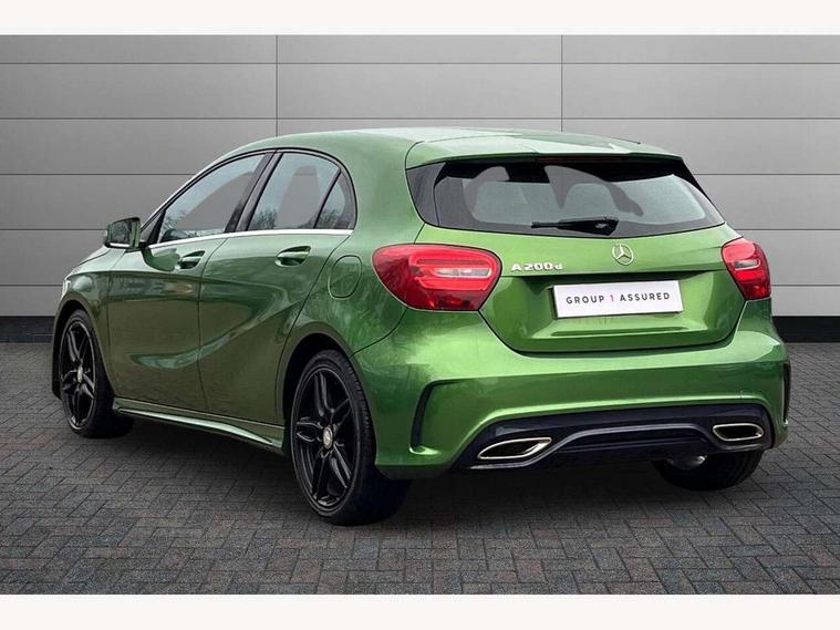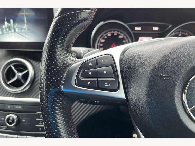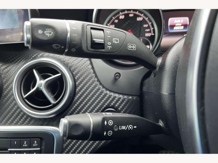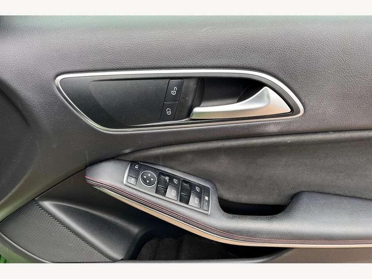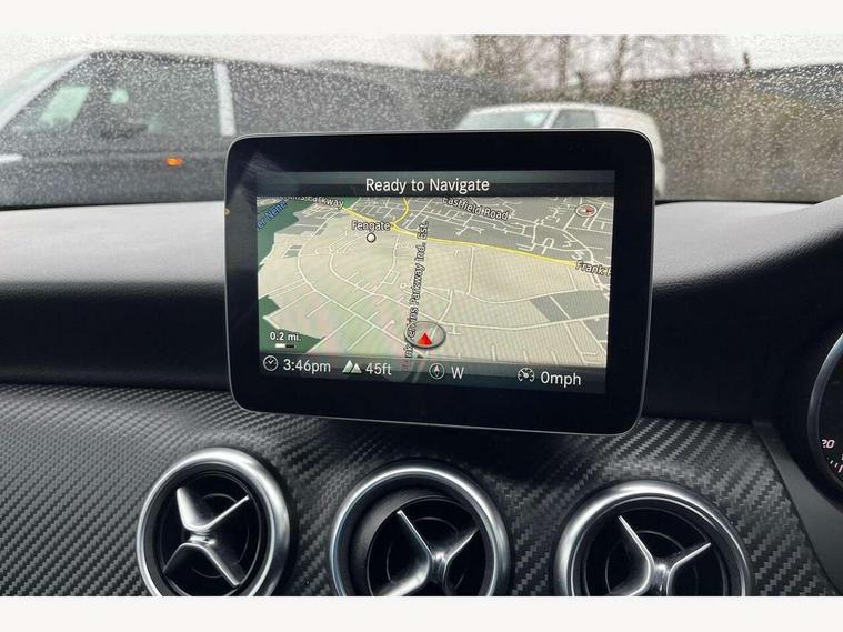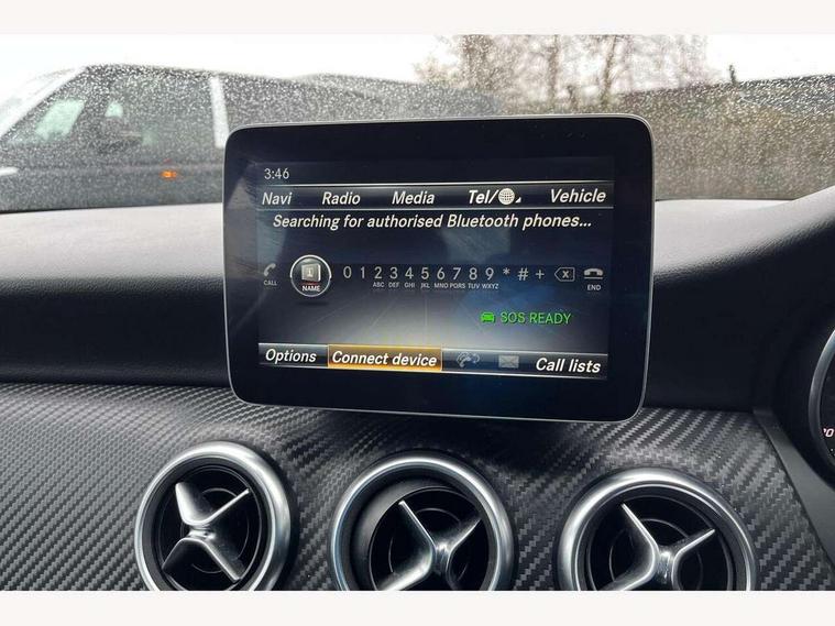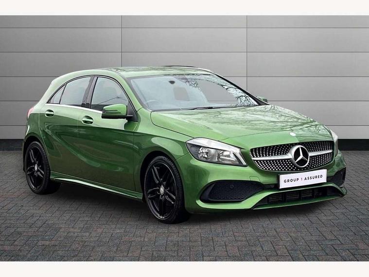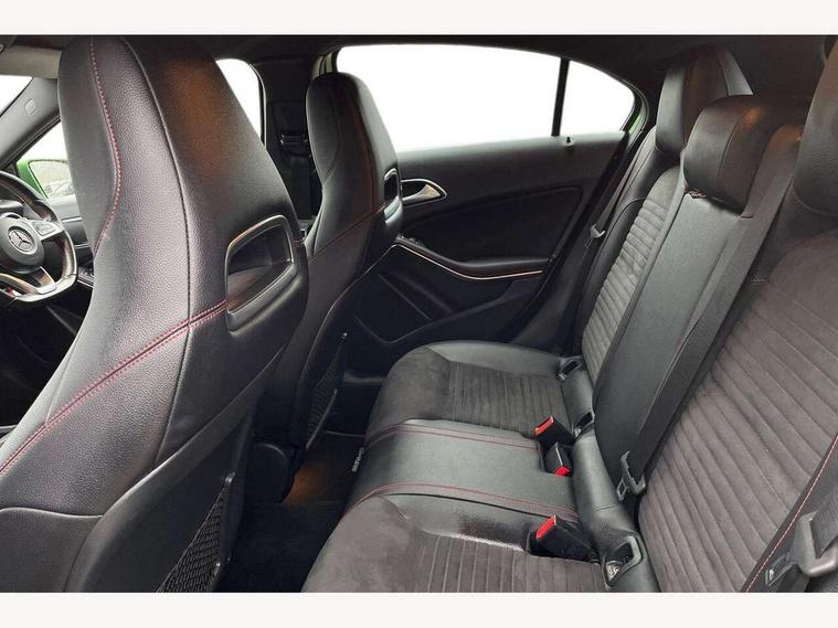 8" colour display screen, Attention assist, Bluetooth interface for hands free telephone, Bulb failure indicator, Collision prevention assist plus, DYNAMIC SELECT with a choice of driving modes (ECO, Comfort, Sport, Sport+ and Individual), External temperature gauge, Low fluid warning light, Reversing camera, Service indicator (ASSYST PLUS), Smartphone integration with Apple CarPlay, Speed dependent sports steering system, Trip computer, Lowered suspension, 6 speakers, Media interface, Mercedes Audio 20 radio/single CD + telephone keypad, USB port, Adaptive brake lights, AMG body styling, Body colour bumpers, Body colour door handles, Body colour side skirt, Daytime running lights, Diamond radiator grille with chrome pins and silver louvre + chrome insert, Electric adjustable heated door mirrors, Electric front windows, Electric rear windows, Headlamp assist, Heated rear window with timer, Rain sensor windscreen wipers, Rear wiper, Twin Trapezoidal tailpipes, 1/3 to 2/3 split folding rear seats, 12V socket, 3 Spoke sports multifunction flat bottomed leather steering wheel, Ambient lighting, AMG floor mats with red stitching, Artico man-made leather/Dinamica upholstery, Auto Mercedes-Benz child seat recognition sensor, Black headlining, Brushed stainless steel sports pedals, Dual zone automatic climate control, Footwell lights, Front and rear reading lights, Front centre armrest with storage compartment, Front head restraints, Front sport seats, Gearshift paddles on steering wheel, Height adjustable front seats, Height/reach adjustable steering column, Illuminated door sills, Illuminated glovebox, Illuminated storage compartment, Isofix rear child seat preparation, Load securing rings in luggage compartment, Luggage compartment cover, Luggage net under rear parcel shelf, Parcel net in front passenger footwell, Rear head restraints, Storage compartment under load area floor, Sunvisors with illuminated vanity mirrors, Twin front cupholders, Seat comfort pack - A Class, Stowage Pack - A Class, 3 rear 3 point seatbelts, ABS with Brake Assist, Active bonnet, Adaptive brake system, Brake calipers with Mercedes-Benz lettering + perforated brake discs, Child proof door locks, Crash responsive emergency lighting, Drivers knee airbag, Dual stage driver/passenger airbags, Electronic parking brake, ESP with ASR, Front and rear seatbelt reminder, Front head airbags, Front passenger seat occupancy sensor, Front side airbags, Hill start assist, Tyre pressure monitoring system, Warning triangle and first aid kit, Window airbags, Alarm system/interior protection/immobiliser, Keyless ignition, Remote central locking, Carbon effect trim, Chrome air vent surrounds, Tirefit sealant with electric air pump,