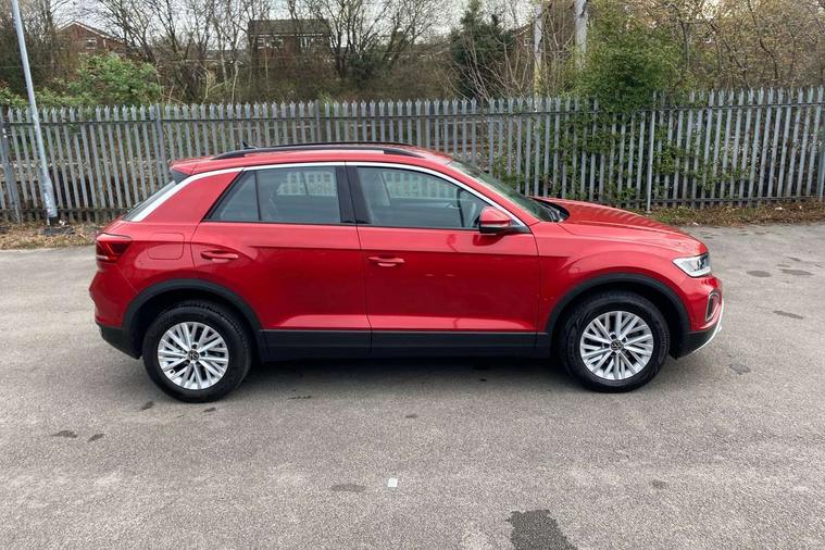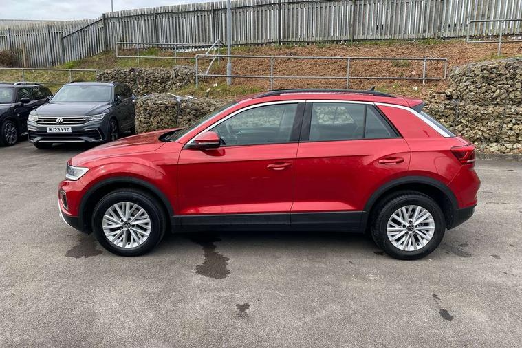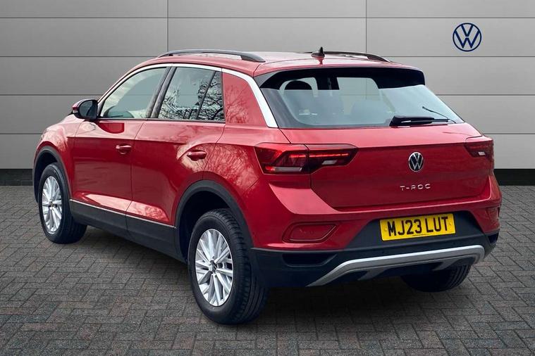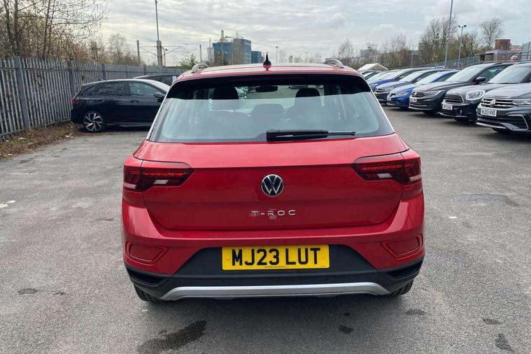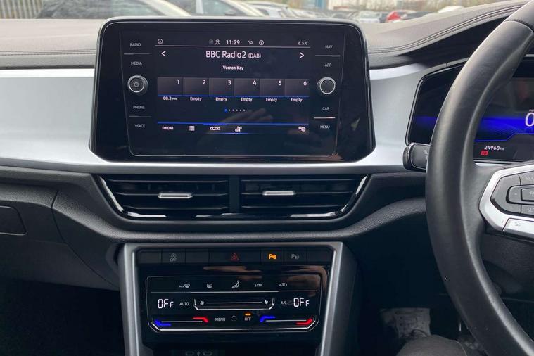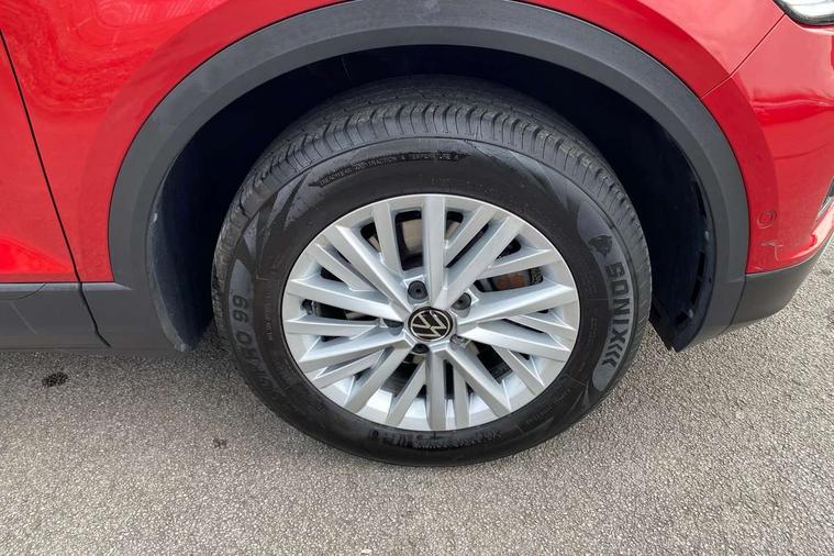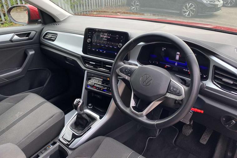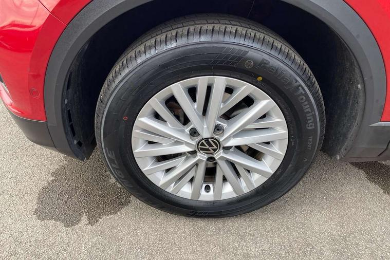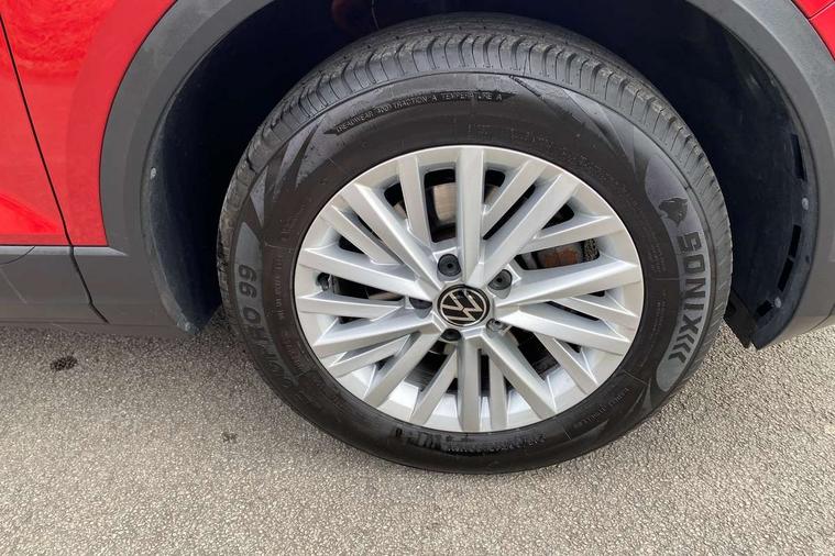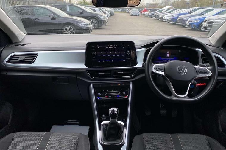Bluetooth mobile phone interface, Driver alert system with fatigue detection, Driver tips and journey analysis, Emergency call service, Lane keeping system Lane Assist, Modified key software - reduce switch off time for key status change to Long no motion, Online services, Park assist including front and rear parking sensors, Power assisted speed sensitive steering, Service interval indicator, Tailgate/trunk lid release from outside, Think blue trainer driver tips and journey analysis, Warning sound and light for front seatbelts unfastened, Wireless app connect, Battery regeneration during braking, Front shock absorption, Rear shock absorption chassis with increased ride height, Start/stop function with battery regeneration, DAB Digital radio, Diversity antenna for FM reception, Front and rear 6 speakers, Music playback - MP3, WMA and AAC files, Premium USB cable in choice of either Apple or Android smartphone compatibility, SD card slot, Simultaneous pairing of 2 compatible mobile devices, Title and cover art display, We Connect and We Connect Plus functionality, 3rd brake light, Auto dimming interior rear view mirror, Automatic hazard lights activation under emergency braking, Automatic headlight control with LED separate daytime running lights with coming/leaving home function, Black roof rails, Body coloured bumpers and radiator grille with chrome trim and front fog lamps with chrome bezel, Body coloured exterior mirror housings and door handles, Extended roof spoiler, Exterior mirrors aspherical on driver side, convex on front passenger side, External USB type C socket and charging sockets, Front windscreen wiper with intermittent wipe and 4 position delay, Heated rear window, LED Headlights, LED rear combination lamps, LED rear number plate lights, LED tail lamp rear comination lamps, Power windows with comfort operation and circuit breaker, Rain sensor, Rear exhaust tailpipe, Rear fog light on one side and reversing lights on both sides, Rear side wing doors, Rear wash/wipe with intermittent wipe setting, Remote electrically foldable door mirrors, puddle lights and reverse activated passenger's door mirror, 12V power socket in centre console, 3 rear head restraints, 3 seat bench in 2nd row, 4 load lashing points in luggage compartment, Air care climatronic air conditoning system with active combination filter and 2-zone temperature control, Ambient lighting with mirror logo projection, Cloth upholstery, Door and side trim panel in cloth, Drawer under drivers seat, Driver/front passenger seat height adjustment, Front centre armrest, Front comfort sports seats, Front cupholders x 2, Front reading light, Instrument lighting, white adjustable panel illumination, Interior light delay, Isofix child seat preparation, Leather gearshift handle, Load-through provision with cup holder when folded down ('Unsplit rear seat bench, split folding backrest, with centre armrest), Luggage compartment lighting, Lumbar support for driver's and front passengers seat, Non-folding front passenger seat backrest, Single front passenger seat, Storage compartment in left and right luggage area, Storage compartment in rear doors, Storage compartments in driver and front passenger doors, Sunvisors with illuminated vanity mirrors, Variable boot floor, height adjustable and removable, Driver assistance pack without proactive passenger protection - T-Roc, 3 point height adj front seatbelts + pretensioners, 3 point seatbelts in outer rear with ECE label, ABS, Child locks on rear doors, Driver and front passenger airbag with front passenger airbag deactivation, Driver and front passenger safety-optimised head restraints, Drivers seatbelt reminder, Electronic parking brake, Electronic Stability Control (ESC) inc EDL (Electronic Differential Lock) and ASR (Traction Control), Front and rear passengers curtain airbag system including front side airbags, Front assist with city emergency braking and pedestrian monitoring, Front disc brakes, Front seat side impact airbags, Hill start assist, Predictive pedestrian protection, Rear disc brakes, Single tone horn, Tyre pressure loss indicator, Volkswagen roadside assistance, Alarm with interior protection, Anti-theft alarm system with interior monitoring, backup horn, and towing protection, Remote central locking with SAFELOCK, radio remote control with 2 remote control folding keys, Pewter matt decorative inserts for intrument panel, centre console and door panels at the front, Trims for alloy wheels,
