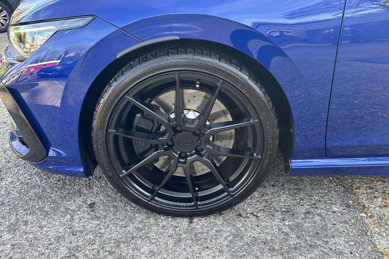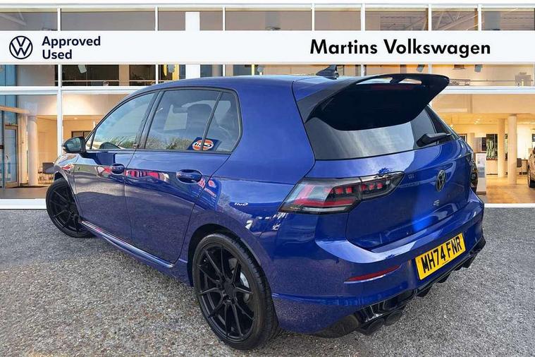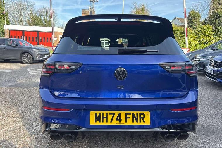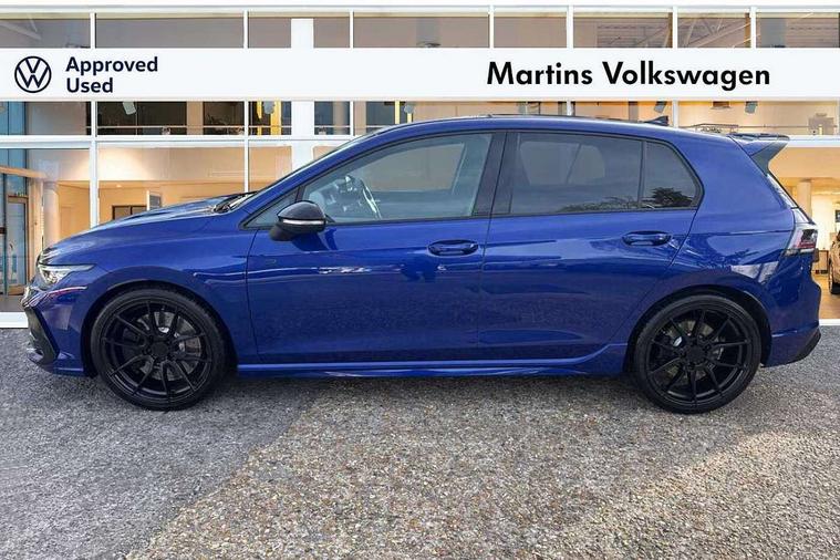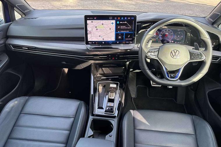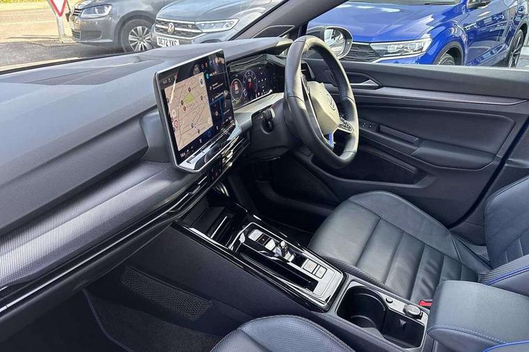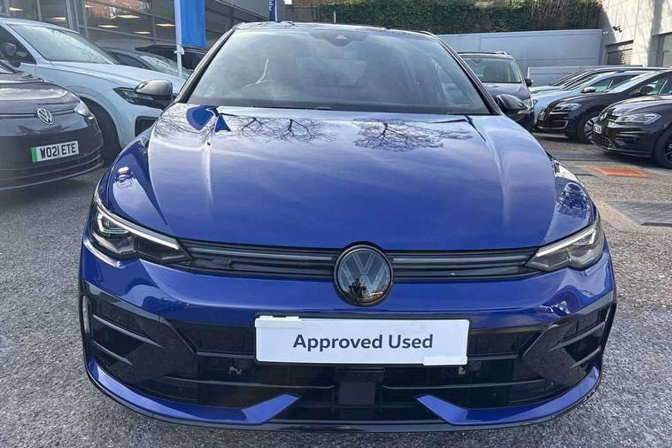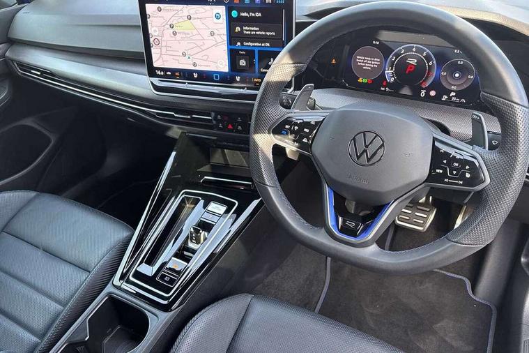 Activated carbon canister, Adaptive cruise control (ACC), Advanced driver attention and drowsiness monitor, Dynamic road sign display, E-Sim card for online connectivity, eCall emergency call system, Electronic maximum speed limit increased to 270 km/h, includes driving Modes 'drift' and 'special', larger roof spolier and GPS laptimer + G-Meter, Multi-color Digital cockpit pro, selection of different info profile possible, Multifunction front facing camera for distance control, Navigation system, Oncoming vehicle braking when turning including swerve support, Preparation for light assist system, Progressive steering, Side assist blind spot lane change system, rear traffic alert and exit warning system, Speed limiter, Speedo, rev counter, electronic odometer, trip, service interval display, exterior temperature and fuel gauge, Traffic jam assist, Voice enhancer and voice control, Warning signal and warning light for front and rear seatbelts not fastened, We connect plus preparation, We connect preparation, Wireless app connect, All wheel drive - 4Motion, Petrol Particulate Filter, Sports suspension, Start-stop system with battery regeneration (recuperation - energy recovery during braking), XDS electronic differential lock for improved traction and handling, 2 USB C ports in front, 2 USB charging sockets on the centre console in the rear charging capacity upto 45W, Comfort telephony + wireless charging, without wireless aerial connection, Digital radio reception (DAB), Diversity antenna for FM reception, Gaming platform via car app, Infotainment system with 12.9" display, Mobile phone interface with inductive charging feature, 3rd brake light, Auto dimming rear view mirror, Auto headlights, Automatic headlamp activation with Coming home and Leaving home feature, Black badge on B-pillar, Black mirror caps, Black strips on radiator grille and headlights, Body colour door handles, Darkened headlights, Darkened R Logos and VW logos in front, rear and on fender, Exhaust system with black tailpipe, Exterior ambient lighting with illuminated lighting animation and wake up/goodbye scenario, Exterior mirrors convex on the left and aspherical on the right, Front and rear electric windows, Front fog lamps and cornering light, Heat insulating windshield made of laminated glass, LED daytime running lights, LED matrix headlights with ambient light V2, advanced high beam, dynamic range contol with cornering, LED rear lamp with indicator, poor weather, R name plate, Rain sensor, Rear fog light on one side and reversing lights on both sides, Rear side wing doors, Rear tinted glass 65% light absorbing from B pillar backwards, Rear windscreen washer and wiper with interval delay, Remote electrically foldable door mirrors, puddle lights and reverse activated passenger's door mirror, Welcome light with surround lighting, 12V socket in front centre console, 12V socket in luggage compartment, 3 rear head restraints, 3 seat bench in 2nd row, 30 colour ambient lighting, illuminated center console storage compartment in front, Air care climatronic 3 Zone automatic climate control with rear air conditioning control panel, Aluminium gearshift handle, Brushed stainless steel pedals, Carpet mats, front and rear, Front centre armrest, Integrated front head restraints, ISOFIX anchors for child seats on outer rear bench seats and on front passanger seat compatible for i-Size, Luggage compartment lighting, Rear cupholder and loadthough, Single front passenger seat, Soul black instrument panel, Split folding backrest with centre armrest and unsplit rear seat bench, Storm grey roof lining, Sun visors with illuminated vanity mirrors, Driver assistance pack - Golf DSG Estate/Hatchback, R styling pack - Golf, Technology park and comfort pro package - Golf Hatchback, 3 point height adj front seatbelts + pretensioners, 3 rear three point seatbelts, ABS, Autonomous emergency braking front assist with pedestrian and cyclist monitoring, Child locks on rear doors, Disc brakes in rear incl. brake calipers in black with darkened R-logo, Driver and front passenger airbag with front passenger airbag deactivation, Electronic parking brake with auto hold, ESC (Electronic Stability Control), Extended pedestrian protection measures, Hill start assist, Two tone horn, Tyre pressure loss indicator, Volkswagen roadside assistance, Anti theft wheel bolts, Preparation for alcohol interlock, Wheel hub cover with darkened R-logo,