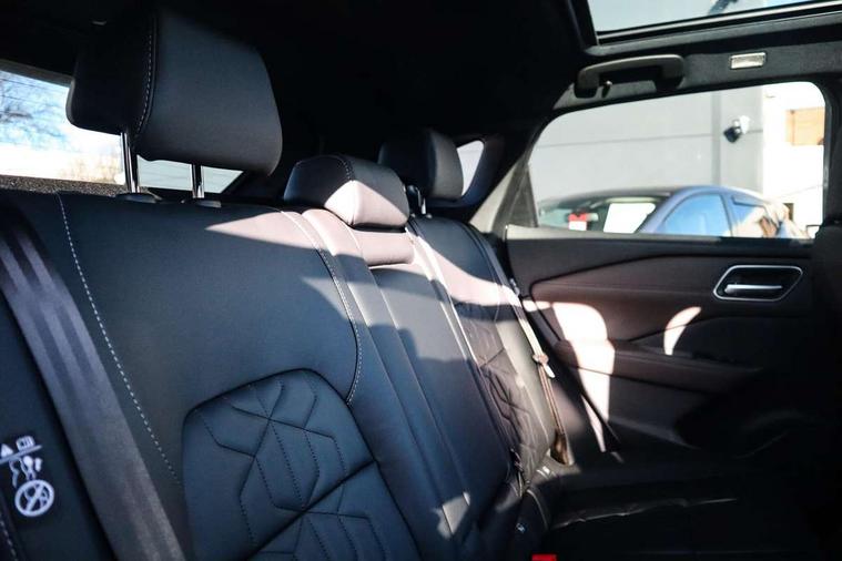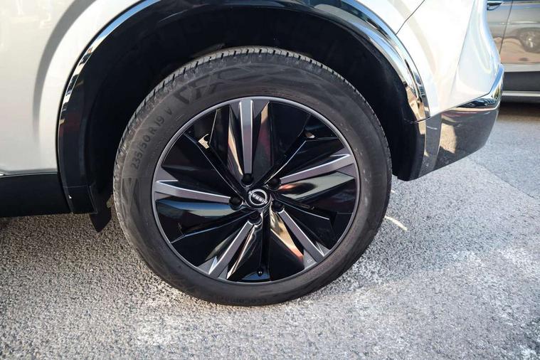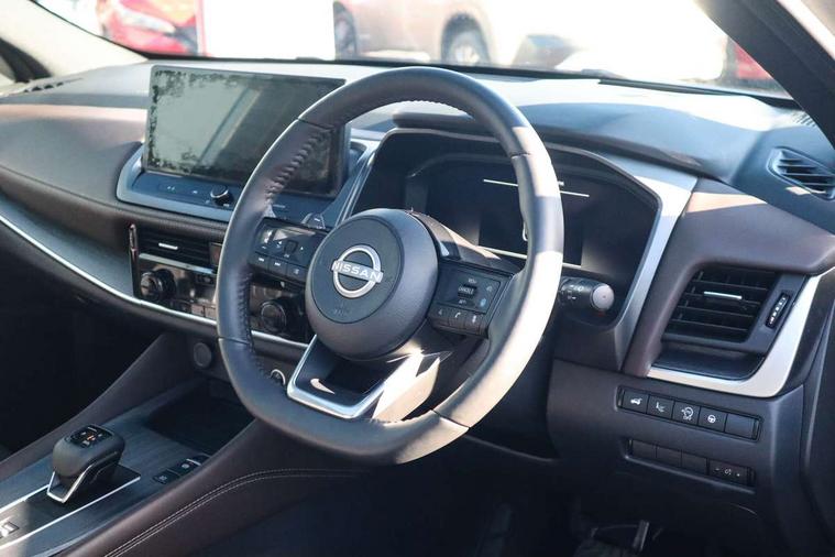 360 degree Intelligent around view monitor with moving object detection, Advanced windscreen head up display, Blind spot intervention, Blind spot warning, Drive assist custom mode, Drive modes (sport, normal, eco), Driver drowsiness and attention warning, Electric speed sensitive power steering, Emergency and breakdown call, Emergency lane keep assist, Emergency Stop Signal (ESS), Engine start/stop button, Event data recorder, Front and rear parking sensors, Full Digital 12.3" TFT Digital Combimeter, Google virtual personal assistance, Hands free power tailgate, Idle stop/start system, In-car WIFI hotspot, Intelligent Cruise control (ICC), Intelligent forward collision warning, Intelligent speed assist, Lane departure warning system, Nissan connect 12.3 inch touchscreen infotainment system, Nissan connect navigation with google maps, Nissan connect services 2.0 (Google Automotive System), Outside temperature sensor, Rear cross traffic alert, Reversing detection, Traffic jam pilot, Wireless Apple CarPlay/Android Auto, Wireless charging pad, Limited slip differential, 2 front USB-C ports, 2 rear USB-C ports, 6 speakers, AM/FM audio system with DAB, Bluetooth audio streaming, Auto dimming frameless rear view mirror, Auto rear wiper when reversing, Body colour mirror caps, Body coloured door handles, Bodyside mouldings, Chrome side window finisher, Electric auto folding door mirrors, Electrically adjustable and heated door mirrors with LED turn indicator, Follow me home headlights, Glossy black bumper inserts and fenders, High beam assist, Intelligent auto headlights, LED 3rd brake light, LED daytime running lights, LED headlights with adaptive driving beam, LED rear lights, LED sequential turn lights, One touch front and rear electric windows with remote opening and closing, One touch passenger window, Partially body coloured bumpers, Rear privacy glass, Rear roof spoiler, Rear side wing doors, Rear styling plate, Reverse tilting door mirrors, Shark fin antenna, Silver roof rails, Splash free rain sensing wipers, Super RED rear LED lights, Super UV and infrared cut glass, Thermaclear heated windscreen, 3 bench rear seats in 2nd row, 3 rear headrests, 60/40 split folding rear seat bench, Chrome interior door handles, Dark headlining, Driver seat back pocket, Dual zone automatic climate control with pollen filter, Fixed Glass roof with electric sunshade, Front door with bottle holders, Heated front seats, Heated steering wheel, Height adjustable front headrests, Luggage board system, Luggage space lighting, Multifunction steering wheel, Passenger seat back pocket, Quilted/PVC upholstery, Rear door bottle holders, RGB ambient light (Full area coverage), Single front passenger seat, Smooth leather steering wheel, Steering wheel gearshift paddles, Tilt/telescopic adjustable steering wheel, Two rear isofix child seat anchorage points with top tether, 3x3 point rear seatbelt pretensioners + load limiters, Autonomous emergency braking, Child locks on rear doors, Curtain and front side, far side airbags, Driver and passenger airbags, Driver, passenger and 2nd row rear seat belt reminder, Electric handbrake with auto hold function, Front seatbelt pretensioners + load limiters, Height adjustable front seatbelts, Hill start assist, intelligent front emergency braking, Rear automatic braking, Tyre pressure monitoring system, Vehicle dynamic control, Engine immobiliser, Intelligent key with walk away lock and approach unlock functions, Remote central door locking with deadlocking, Thatcham alarm, 19" Diamond cut alloy wheels, Tyre puncture repair kit,