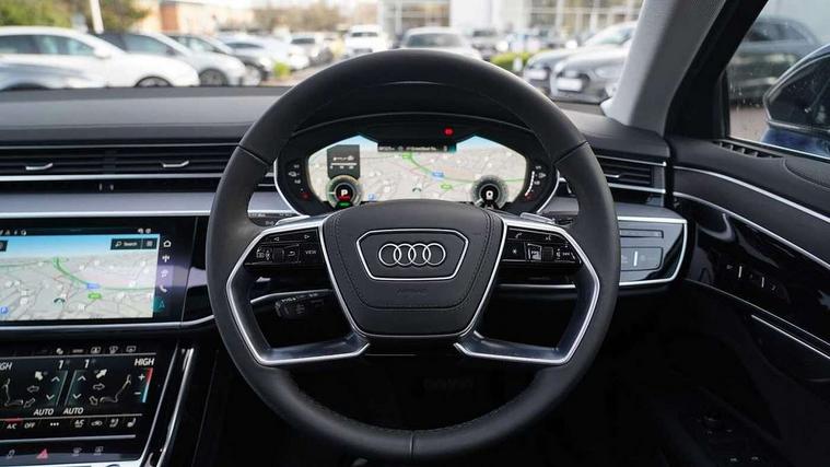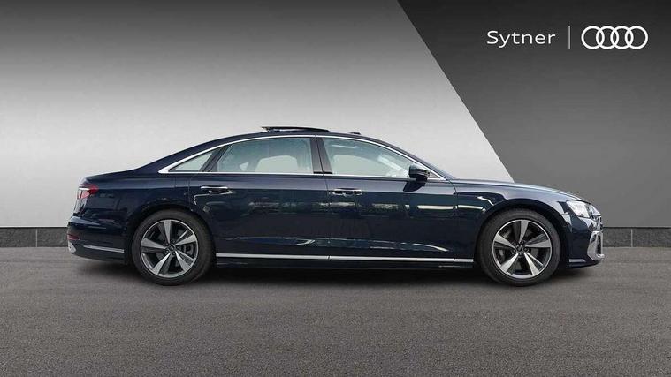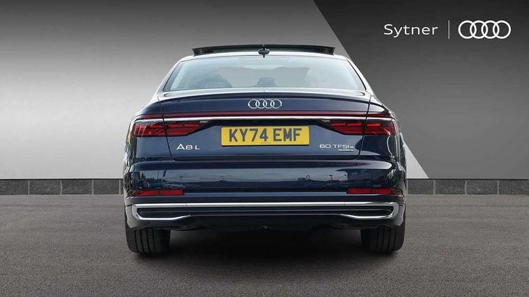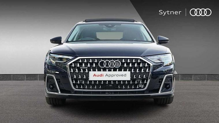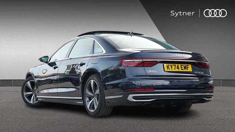 'Lights On' Reminder warning buzzer, Adaptive cruise control with cruise assist, emergency assist, efficiency assist, swerve assist, turn assist and speed limiter, Audi connect safety and service (e-call), Audi drive select, Audi parking system plus with front and rear sensors, Audi smartphone interface with app store includes wireless Apple carplay, Android auto and Amazon alexa integration, Audi virtual cockpit, Bluetooth interface, Camera based traffic sign recognition, Convenience key, Electro - mechanical power assisted steering, Head up Display, MMI navigation plus with MMI touch + Twin touch screens with haptic feedback, Operating buttons in black, glass look with haptic feedback, Power door closure, Power operated tailgate, Rear central control unit, Rear view camera, Remote fuel filler release, Service interval indicator, 3 pin 10 amp domestic charging cable, 65 litre fuel tank, 7.4 kW onboard charger, 8 speed transmission with hill hold assist, Adaptive air suspension, Hybrid drive system PHEV, Industrial connector CEE 32A, 230V, long and straight for the e-tron charging system, Mode 3 charging cable for public charging (AC), Quattro all wheel drive with self locking centre differential, Type 2 socket for AC charging, Audi music interface, Audi sound system, DAB digital radio module, MMI radio plus, USB connection, USB ports with charging function in the rear, All-weather, manoeuvring, position, static cornering, turning and motorway lights with automatic dynamic headlight range control, Audi space frame, Auto dimming rear view mirror, Body colour bumpers, Body colour exterior mirror housings, Electric front windows, Electric rear windows with isolation switch, Electric sunblinds for rear window and rear door windows, Electrically adjustable heated folding + automatically dimming exterior mirrors with memory function and integrated LED indicators, Front wash/wipe with interval delay, HD matrix LED headlights with dynamic light presentation and dynamic indicators, Headlight cleaning system, Heat insulating darkened glass in side and rear windows, Heat insulating glass windscreen, Heated rear window, Heated windscreen washer jets, High beam assist, LED brake lights, LED daytime running lights, LED third brake light, OLED rear lights with changeable rear light signature, Rear boot, Rear side wing doors, Welcome/leaving lighting, 4 zone control automatic air conditioning, Audi phone box light, Auxiliary climate control with remote precondition, Centre console with cupholders, Comfort centre armrest front, Comfort rear headrests, Door pockets with bottle holder, Driver and front passenger side sunvisors with illuminated vanity mirrors, Dust/pollen filters, Electric front seats with memory function, Front floor mats, Glove compartment cooling, Heated front seats, Heated rear seats, Height/reach electric steering column with easy exit function, Isofix child seat mounting points on outer rear seats, Leather gearknob, Passenger footwell storage net, Roof mounted sunglasses holder, Silver cloth headlining, Single front passenger seat, Valcona leather upholstery with contour comfort front seats, Chrome exterior pack - A8, Extended LED Interior multi coloured light pack - A8, High gloss styling pack - A8, 3 point seatbelts on all rear seats, ABS/EBD, Acoustic vehicle alerting system, Active front headrest system, ASR traction control, Audi pre sense basic, Audi pre sense front, Black brake calipers, Driver/Front Passenger airbags, EDL traction control, Electromechanical parking brake, ESP, Extended pedestrian protection measures, Front and rear disc brakes, Front and rear side airbags with head airbag system, Front passenger airbag deactivation, Rear child proof door locks, Seatbelt reminder + electric contact in buckle + advanced safety equipment, Tyre pressure loss indicator, Warning triangle and first aid kit, Anti theft alarm tow away protection, Anti-theft wheel bolts and wheel loosening detection, Remote central locking, Dark matt brushed aluminium lower inlays, Fine grain ash natural grey brown upper inlay, Tyre repair kit,