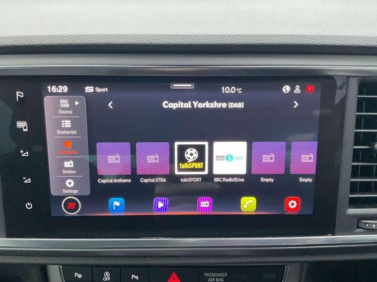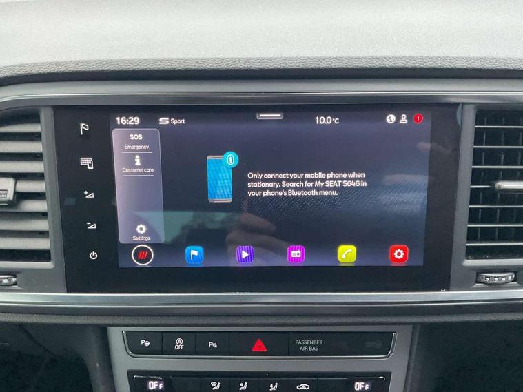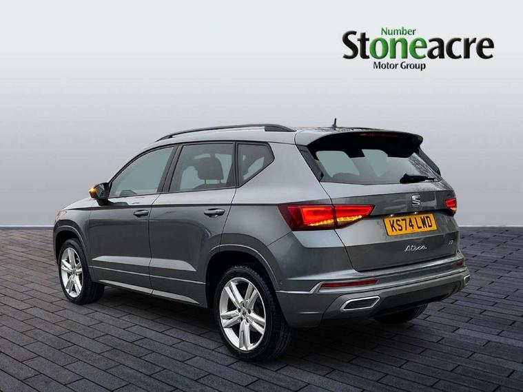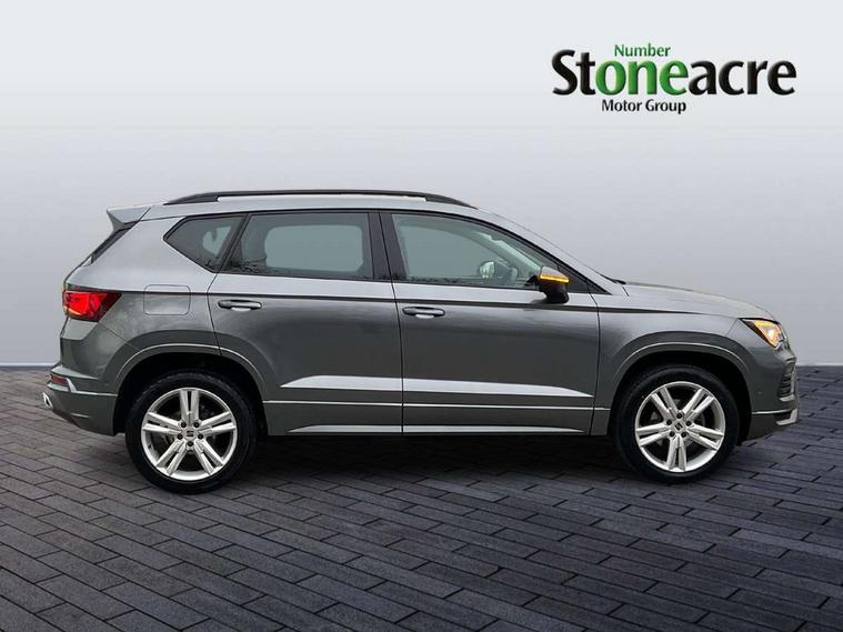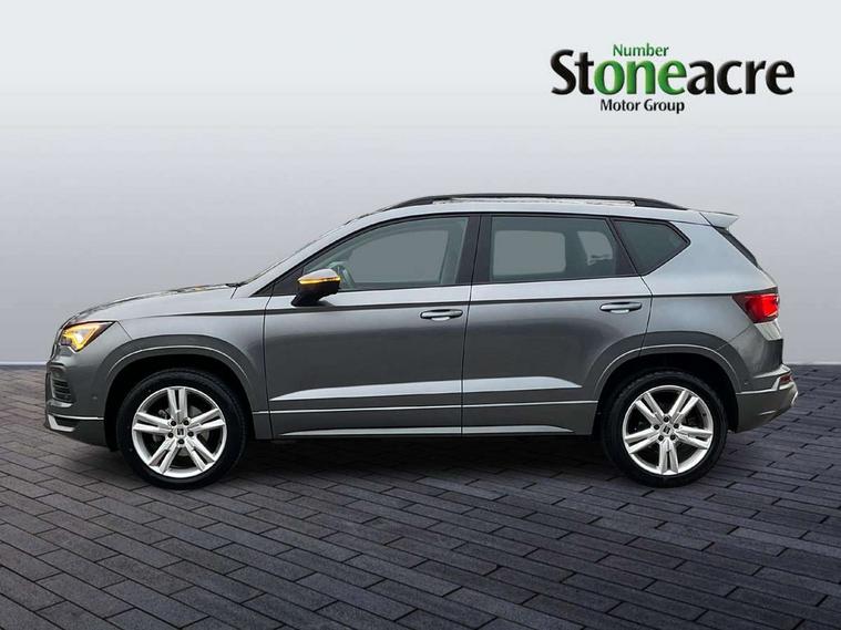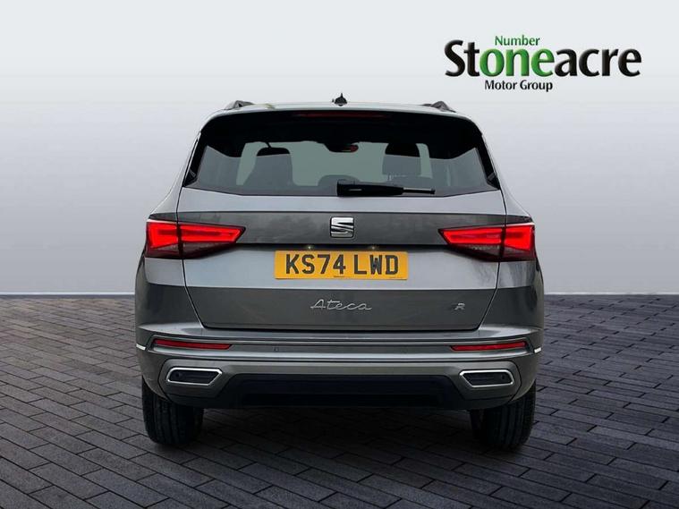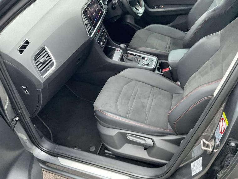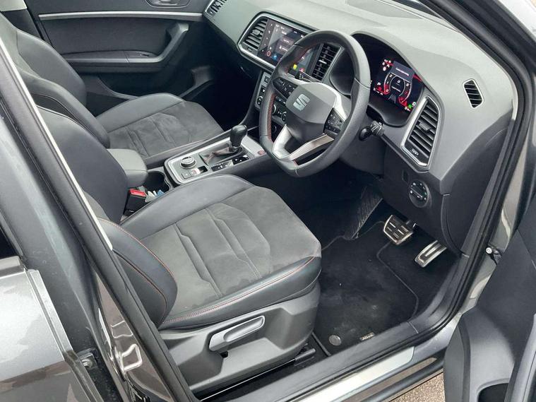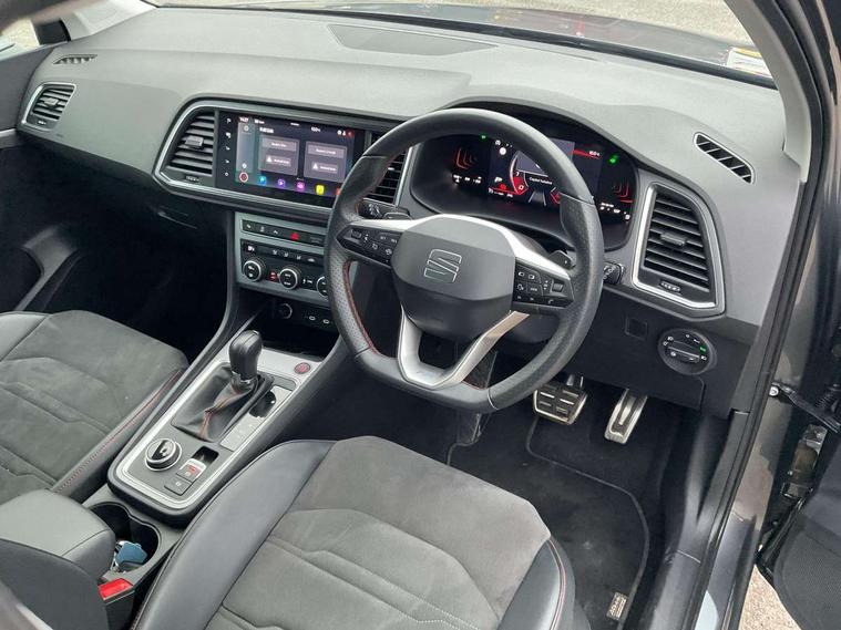 8" Digital cockpit, Colour multi-function on board computer display, Cruise control system with speed limiter, E-call, Outside temperature gauge, Progressive power assisted steering, SEAT drive profile with driving experience button - Normal, Sport, Eco and Individual mode, gearshift, steering and throttle response, Self parking functionality (includes front and rear parking sensors), Start/stop system, Tailgate, Trip computer, wired and wireless full link smartphone integration, Wireless phone charger, Steering wheel mounted audio/phone controls, Black roof rails, Black side window trim, Body colour bumpers, Body coloured wheel arch surrounds, Chrome front grille frame, Dark tinted rear windows, Daytime running lights, Door mirrors with welcome light silhouette, Dynamic headlight range control with self adjusting whilst driving, Electric adjustable/heated/folding door mirrors, Front and rear electric windows, Full LED headlamps with lens and LED front fog lamps with cornering function, Illuminated aluminium front door sill, LED 3rd brake light, LED rear tail lights with dynamic indicators, Rear exhaust tailpipe, Rear fog lights, Rear side wing doors, Rear wash/wipe, Roof spoiler, Variable front intermittent wipers, 12V socket in front, 3 seat bench in 2nd row, 60/40 split folding rear seat, Aluminium pedals, Dinamica upholstery with front comfort seats, Drawer under right front seat, Dual zone climate control, Front and rear head restraints, Front centre armrest, Front seat back storage pockets, Height adjustable driver and passenger seat with lumbar adjustment, ISOFIX points in outer rear seats with top tether anchorage points, Leather sports steering wheel and gear knob, Rear armrest and easy back seat release mechanism from boot, Single front passenger seat, Steering wheel mounted gearshift paddles, Convenience pack - Ateca, Interior lighting pack - Ateca, Navigation system pack with DAB - Ateca, Safety and driving pack with attention and drowsiness assist - Ateca, 3x3 point rear seatbelts, ABS, Traction control system (TCS), Electronic stability control (ESC) and Electronic differential lock system (XDS), Airbags - Driver and front passenger airbag with deactivation, front side, two curtain and driver's knee airbags, Electric parking brake with auto hold function, Front and rear seatbelt reminder, Front assist with autonomous emergency braking, Hill hold control, Manual rear child locks, Single tone horn, Tiredness recognition system, Tyre pressure monitoring system, Alarm, Keyless entry, Locking wheel bolts, Remote central locking, Chrome interior detailing, 18" Brillaint silver alloy wheels,