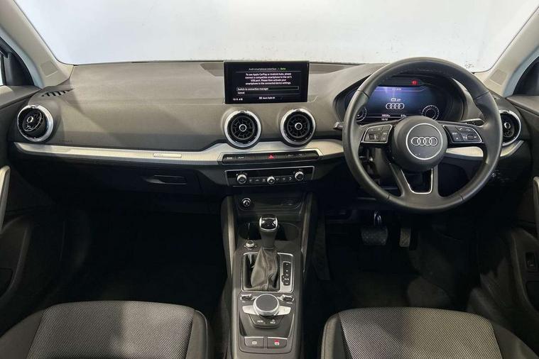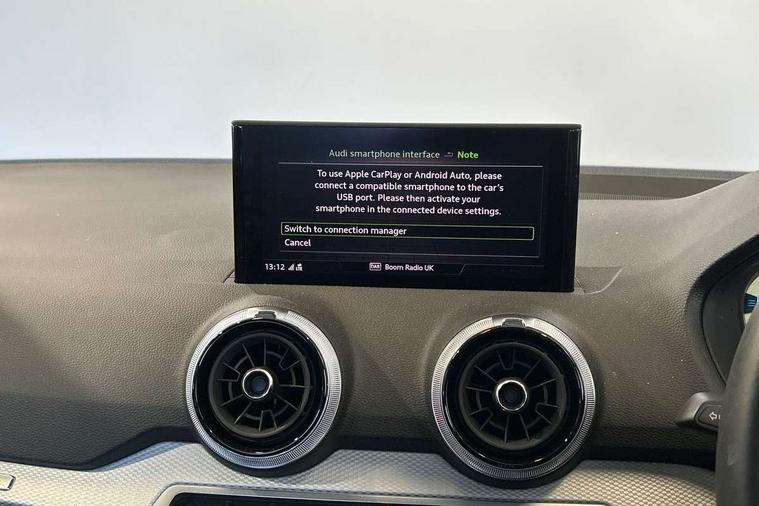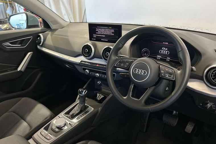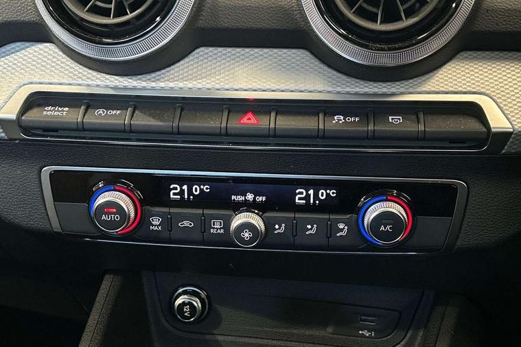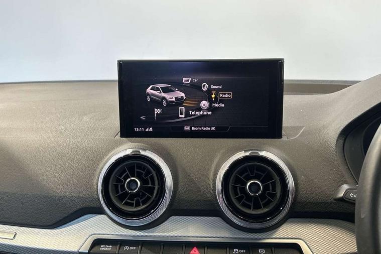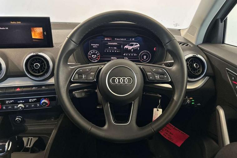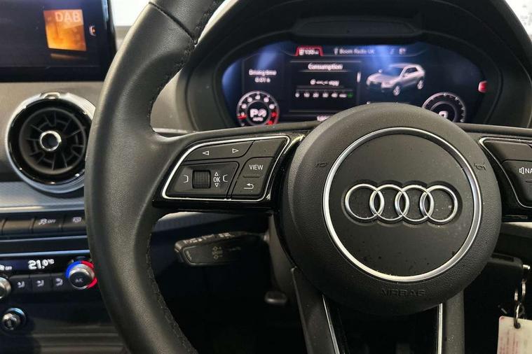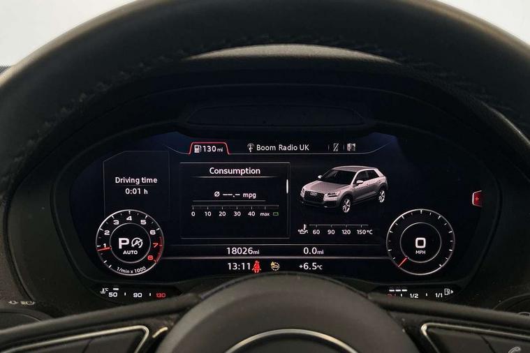 3D map display, Audi connect navigation and infotainment includes innovative services, Audi connect remote and control connects your vehicle to your smartphone, Audi drive select: S tronic - power steering assistance + engine + gearshift (modes: comfort, auto, dynamic, efficiency, individual), Audi smartphone interface - Apple carplay/Android Auto, USB connect, 2xSDXC card readers, voice control for navi, telephone, music and 3rd party apps, Audi virtual cockpit, Automatic start/stop system with recuperation, Bluetooth interface includes bluetooth audio streaming, Camera based traffic sign recognition, Cruise control, Distraction and Fatigue warning, E-call, Jukebox hard drive memory for music (10GB), Lane departure warning, MMI navigation plus with 8.8" touchscreen, Natural voice recognition, Power operated tailgate, Progressive steering, DAB Digital radio, USB type C port, Auto dimming rear view mirror, Black window trims, Body colour door mirrors, Contrast bumpers in Manhattan grey, Electrically adjustable, folding, auto dimming and heated door mirrors with integrated LED side indicators, Front windscreen with grey tinted sunband, LED daytime running lights, LED headlights with dipped beam, high beam, position lights, indicators, LED third brake light, Rear side wing doors, Rear wiper, Side skirts in manhattan grey, Variable front intermittent wipers, Wheel arch trims in manhattan grey, 12V socket in front, 3 seat bench in 2nd row, 3 spoke leather trimmed multi-function steering wheel with height and reach adjustable, 4-way electric lumbar support for front seats including manual seat height adjustment for both front seats, 60/40 split folding rear seat bench, Black carpets, Front and rear head restraints, Front centre armrest, Front sport seats, Front/rear floor mats, Grey cloth headlining, Height/reach adjust steering wheel, Index cloth upholstery, ISOFIX child seat mounting in front passenger and rear outer seats, Manual air conditioning, Single front passenger seat, Technology pack - Q2, 3x3 point rear seatbelts, 6 airbags - Front, curtain and front side airbags, Electromechanical parking brake, Electronic stabilisation control including ABS, ASR and EDL, Front passenger airbag deactivation, Hill hold assist, Pre-sense front with pedestrian recognition, Seatbelt monitoring, Tyre pressure warning light with visual and acoustic warning, Warning triangle and first aid kit, Anti theft wheel bolts, Electronically operated child locks, Remote central door locking, Thatcham category 1 alarm, Aluminium interior element, Black dashboard, Gloss black centre console, Inlays in silver grey diamond paint, Tool kit,