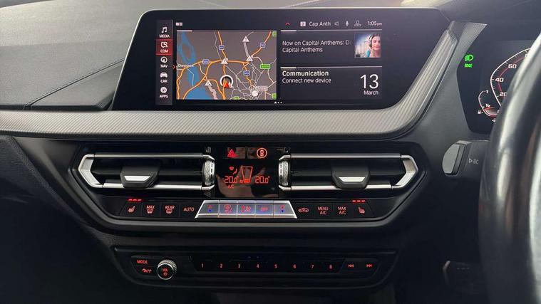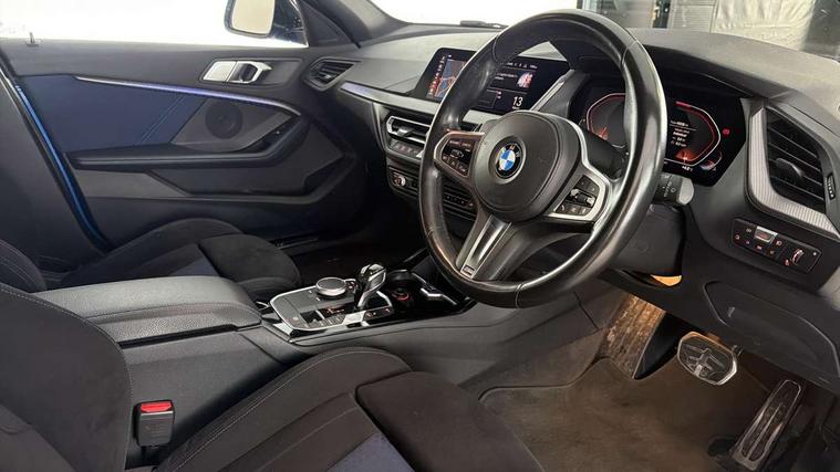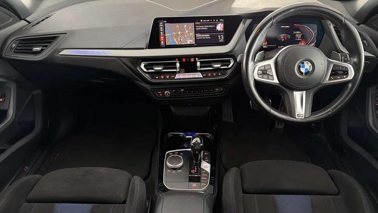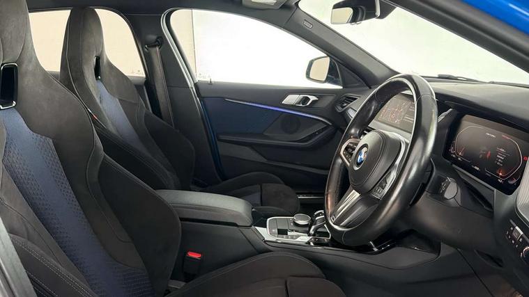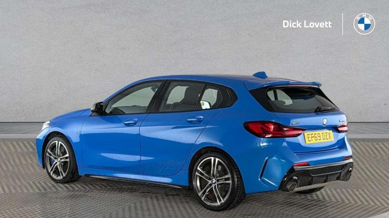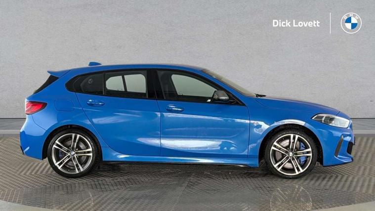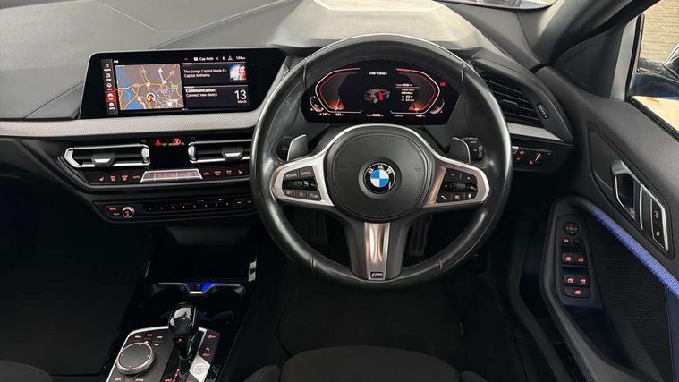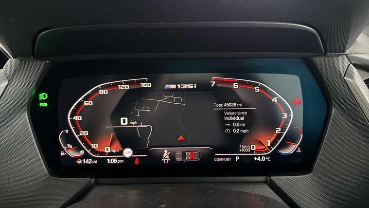 Active guard plus, Attentiveness assist, BMW Live Cockpit Professional sat nav system including 10.25" high resolution display and Intelligent Voice Assistant, BMW Online services, BMW Teleservices, Check Control warning system for monitoring of lights and door/luggage compartment open warning, Eco pro mode, Integrated owners handbook, M Sports steering, On board computer, Optimum shift indicator, Personal Profile, Pull away assistant, Speed limiter, Anti roll bar front and rear, Balancer shaft, Double VANOS, Drive Performance Control, Electronic differential lock, Engine cover with M performance designation, High precision injection, Larger fuel tank capacity (50 litres), Launch control, Petrol Particulate Filter, VALVETRONIC engine management, Bluetooth audio streaming, DAB Digital radio, Auto dimming rear view mirror, Body colour door handles, Cerium grey exterior mirror caps, Direction indicator side lights in exterior mirrors, Electric folding and anti dazzle exterior mirrors, Fading support, Follow me home headlights, Front and rear electric windows with open and close fingertip control, anti trap facility and comfort closing, Front door sill finishers with M135i designation, Green tinted heat protection glazing, Headlight beam throw control, High gloss shadow line exterior trim, High level third brake light, Kidney grille frame in Cerium Grey with Mesh design, LED daytime running lights, Lightweight engineering, M logo designation side in cerium grey, M performance exhaust system, M rear spoiler, Matt black air guide grilles, Matt black roof moulding, B pillar finisher and wheel arch trim, Matt black window frame, Model designation on right side of tailgate, Nearside reverse light in rear light cluster, Rain sensor including auto headlights activation, Rear fog lights, Rear window wiper, Round exhaust system with twin cerium grey tailpipes in left and right split, Shark fin antenna, Visible VIN plate, Welcome lighting, Windscreen wipers with integrated washing jets, 12V power socket in centre console, 2 cupholders in front centre console, 3 rear seat head restraints, 3 spoke M sports design leather steering wheel finished in nappa leather with specific M badge, Anthracite headlining, Anthracite Velour floor mats, Child seat ISOFIX attachment for two outer rear seats and front passenger seat with anchorage points, Conditioned based service, Driver and front passenger seat heating, Driver side folding compartment in instrument panel, Folding rear clothes hook, Folding rear seats, Four grab handles integrated in roof lining, Front and rear door pockets, Front and rear side armrest integrated into door trim, Front Armrest foldable with integrated storage compartment, Front M seats, Glove compartment, Height adjustable front head restraints, Manual adjust steering wheel, Multi-function controls for steering wheel, Rear seat backrest with manual 60:40 split folding with 3 top tether clips integrated on rear of seat panels, Storage compartment in centre console, Sun visors with vanity mirrors and insert tab, Two zone automatic air conditioning, Connected pack professional - 1 Series, Extended Lighting pack - 1 Series M135i, Extended storage pack - 1 Series, Interior lights pack - 1 Series, Luggage compartment pack - 1 Series, M Sport exterior styling aerodynamics pack - 1 Series 135i, 2 tone horn, 3 point seatbelts on all seats, front pyrotechnic belt tensioners, stopper and belt force limiters, rear coded belt buckles, Airbags - Front driver and passenger, front and rear head, front side, curtain head protection, Anti lock braking system (ABS) with brake assist, BMW emergency call, Brake drying, Braking readiness, Crash sensor activating central locking release, hazard warning lights, fuel cut off, interior lighting + activation of safety battery terminal clamp, Driver and front passenger seat belt security check, Dynamic stability control + (DSC+), Dynamic Traction Control - DTC, Electrically operated hand brake, Front passenger manual airbag deactivation, M Sport braking system, M sport seatbelt, Rear child proof door locks, Seatbelt warning, Side impact protection, Tyre pressure monitoring system, Warning triangle and first aid kit, Automatic drive away locking facility, Central locking switch for all doors, fuel filler cap and luggage compartment, Deadlocking function system to all doors, Locking wheel bolts, Remote control with integrated key with High-gloss Black inlay and M designation and 1 button for open/ close lock, window, open luggage compartment, Start/stop button with comfort go keyless engine start and auto start stop deactivation button, Thatcham Cat.1 alarm and immobiliser, Contrast stitching on instrument panel, 18" Burnished M double spoke Bi-colour alloy wheels finished in Cerium grey matt - style 556M, BMW mobility system, Reduced rolling resistance tyres,