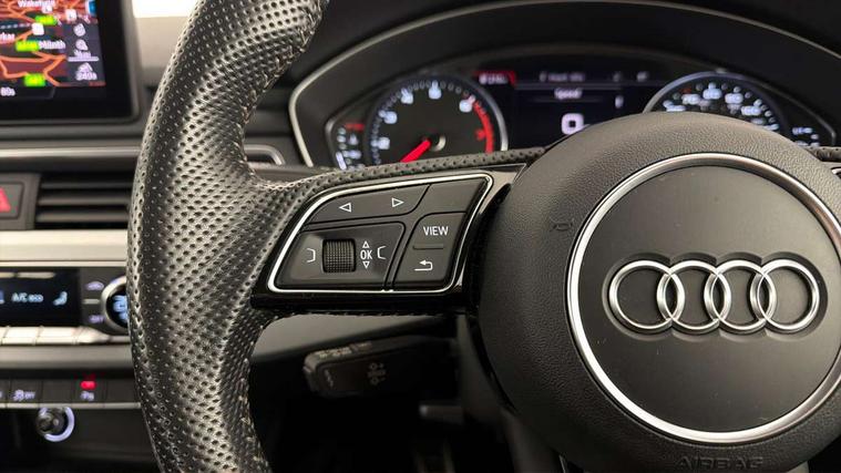 7" Colour driver information system, Audi connect, Audi drive select, Audi parking system plus with front and rear sensors, Audi smartphone interface, Automatic start-stop system with coasting functionality and efficiency programme, Bluetooth interface, Electro-mechanical power steering, MMI Navigation, Power tailgate, Service interval indicator, Voice control system, 2 x USB charging port with aux input socket, CD player, DAB Digital radio, Two SDXC card slots, Air inlet in matt aluminium with horizontal inlay, Aluminium roof frame and window trim, Auto dimming rear view mirror, Black grained rear grille, Body colour bumpers, Body coloured door mirrors, Chrome plated exhaust pipe, Electric adjustable heated door mirrors, Electric front windows, Front fog lights, High beam assistant, High gloss black B pillar trims and triangular rear door trim, Honeycomb side air inlet in titan black, Rain and light sensors, Rear diffuser in Twilight grey matt with honeycomb grille, S line badges on front wings, S Line body styling, S Line front and rear bumpers, S Line side skirts in black, S line sill plates, Twilight grey matt radiator grille in matt aluminium inlay, Windscreen with acoustic glazing, 40/20/40 split folding 3 seater rear bench seat, Adjustable steering column, Black headlining, Black perforated leather gearknob, Centre console with cupholders, Contrast stitching on seats, steering wheel and gear lever gaiter, Deluxe 3 zone electronic climate control, Front centre armrest, Front head restraints, Front/rear floor mats, Gearshift paddles, Illuminated door sill trim with S logo, ISOFIX child seat mounting and top tether, Jack and tool kit, Luggage compartment mat, Rear headrests, S embossed logo on front sport seats, Stainless steel pedals and foot rest, Non Smokers pack, 3x3 point rear seatbelts, 6 airbags - Driver, front passenger, curtain and side airbags, Electromechanical parking brake, Electronic Stabilisation Control (ESC) including ABS, ASR and EDL, Front passenger airbag deactivation, Height adjustable front seatbelts, Hill hold function, Multi-Collision braking, Pop-up bonnet for pedestrian protection, Pre sense city, Seatbelt monitoring, Tyre pressure warning, Variable restraint system, Warning triangle and first aid kit, Anti theft alarm system, Anti theft wheel bolts, Immobiliser, Keyless Go, Remote central locking, Tyre repair kit,