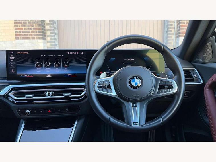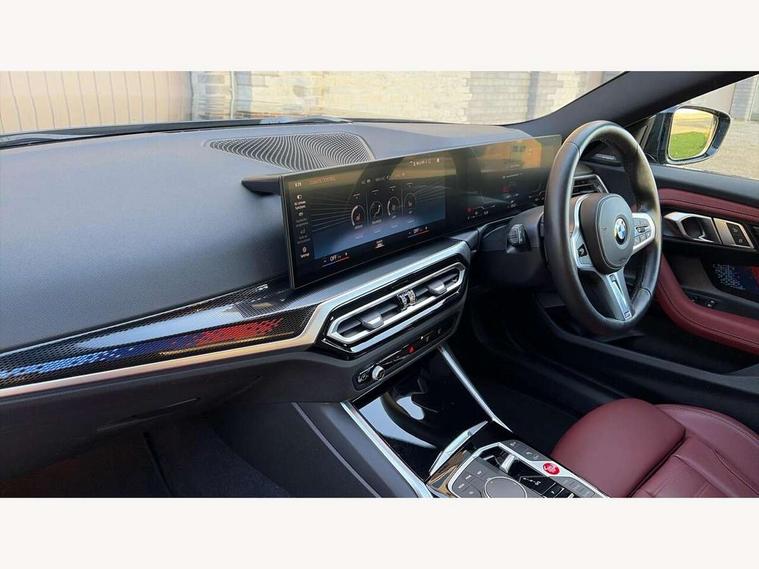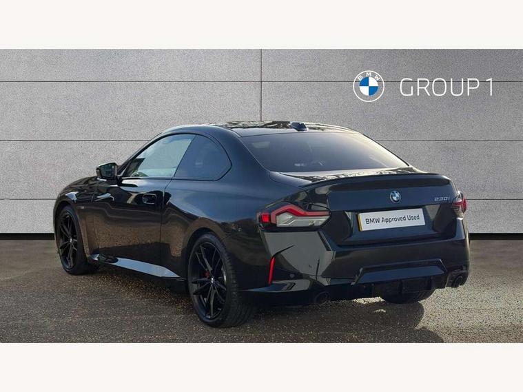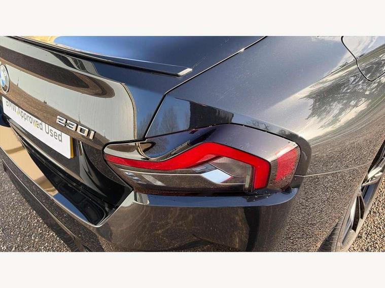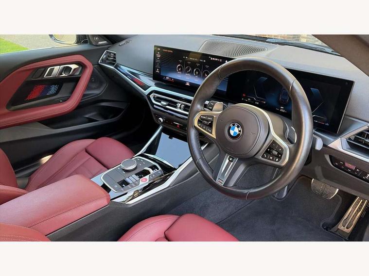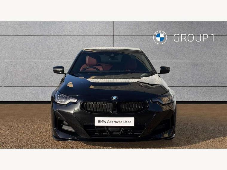 2 USB connections for charging and transferring data, 4G LTE connectivity with hard wired 4G network sim card, Attentiveness assist, Bluetooth with USB, BMW ConnectedDrive online services, BMW Intelligent Personal Assistant, BMW operating system 8 with variable, configurable widgets display information in real time, BMW Teleservices, Check Control warning system for monitoring of lights and door/luggage compartment open warning, Direct selection buttons, Drive off assistant, Eco pro mode, Electric power steering, Front and rear parking sensors, Front/rear Parking distance control, iDrive controller with turn and press function, Integrated owners handbook, Intelligent functions, Live cockpit plus with nav function 12.3" instrument cluster and 14.9" centre display, Oil sensor for level and grade, Optimum shift indicator, Personal Profile, Touch operation on control display, Variable sport steering, Widescreen multi-media display, WiFi interface for wireless connection of mobile terminal devices, Aluminium lightweight construction, Balancer shaft, BMW TwinPower Turbo four-cylinder petrol engine, Double VANOS, Drive performance control with ECO PRO comfort + sport mode, Electronic differential lock, High precision injection, M sport suspension, Petrol Particulate Filter, Sport automatic steptronic transmission with gearshift paddles, manual gearshift time display, launch control, coasting idle ECO PRO/COMFORT modes, Twin scroll turbocharger with Valvetronic, DAB tuner, Acoustic windscreen wipers for reduced driving noise, Adaptive LED Headlights, Automatic windscreen wipers and automatic headlight, Automatically dimming rear view mirror, Body colour door handles flush with door surface, Body colour door mirrors, Body colour front and rear bumpers, Daytime running lights, Electric windows - front and rear, with open/close fingertip control and trap release, Exhaust tailpipes x2 - 90mm in left and right, Fading support, Front and rear bumper system with replaceable deformation elements, Front door sill finishers in black plastic with BMW designation, Front windscreen wipers with integrated washer jets, Green tinted heat protection glazing, High beam assistant, High gloss black sill, bumper trim sides and diffuser insert, High gloss shadowline exterior trim in mirror triangle cover, mirror cover panel, mirror bezel and window border, High level third brake light, Indicators integrated int mirror housing, LED registration plate light, LED technology rear tail lights, brake lights and turn indicators, Lightweight engineering, Model designation on right side of tailgate, One piece kidney grille with hight gloss chrome surround, Rear boot, Rear fog lights, Reversing light in rear light cluster, Shark fin antenna, Single part LED rear lights with smoked glass components, Trailer stabilisation logic, Visible VIN plate, 12V power socket in front centre console with blanking plug, 2 cupholders in front centre console, 2 zone automatic air conditioning, Ambient lighting, Compartment in front of cupholder, Conditioned based service, Driver seat backrest width adjustment, Front and rear side armrests integrated into door trim, Front armrest, Front door pockets, Front head restraints, Front sport seats, Heated front seats, Illuminated glove compartment with separate small compartment, M headliner Anthracite, M sport leather steering wheel, Manually adjustment steering wheel column, Rear seat backrest with manual 40:20:40 split folding, Rear seat centre foldable armrest with integrated cup holder, Single front passenger seat, Storage compartment between rear seats, Storage tray and compartment with cover in centre console, Sun visors with vanity mirrors and insert tab, Through loading system with 40/20/40 split folding 2 rear seat in 2nd row, Two folding rear seat headrests, Velour floor mats, Additional storage compartment pack without USB - 2 Series Coupe, Connected pack professional - 2 Series Coupe, Interior and exterior mirror pack - 2 Series Coupe, M Sport exterior styling aerodynamics pack - 2 Series Coupe, 2 tone horn, Anti lock braking system (ABS) with cornering brake control, Automatic Stability Control (ASC), BMW emergency call, Brake drying, Child seat ISOFIX attachment for the two outer rear seats, Crash sensor activating of airbags, Unlocking doors, hazard warning lights, interior light, safety battery terminal, Deactivation of fuel pump in the event of a crash, Driver and front passenger airbags, Driver and front passenger side airbags, integrated in the door side seat backrest bolsters for all seat variants, Dynamic brake control, Dynamic stability control + (DSC+), Dynamic Traction Control - DTC, Electrically operated hand brake including automatic hold function and automatic release when driving off, Front and rear disc brakes, Head airbags for all 4 outer seats, Manual deactivation of front passenger airbag, Seat belt security check for driver and front passenger, Seatbelt warning, Side impact protection, Three point seat belts on 4 seats including front belt stopper, pyrotechnic belt tensioners and belt force limiters, Tyre pressure sensor, Warning triangle and first aid kit, Alarm system (Thatcham 1) with remote control and electronic engine immobiliser, Central locking switch for all doors, fuel filler cap and luggage compartment, Deadlocking function system to all doors, Drive away locking system on all doors and luggage compartment, Locking wheel bolts, Start/Stop button (illuminated) in centre console with keyless engine start and Auto Start-Stop deactivation button, Two remote control key with integrated key - one button for open and close doors/fuel flap/tailgate and separate button for unlock luggage compartment, BMW mobility tyre sealing system, Electrically powered 12V compressor, Reduced rolling resistance tyres,