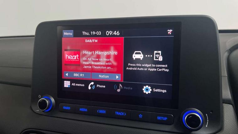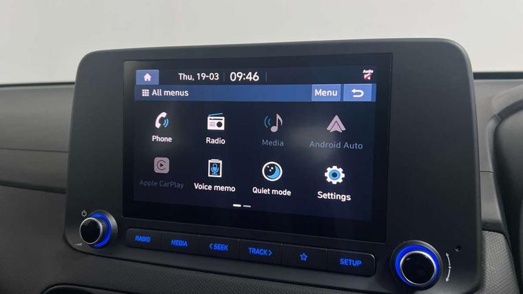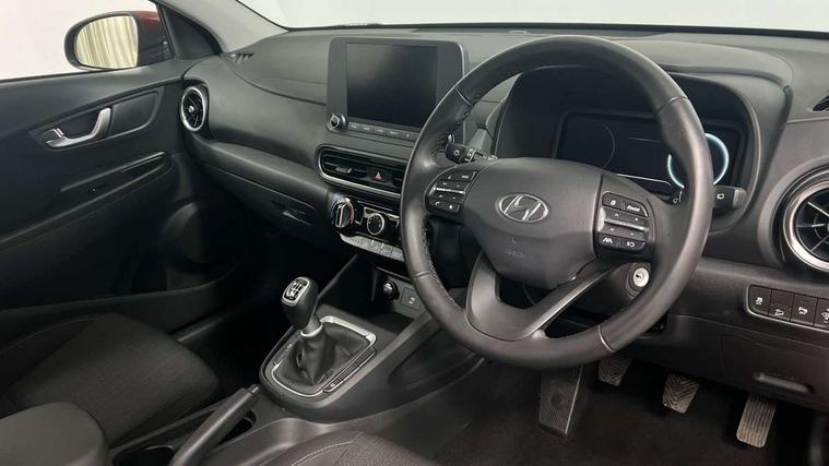 8" Touchscreen display audio + smart device integration, Bluetooth connectivity, Cruise control + speed limiter, Digital clock, Driver attention warning, Driver supervision instrument cluster with 10.25" LCD display, eCall emergency call system, Forward collision avoidance assist with pedestrian detection, Lane follow assist, Lane keep assist, Leading vehicle departure alert (LVDA), Parking system with rear camera and guidance system, PAS, Phone connection with apple carPlay and android auto, Rear parking sensor, Roadside assistance, Tailgate, Windscreen washer fluid sensor and warning indicator, 6 speed intelligent manual transmission, 6 speakers (2 front, 2 tweeters, 2 rear), Front USB ports, RDS and Digital DAB, Steering wheel mounted audio/phone controls, Automatic headlights with dusk sensor, Body colour door mirrors and handles, Door mirror integrated indicators, Electric front/rear windows with drivers one touch/anti-trap, Electrically adjustable and heated door mirrors, Halogen headlights, Halogen rear lights, LED daytime running lights, Positioning Lights - LED, Rain sensor, Rear roof spoiler with integrated LED brake light, Rear side wing doors, Rear wiper, Roof rails, Tinted glass with front door glass and windscreen with shade band, Variable front intermittent wipers, 12V power outlet in front console, 3 seat bench in 2nd row, 60/40 split folding rear seat, Adjustable head restraints, Air conditioning, Centre interior light, Cloth upholstery, Door scuff plate, Driver's seat height adjustment, Driver/passenger sunvisors and illuminated vanity mirrors, Front interior light, Front passenger seat manual adjustments, Height/reach adjustable steering column, Isofix rear child seat fastenings, Leather wrapped steering wheel and gear knob, Luggage compartment lighting, Luggage hooks, Metal paint effect interior door handles, Parcel shelf, Rear centre console with air vents, Single front passenger seat, Sunglasses holder, Vertical adjustment rear head restraints, Trailer wiring package - Kona, Airbags - front, front side and curtain airbags, Anti-lock brake system (ABS), Childproof rear door locks, Downhill brake control, EBD + Brake Assist, Electronic stability control, Fasten seatbelt reminder, Fixed 3 point for second row centre passenger seatbelt, Front seatbelt pretensioners, Height adjustable front seatbelts, Hill start assist control (HAC), Manual parking brake, Passenger airbag deactivate switch, Rear seat alert, Traction control, Tyre pressure monitoring system, Alarm/immobiliser, Deadlocks, Folding key, Locking wheel nuts, Remote central locking, 17" Alloy wheels,