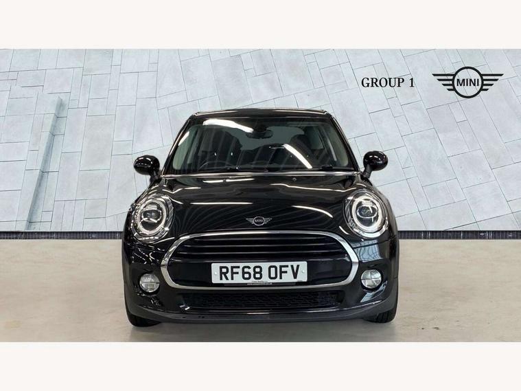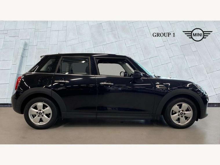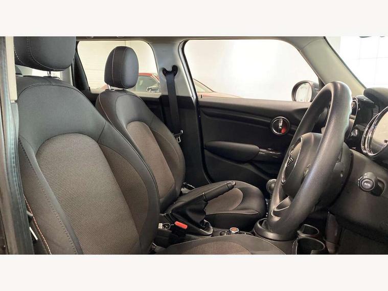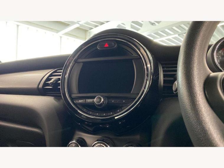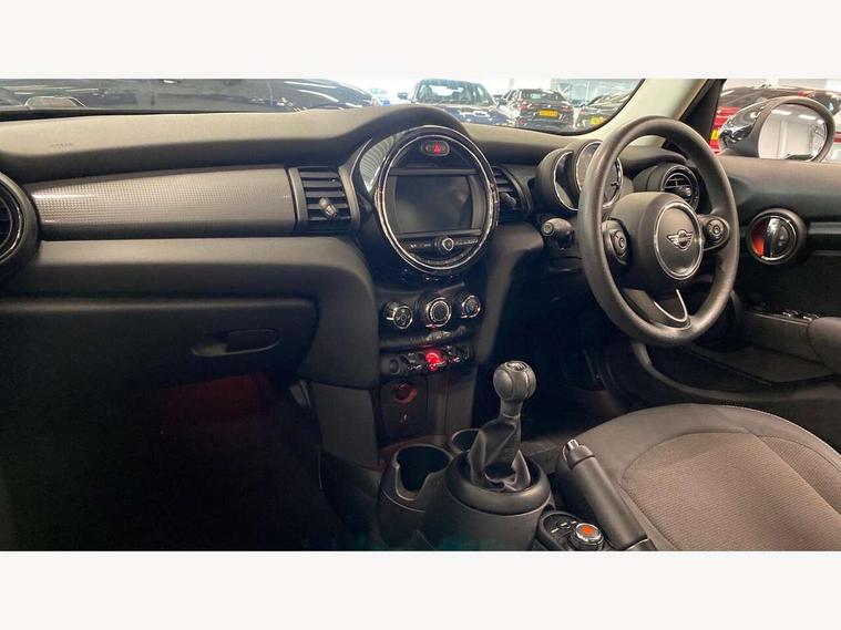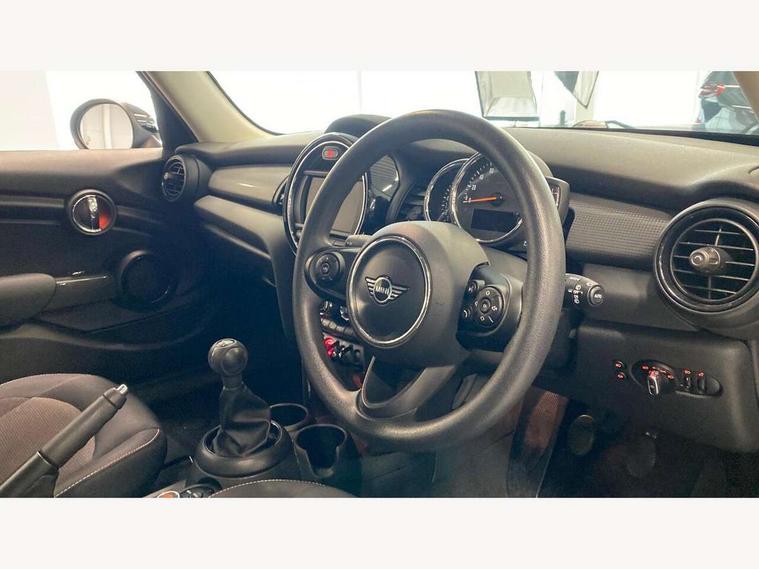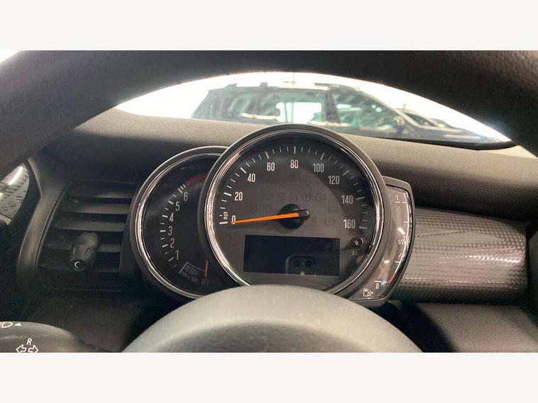 Compatible mobile phone bluetooth with audio streaming, Instrument cluster, Mini E-call, MINI TeleServices, On board computer, Service interval indicator, 6.5" touchscreen with LED ring, FM tuner and DAB digital radio, Automatic headlight activation switch, Body colour fuel filler cap, Chrome border high gloss black slats radiator grille, Dynamic brake lights, Electric front+rear windows, Heated rear window, Heated windscreen washer jets, LED headlight with closed ring and daytime driving lights, Left exhaust tailpipe with chrome finisher, Metal door sill strips with MINI imprint, Model logo Cooper on right of tailgate, Rain sensor window wipers, Rear fog lights, Rear LED lights with union jack design, Rear window wiper, Side scuttle panel with integrated indicator, Sun/heat protection glass, White indicator lenses, 12V Accessory socket in centre console, 4 lashing eyes in luggage compartment, 60/40 split folding rear seat, Chrome interior highlights, Colour line - Carbon black, Cupholders, Front and rear isofix with front passenger airbag deactivation, Glove compartment, Height and length steering column adjustment, Interior lighting with 12 basic colours selectable via toggle switch in roof, Leather gearshift lever and handbrake gaiters, Manual air conditioning, Mechanical seat adjustment, driver seat height adjust, forward/back and front seats backrest, Mini logo projection on floor from drivers exterior mirror, Multifunction steering wheel, Satellite grey headlining, Storage compartments in doors, Sunvisors with vanity mirrors, 3 point seatbelts on all five seats, 6 Airbags - front, side, head and seat belt tensioners, Anti-lock braking system (ABS), DSC - Dynamic Stability Control, Front and rear disc brakes, Hill start assist, Single tone fanfare horn, Tyre pressure monitoring system, Alarm system with tilt sensor, monitoring doors, bonnet interior and tailgate, Electronic vehicle immobiliser, Start/stop toggle with keyless go, Tool kit,