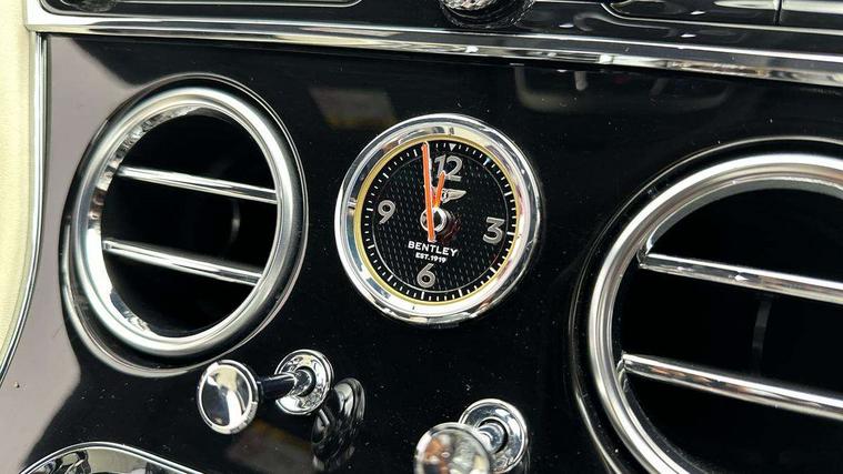 4G LTE telephone module, Adaptive cruise control, Apple car play, Bentley safeguard plus, Blind spot warning, Bluetooth and Wi-Fi audio streaming, Brake pad wear indicator warning light, City assist, Collision prevention assist, E-call, Engine start/stop button, Front/rear park distance control, Hands free boot opening, Head up Display, Inductive phone charger, Infotainment system with 12.3 high resolution touch screen retina disp + proximity sensors + advance music interface, single DVD/CD, 2 SD card slots, Lane assist, Navigation system, Night vision, Online real time traffic information, Park assist system, PAS, POI (search), Power latching to all doors for easy entry, Reversing camera, Reversing traffic warning, Top view camera, Traffic jam assist, Traffic sign recognition, Trip computer, 3 Chamber air suspension with continuous damping control, Battery charger, Dynamic ride height control + ground clearance function, 60GB hard drive, Acoustic and heat insulating front windscreen, Acoustic glass, Adaptive brake lights, Auto dimming door mirrors, Auto dimming rear view mirror, Automatic headlights, Bentley lettering on the boot, Black and Chrome bonnet and boot Bentley wing badges, Body colour door mirrors, Bright boot finisher, Daytime running lights, Deployable rear spoiler, Electrically adjustable door mirrors with heating, power fold, memory and dip on reverse functions, Exterior treadplate with Bentley lettering, Full LED Matrix headlamps with high-beam assist, Full LED tail lamps, Heated rear windscreen, Hidden antennae, LED third brake light, Lower front bumper grilles in black, Quad oval exhaust finishers, Rain sensing windscreen wipers, Rear boot, Treadplates inner with "Handbuilt in Crewe, England" inserts, 12 way heated electric memory front seats, 12v power sockets 2 in cabin and 1 in boot, 2 cupholders in front centre console, 2 individual seats in 2nd row, Air Ioniser, Bentley analogue clock with plain bezel, Bentley hide upholstery, Black seat belt buckles, Boot carpet in Beluga, Boot lid down lighters, Deep Pile Carpets to match upholstery, Dinamica headlining, Electric tilt and reach adjustment steering column with memory and easy entry functions, Footwell illumination and ambient lighting, Four occupant seating positions, Lockable cooled glovebox, Metal bulls eye vents with organ stop, Multi-zone automatic climate control, One monotone colourway, Rear headrests, Seats with straight fluted style hide cover, Single front armrest with fore/aft adjust and stowage, Single front passenger seat, Ski hatch, Standard foot pedals, Steering wheel gearshift paddles, Stowage to front doors, centre console and under centre armrest, Sunvisors with illuminated vanity mirrors, Two rear seats with centre stowage and cup holders including 12v socket and 2 USB charging points, Driver and passenger airbags, Electronic parking brake with drive away assist, Electronic stability programme with traction control, Anti lock braking System , Electronic brake force distribution, HBA + drag torque control, Electronic tyre pressure monitoring, Exit warning, Front vented 420x40mm disc brakes with Bentley branded red brake callipers, Multicollision braking system, Pedestrian warning, Pre crash system, Pre sense braking system, Rear vented 380x30mm disc brakes with Bentley branded red brake callipers, Side airbags, Torque vectoring brake, Alarm, Bentley GPS advanced tracking system, Immobiliser, Keyless entry and start, Tyre inflation kit,