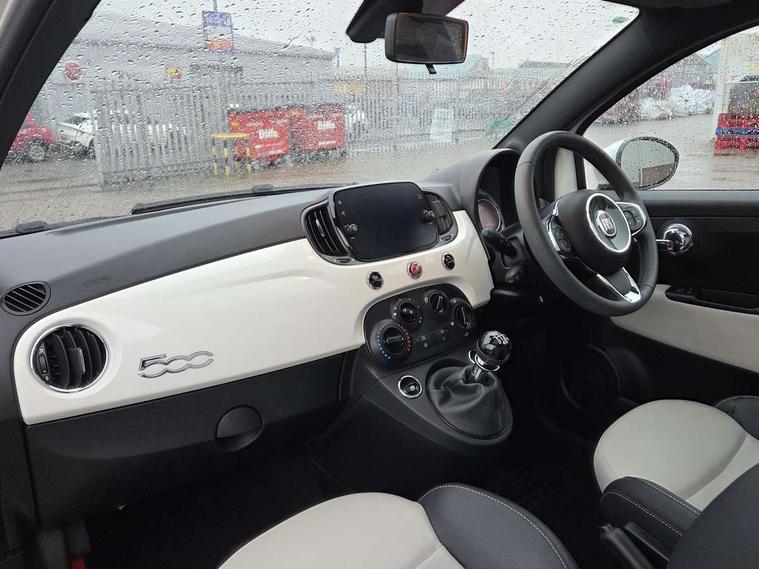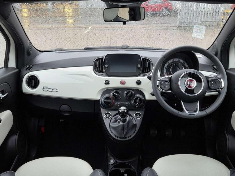 Apple car play/Android Auto, Cruise control, E-call, External temperature gauge, Power assist steering, Rear parking sensor, Speed limiter, Stop/start system, Trip computer, 4 speakers, 7" HD Touchscreen Radio, Bluetooth, USB and DAB, Rear speakers, 3rd brake light, Auto headlights, Body colour bumpers, Body coloured electrically adjustable door mirrors, Chrome plated exterior door handles, Dolcevita badge on fender, Dusk and rain sensors, Electric front windows, Fixed glass sunroof with sunblind, Front fog lights, Halogen headlamps, Heat insulated glass, Heated rear windows with wash wipe, LED daytime running lights, Rear side wing doors, Rear wiper, 1 passenger grab handle, 2 seat bench in second row, 50/50 split folding rear seats with height adjustable rear headrests, Air conditioning, Auxilliary 12V power socket, Chrome kit, Front headrests, Height adjustable drivers seat, Height adjustable steering wheel, Isofix child seat preparation, Single front passenger seat, Techno leather steering wheel with audio controls, 7 airbags - Driver, passenger, side, window and drivers knee airbags, ABS/EBD, ESC + ASR/MSR + HBA + Hill holder, Manual passenger airbag deactivation function, Traction control, Tyre pressure monitoring system, Automatic door locking, Immobiliser, Locking fuel filler cap, Remote central locking, 15" Alloy wheels,